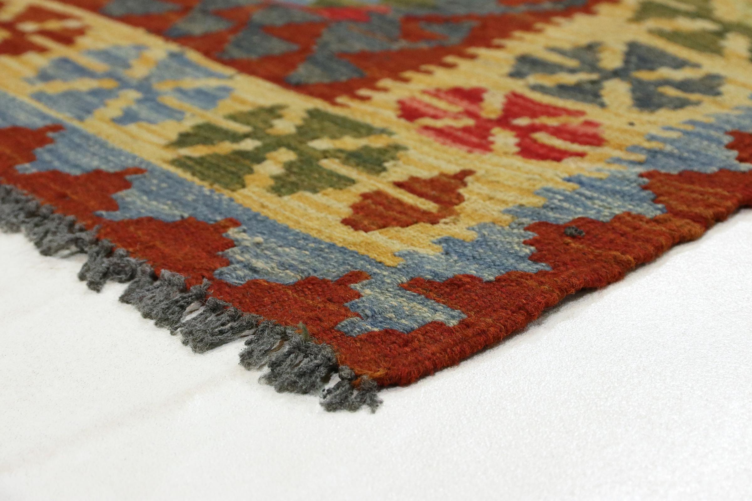 Ce tapis Afghan Kilim tissé main est une merveille, grâce à ses couleurs et à ses motifs caractéristiques. Il a été fabriqué en Afghanistan avec de la laine, et a bien sûr été fait à la main. Il est robuste et durable. Il est un véritable bénéfice pour votre maison.