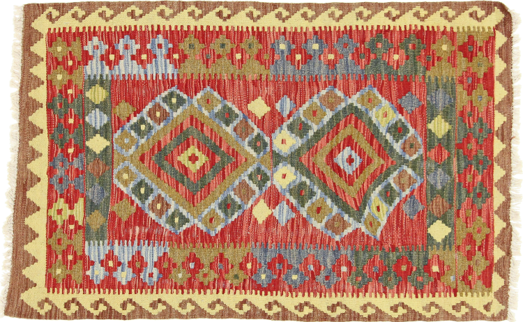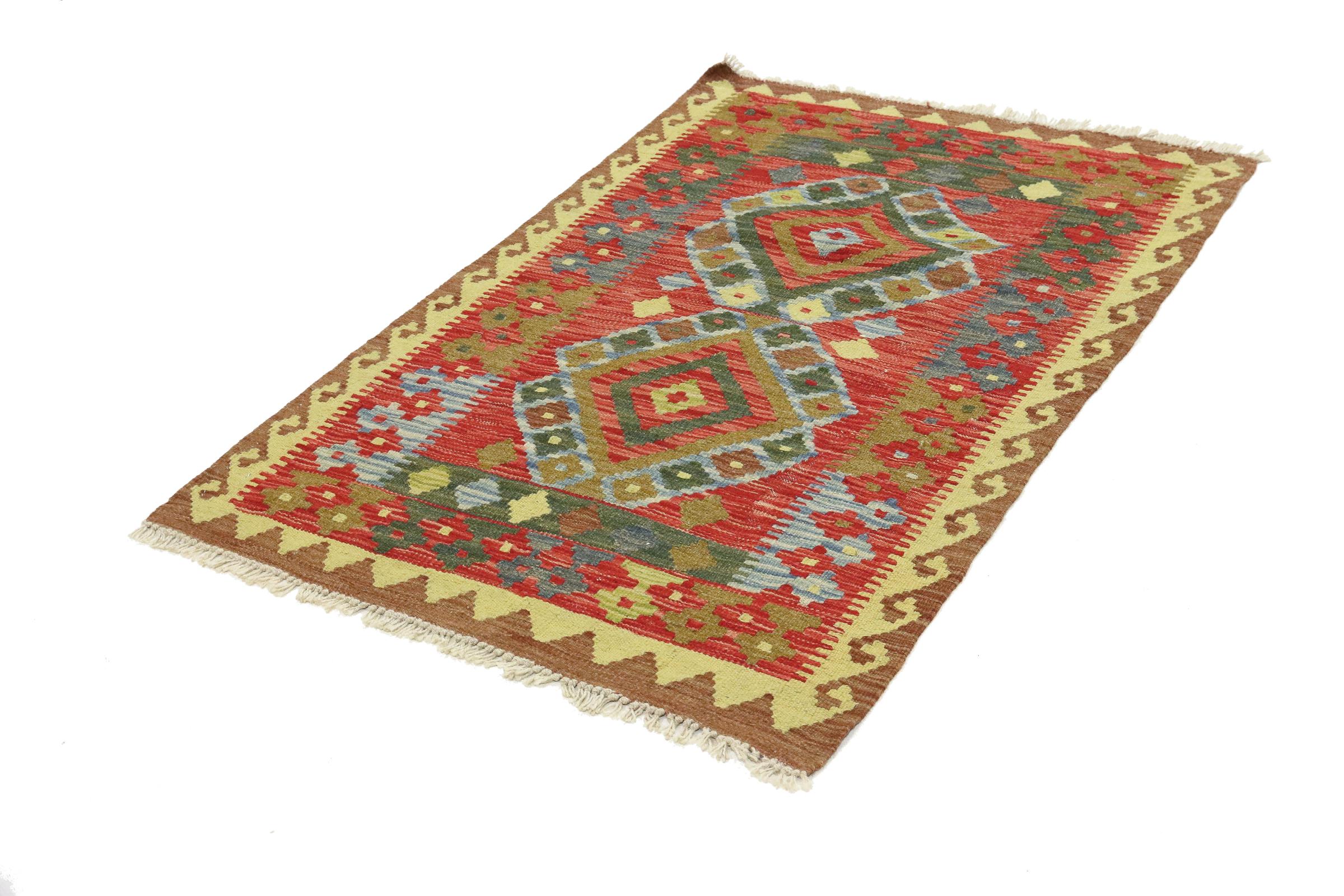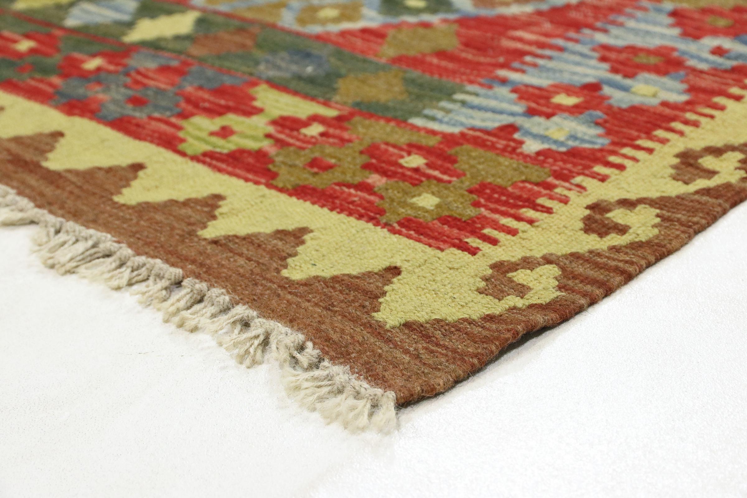 Ce tapis Afghan Kilim tissé main est une merveille, grâce à ses couleurs et à ses motifs caractéristiques. Il a été fabriqué en Afghanistan avec de la laine, et a bien sûr été fait à la main. Il est robuste et durable. Il est un véritable bénéfice pour votre maison.