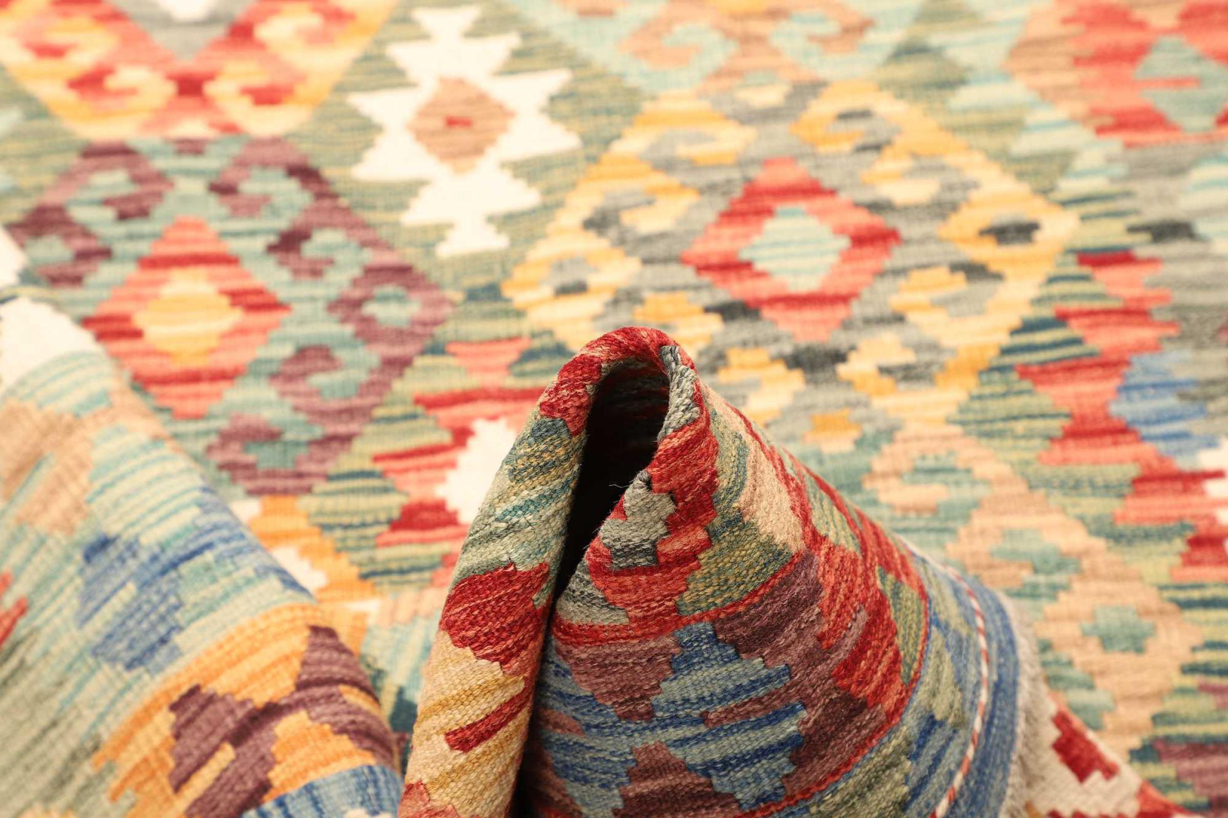 Ce tapis Afghan Kilim tissé main est une merveille, grâce à ses couleurs et à ses motifs caractéristiques. Il a été fabriqué en Afghanistan avec de la laine, et a bien sûr été fait à la main. Il est robuste et durable. Il est un véritable bénéfice pour votre maison.