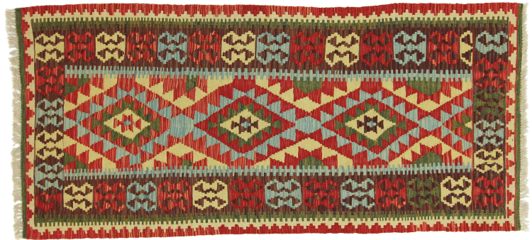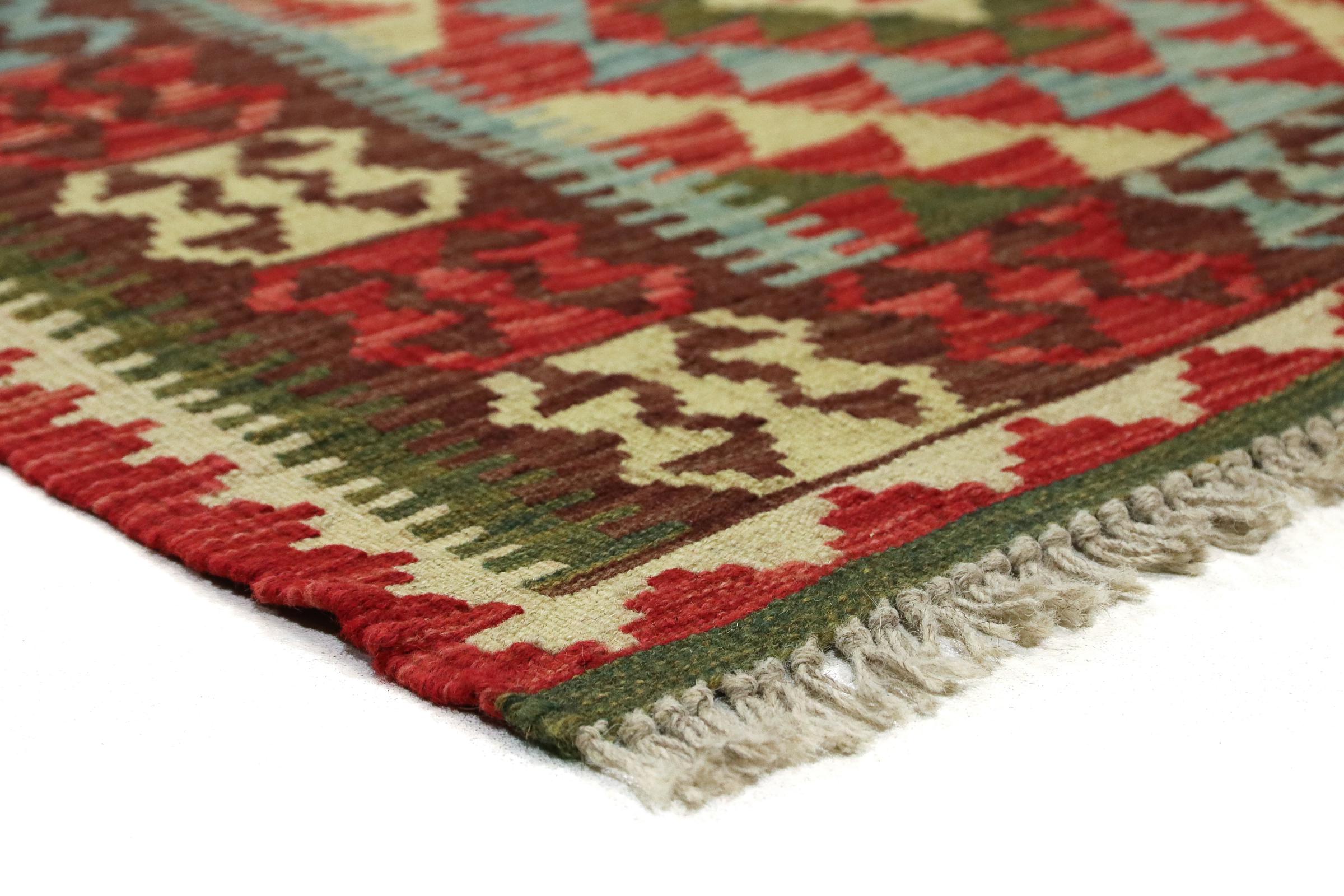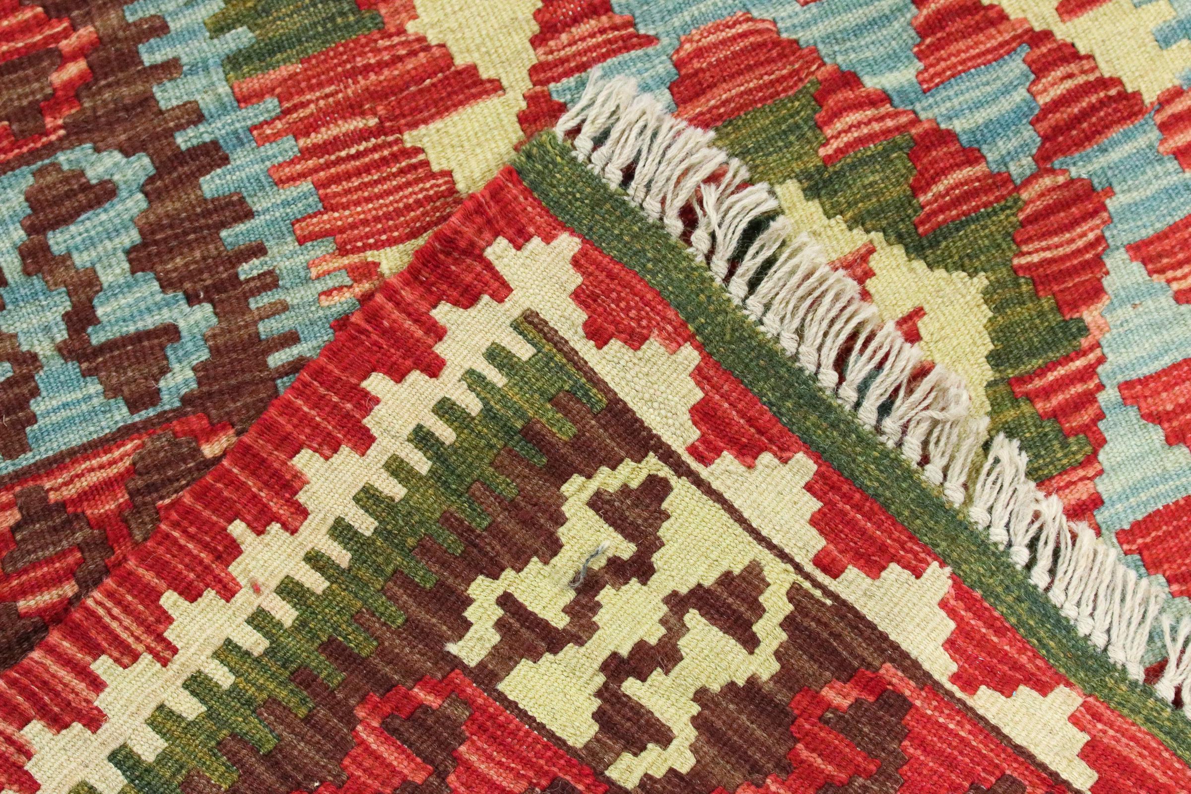 Ce tapis Afghan Kilim tissé main est une merveille, grâce à ses couleurs et à ses motifs caractéristiques. Il a été fabriqué en Afghanistan avec de la laine, et a bien sûr été fait à la main. Il est robuste et durable. Il est un véritable bénéfice pour votre maison.
