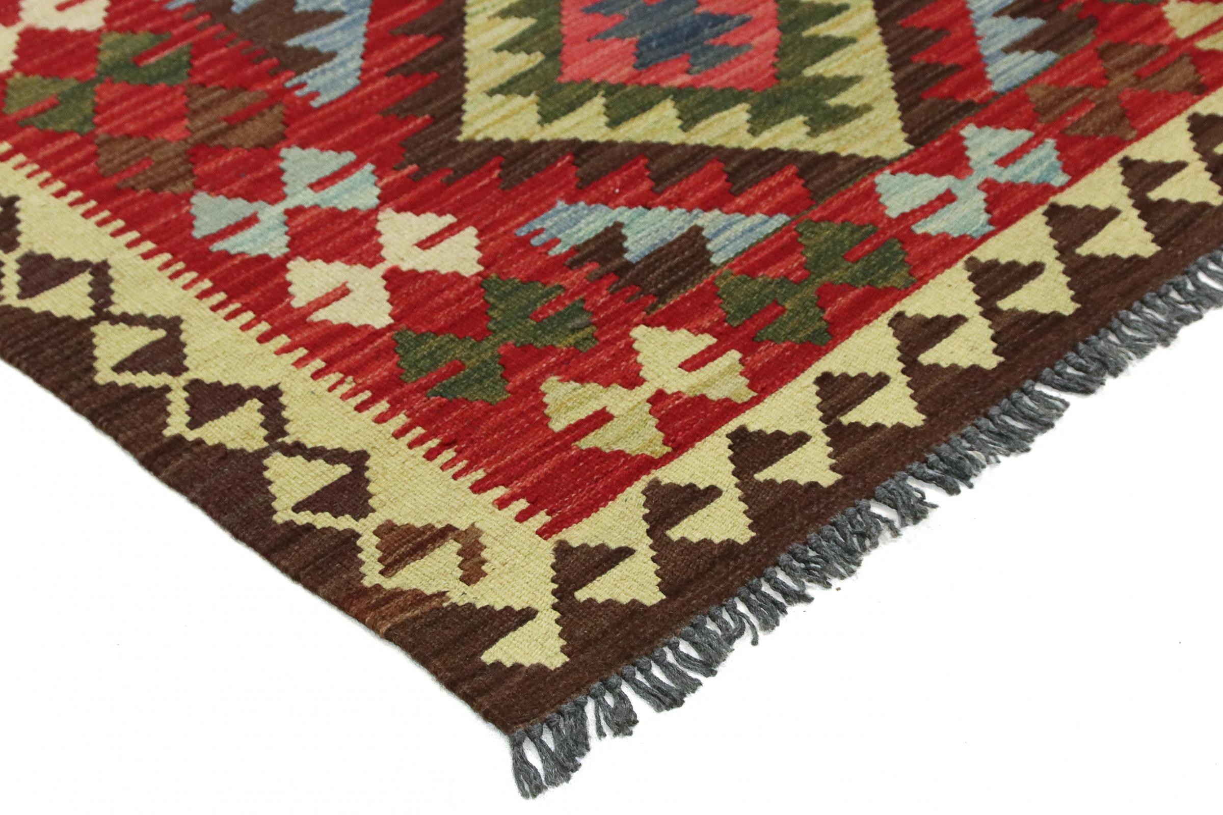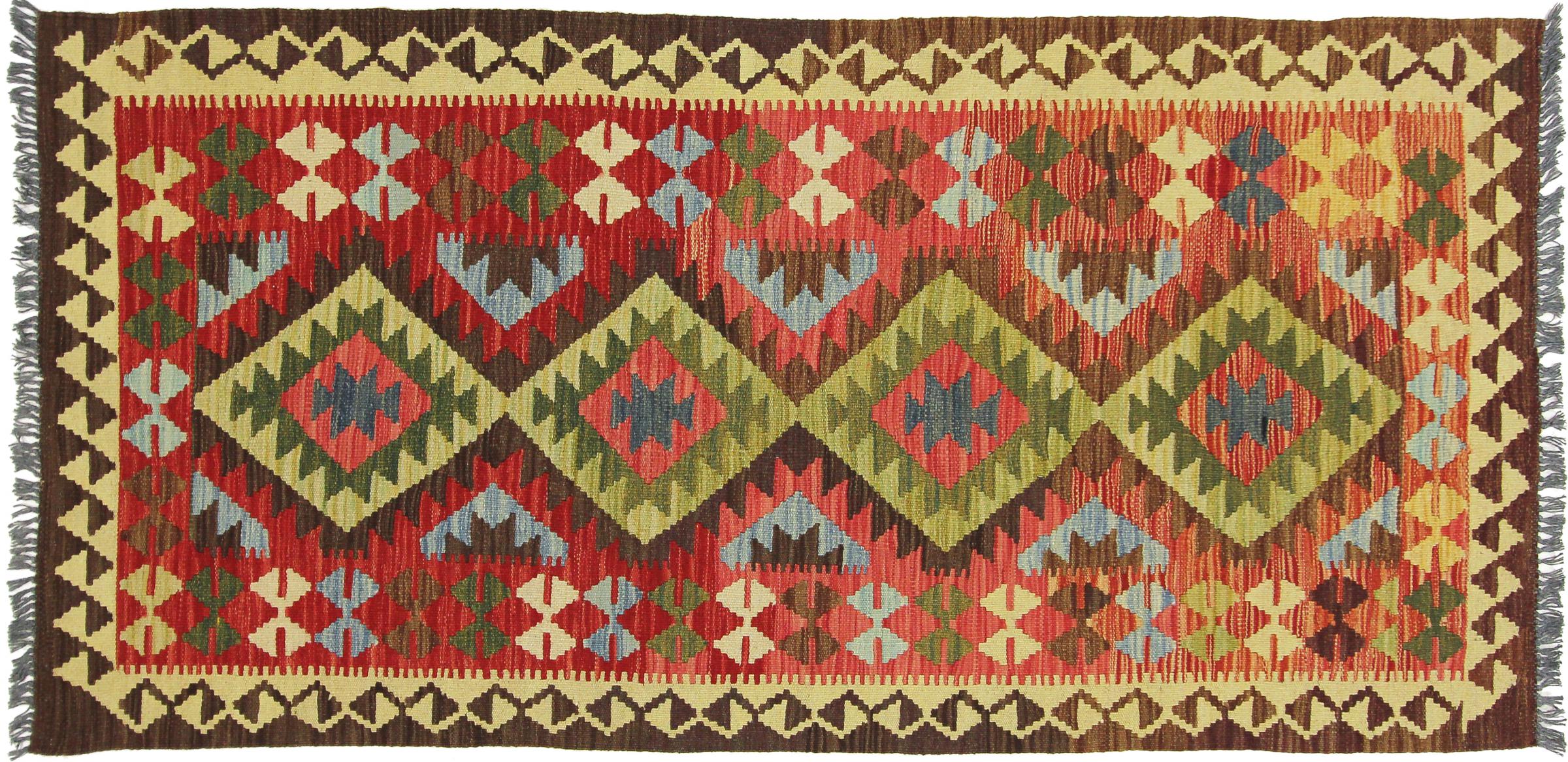 Ce tapis Afghan Kilim tissé main est une merveille, grâce à ses couleurs et à ses motifs caractéristiques. Il a été fabriqué en Afghanistan avec de la laine, et a bien sûr été fait à la main. Il est robuste et durable. Il est un véritable bénéfice pour votre maison.