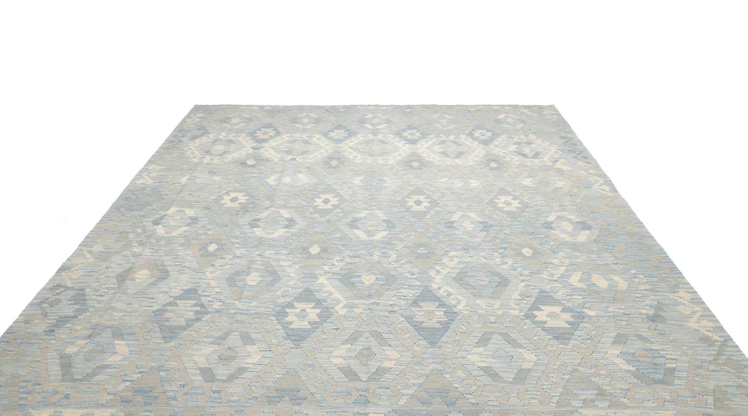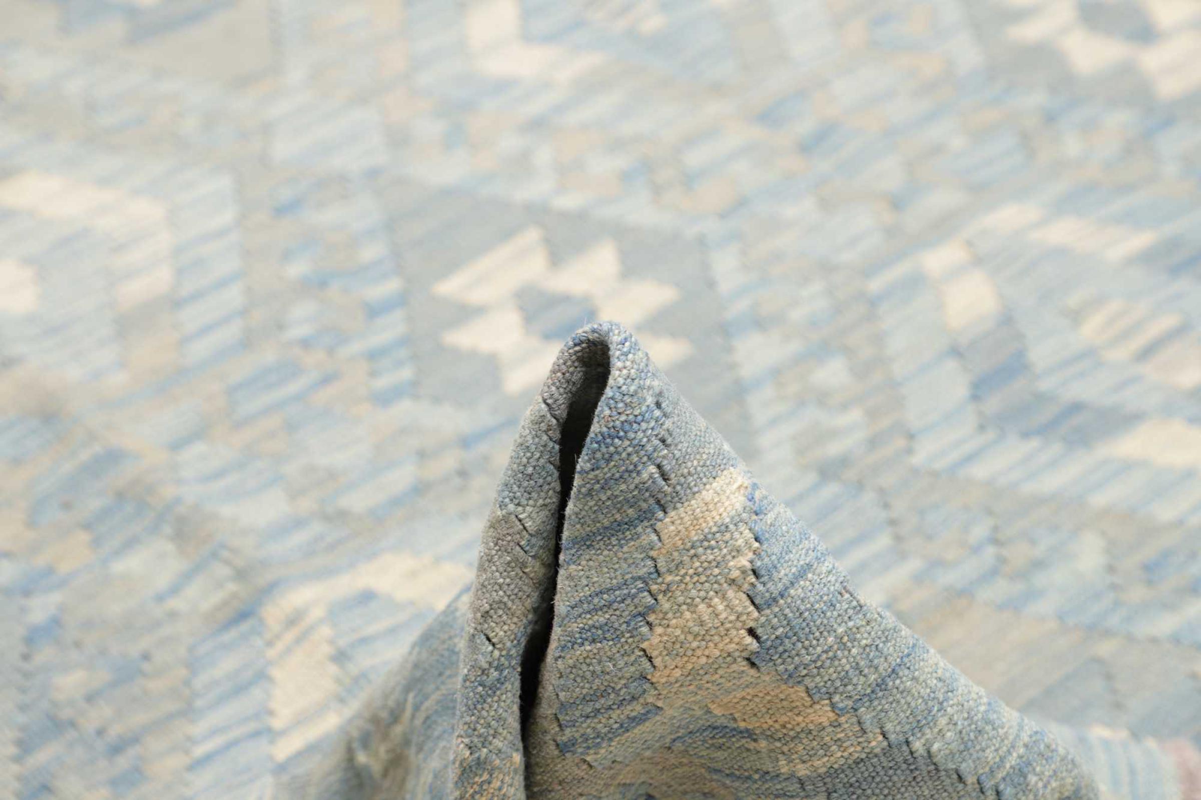 Ce tapis a été fabriqué à la main sur un métier à tisser comme un tissage plat. Le terme 'Flatweave' est utilisé pour décrire les tapis qui n'ont pas de poils. Comme leur nom l'indique, ces tapis sont tissés et non pas noués. Il en résulte un tapis plat avec une surface structurée. Les tissages plats ne sont pas aussi doux et généralement plus fins que les tapis à nœuds. En même temps, ils sont beaucoup moins complexes à fabriquer et peuvent généralement être disposés des deux côtés (avant et arrière). Leurs motifs sont généralement géométriques, ce qui est déterminé par le tissu.