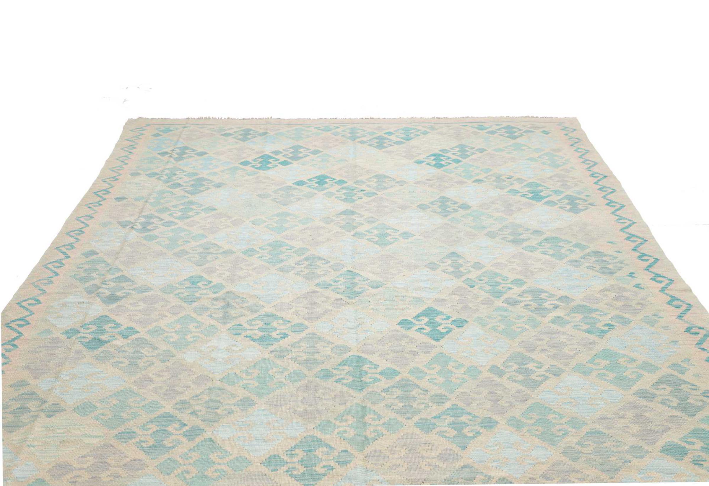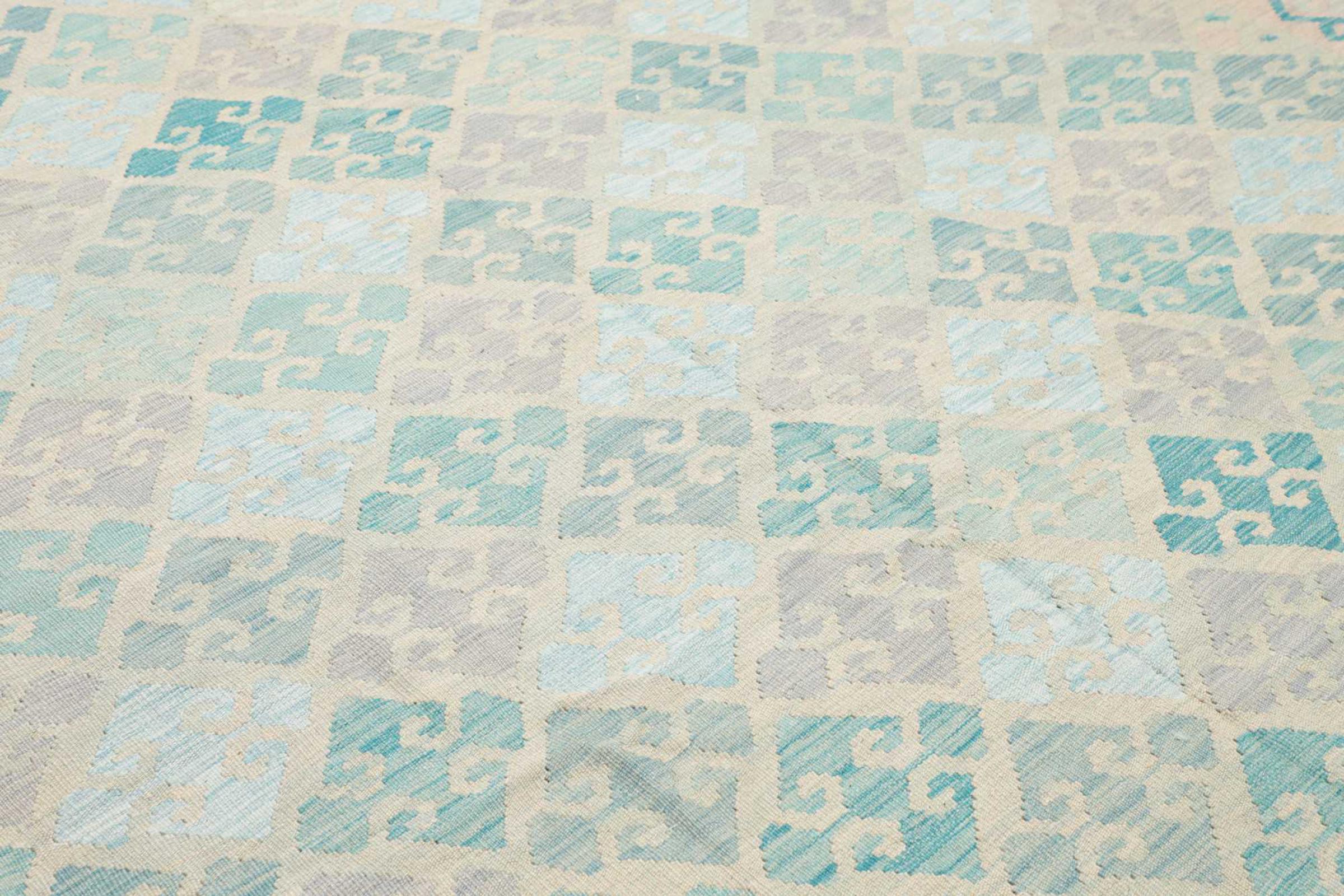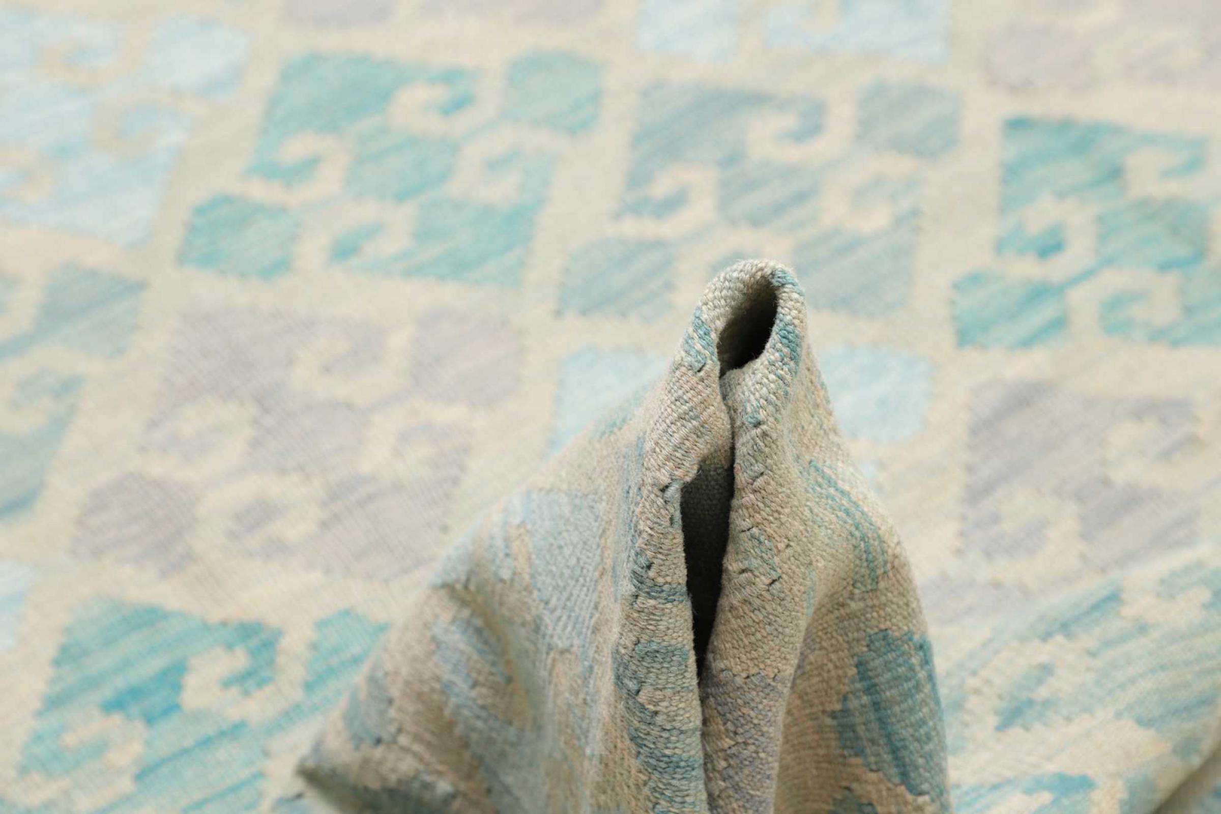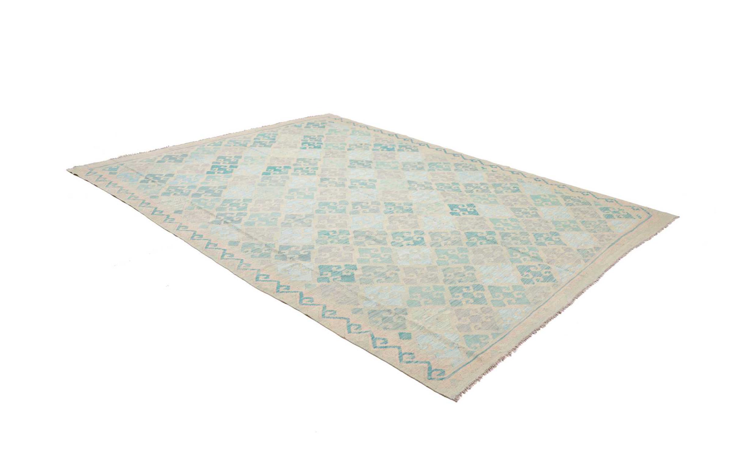Ce tapis a été fabriqué à la main sur un métier à tisser comme un tissage plat. Le terme 'Flatweave' est utilisé pour décrire les tapis qui n'ont pas de poils. Comme leur nom l'indique, ces tapis sont tissés et non pas noués. Il en résulte un tapis plat avec une surface structurée. Les tissages plats ne sont pas aussi doux et généralement plus fins que les tapis à nœuds. En même temps, ils sont beaucoup moins complexes à fabriquer et peuvent généralement être disposés des deux côtés (avant et arrière). Leurs motifs sont généralement géométriques, ce qui est déterminé par le tissu.