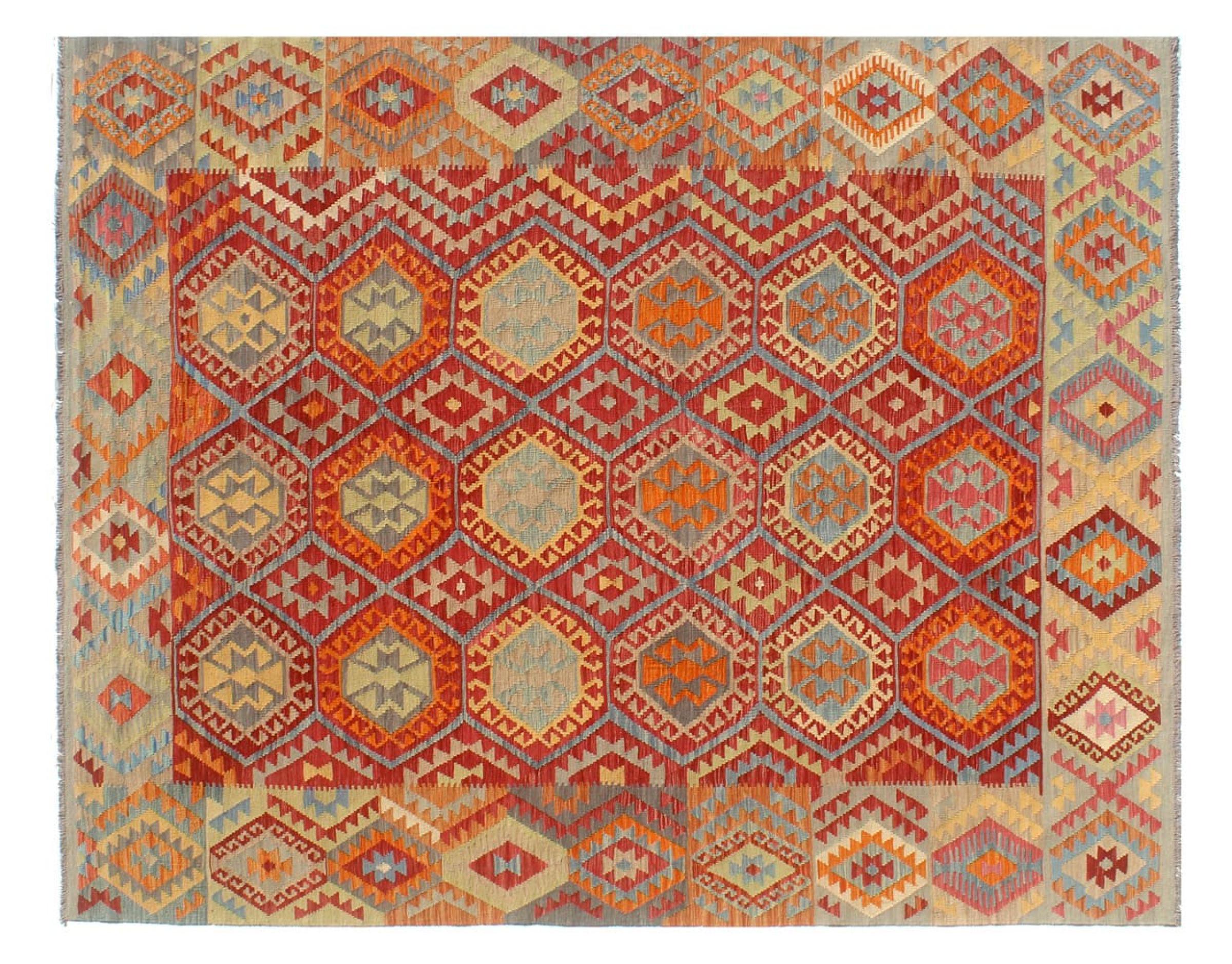 Ce tapis Afghan Kilim tissé main est une merveille, grâce à ses couleurs et à ses motifs caractéristiques. Il a été fabriqué en Afghanistan avec de la laine, et a bien sûr été fait à la main. Il est robuste et durable. Il est un véritable bénéfice pour votre maison.
