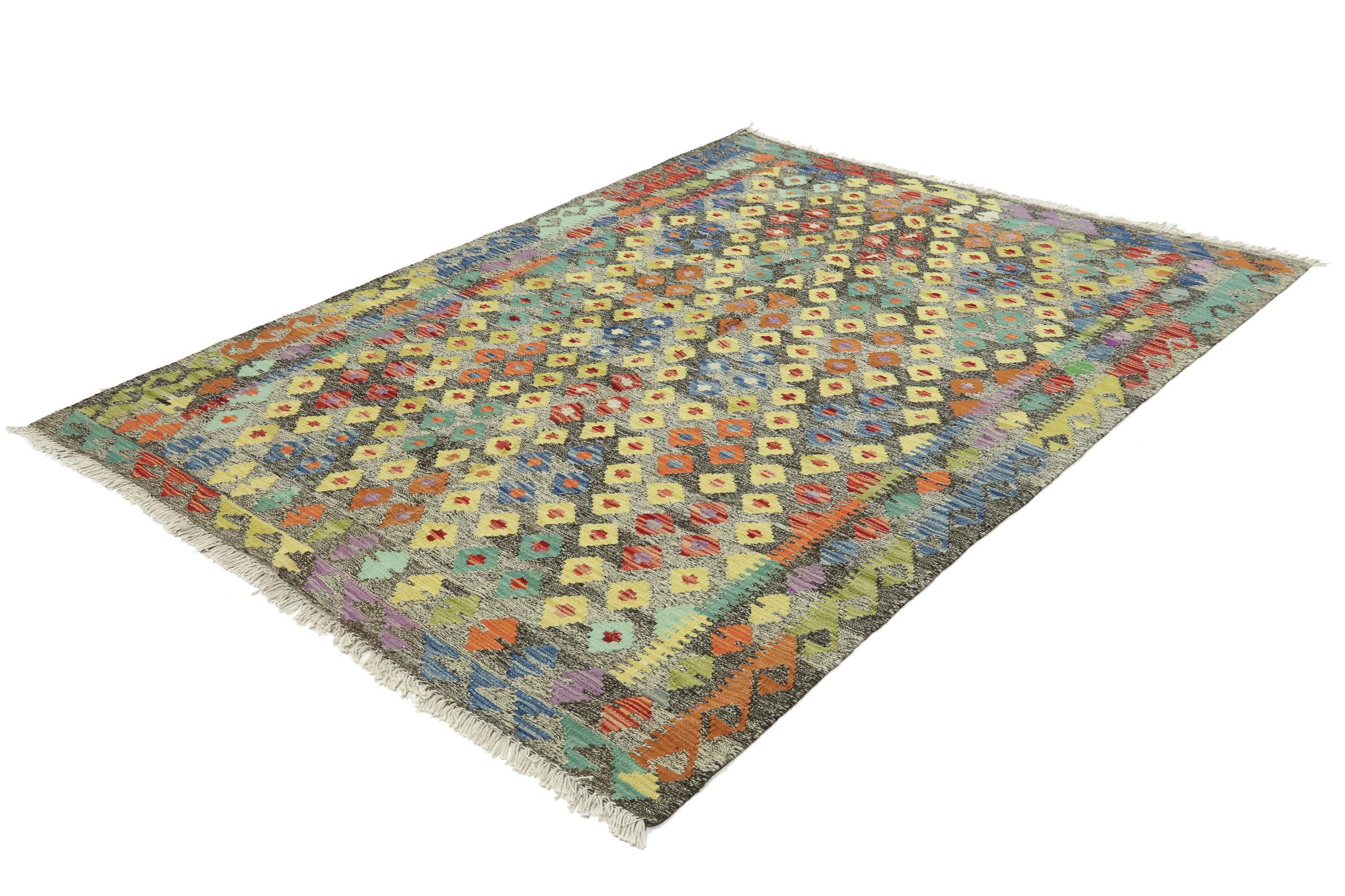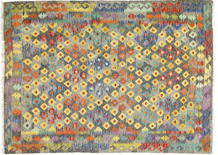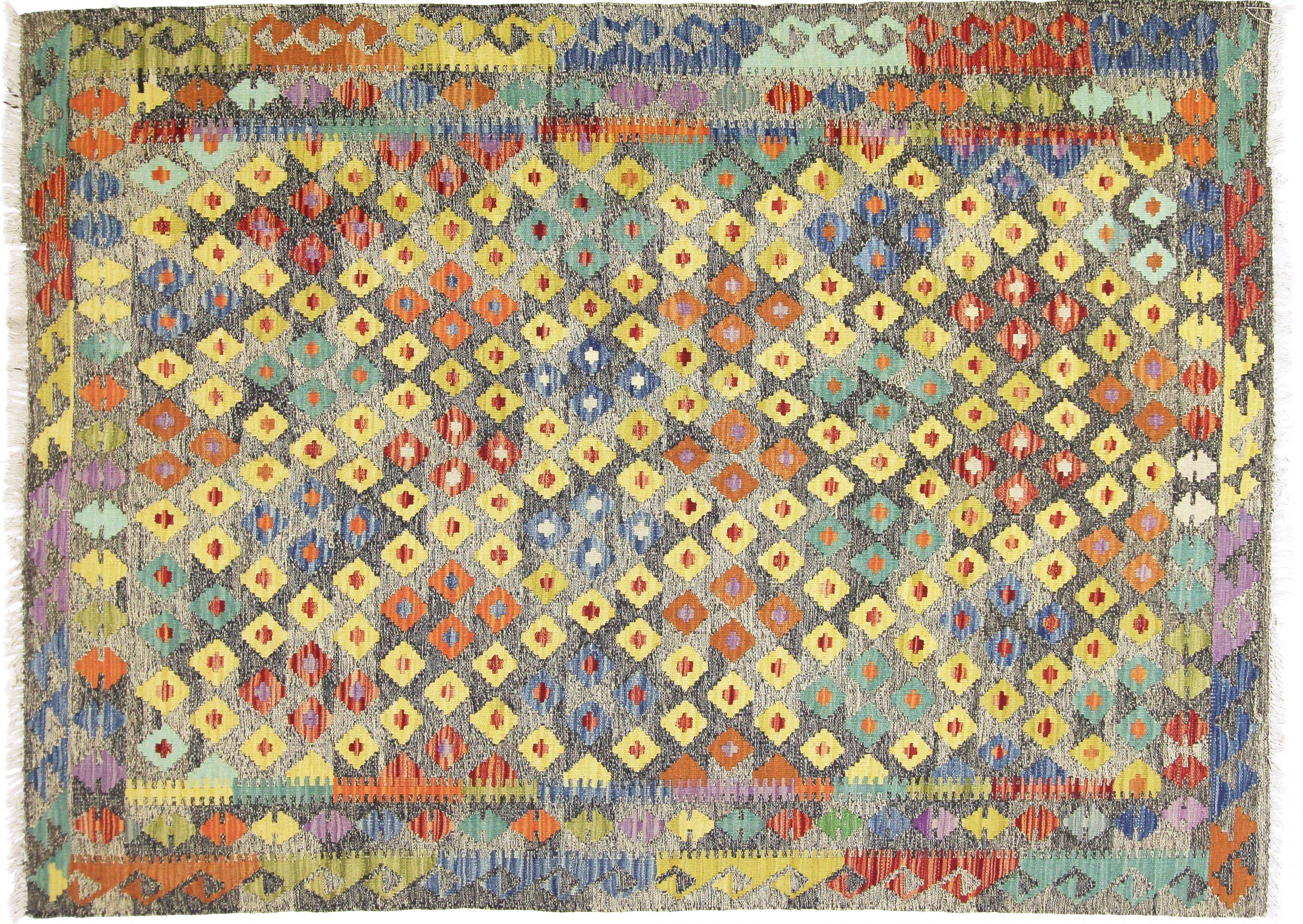 Réf. Article: 73625009328405 Taille: 197x145 cm Épaisseur: ap. 3 mm Fabrication: Tissé à la main Velours: Laine de mouton Chaîne: Laine de mouton Origine: Afghanistan Âge: Nouveau Poids: ap. 4 kg Également connu sous Kilim, Qilim, Chilim, Afgan, Afghán Nombre en stock: Unique