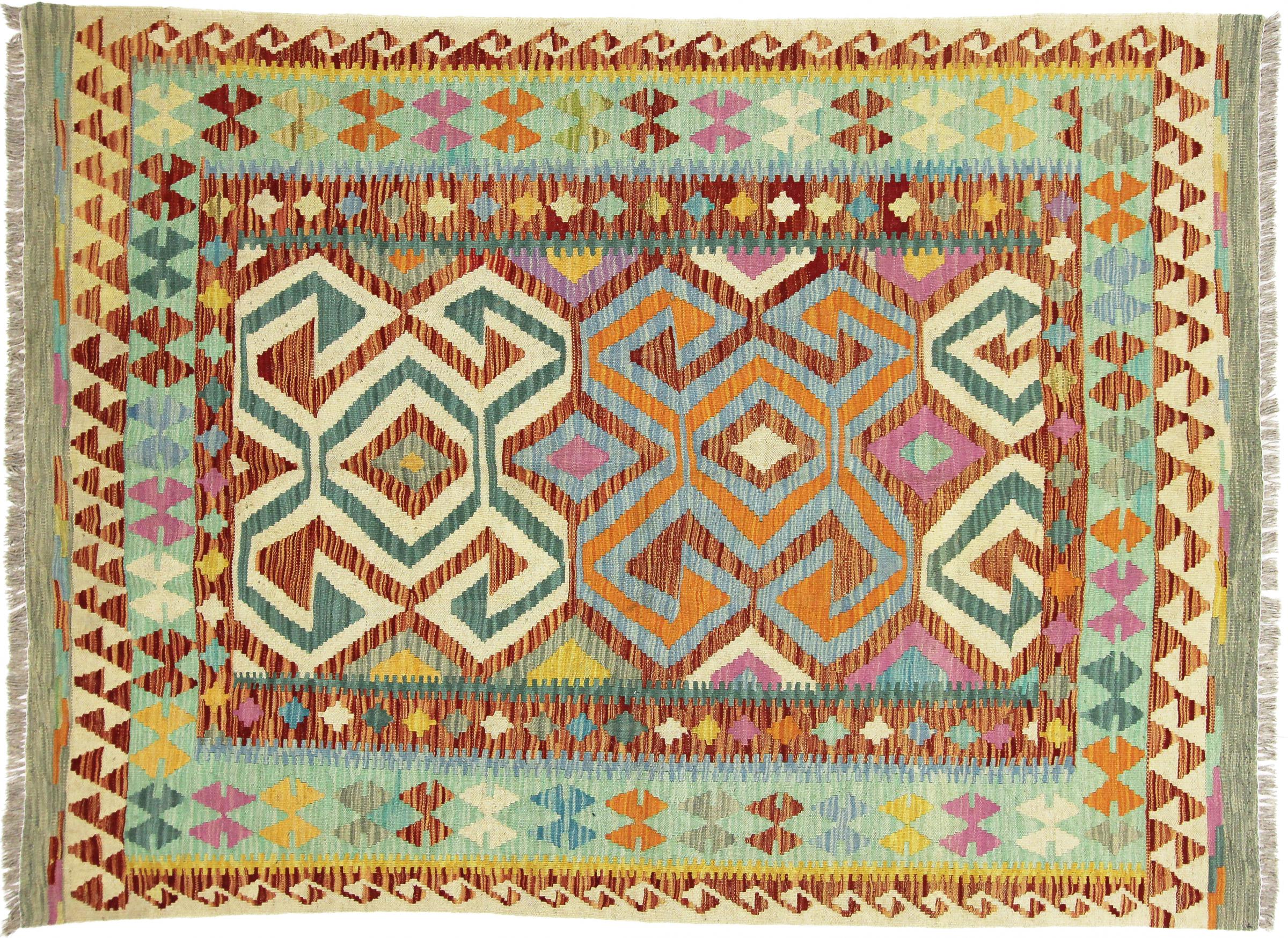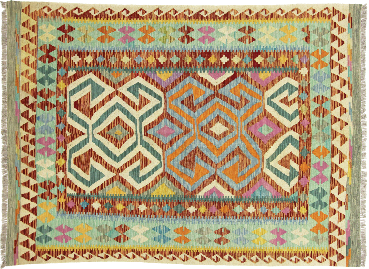 Réf. Article: 73586008726986 Taille: 205x151 cm Épaisseur: ap. 3 mm Fabrication: Tissé à la main Velours: Laine de mouton Chaîne: Laine de mouton Origine: Afghanistan Âge: Nouveau Poids: ap. 5 kg Également connu sous Kilim, Qilim, Chilim, Afgan, Afghán Nombre en stock: Unique