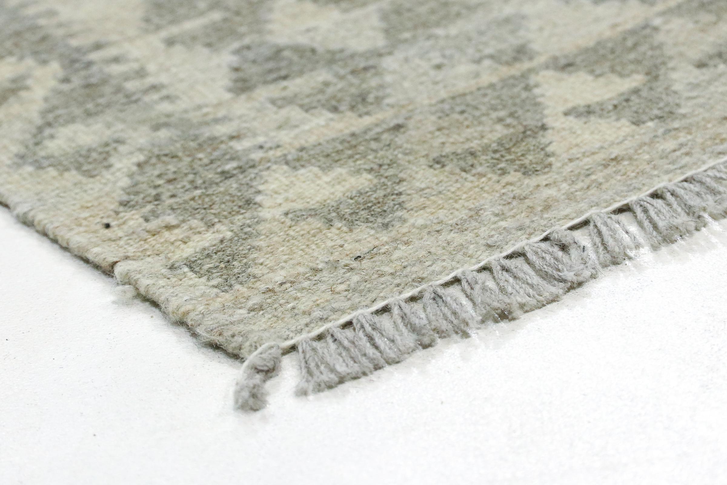 Ce tapis a été fabriqué à la main sur un métier à tisser comme un tissage plat. Le terme 'Flatweave' est utilisé pour décrire les tapis qui n'ont pas de poils. Comme leur nom l'indique, ces tapis sont tissés et non pas noués. Il en résulte un tapis plat avec une surface structurée. Les tissages plats ne sont pas aussi doux et généralement plus fins que les tapis à nœuds. En même temps, ils sont beaucoup moins complexes à fabriquer et peuvent généralement être disposés des deux côtés (avant et arrière). Leurs motifs sont généralement géométriques, ce qui est déterminé par le tissu.