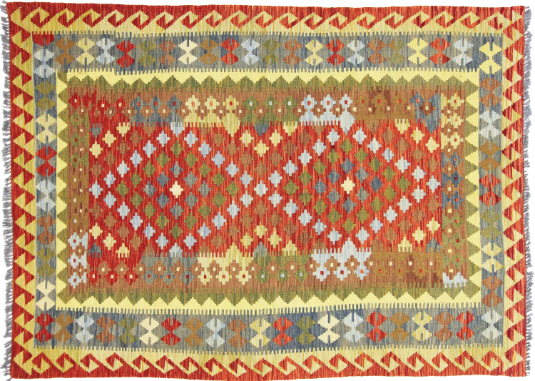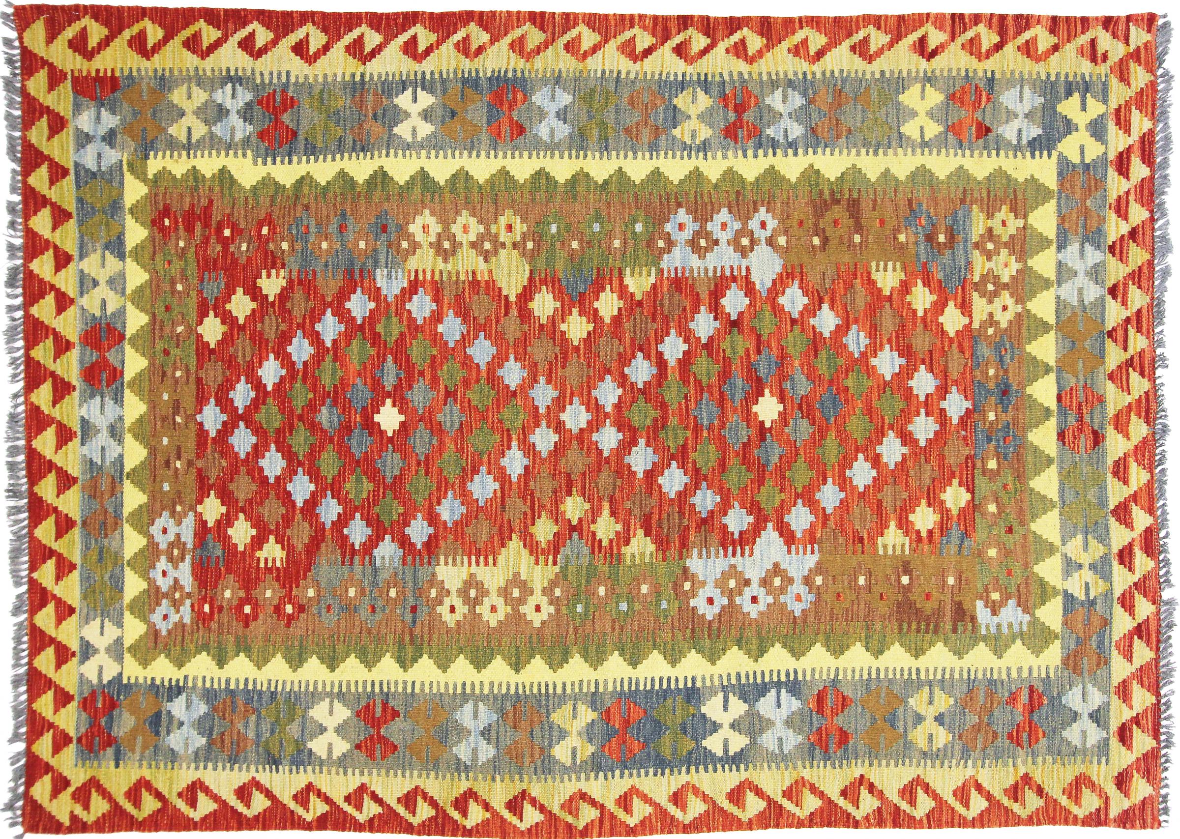 Réf. Article: 73613003435632 Taille: 212x157 cm Épaisseur: ap. 3 mm Fabrication: Tissé à la main Velours: Laine de mouton Chaîne: Laine de mouton Origine: Afghanistan Âge: Nouveau Poids: ap. 5 kg Également connu sous Kilim, Qilim, Chilim, Afgan, Afghán Nombre en stock: Unique