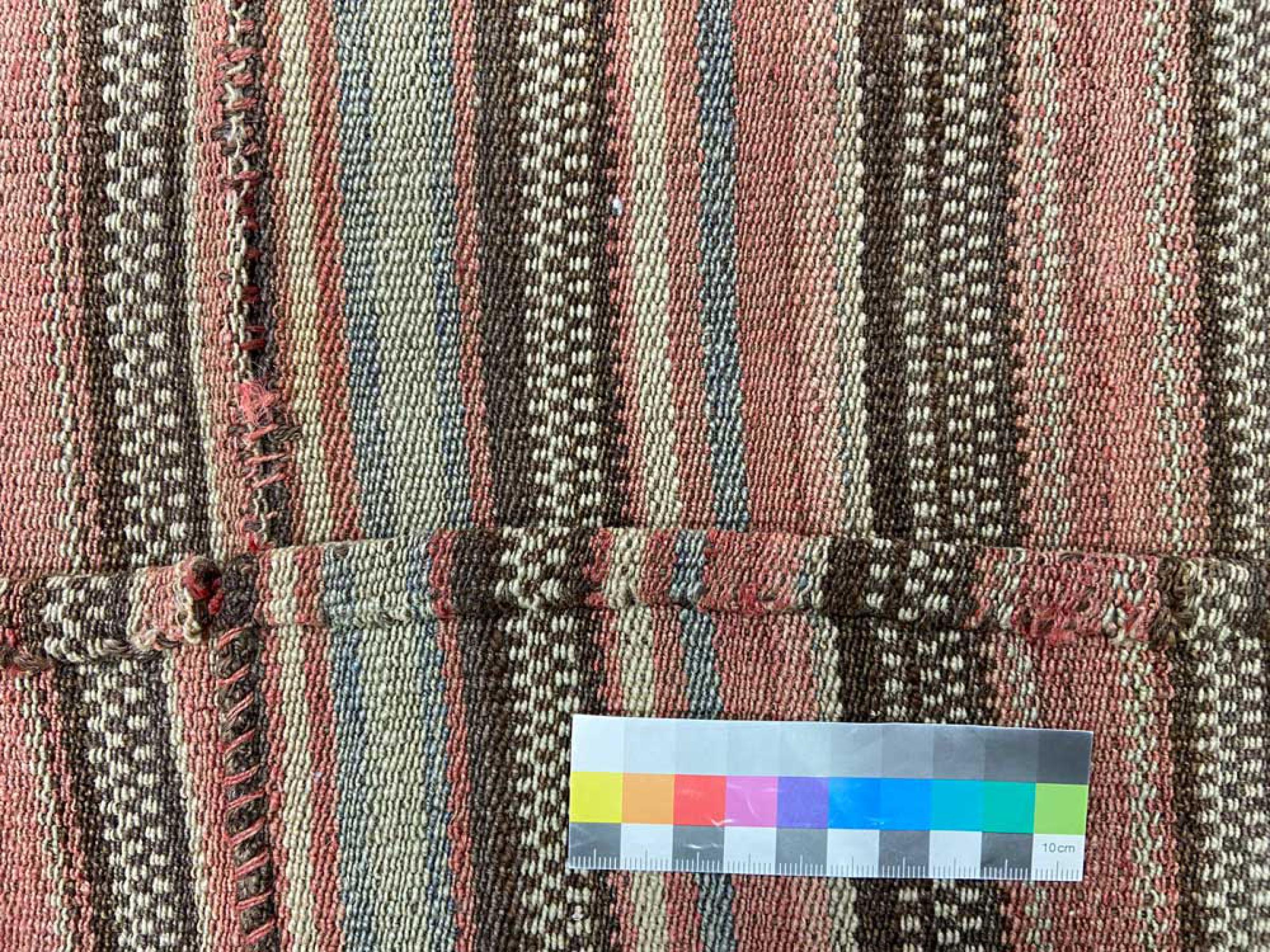 Ce tapis a été fabriqué à la main sur un métier à tisser comme un tissage plat. Le terme 'Flatweave' est utilisé pour décrire les tapis qui n'ont pas de poils. Comme leur nom l'indique, ces tapis sont tissés et non pas noués. Il en résulte un tapis plat avec une surface structurée. Les tissages plats ne sont pas aussi doux et généralement plus fins que les tapis à nœuds. En même temps, ils sont beaucoup moins complexes à fabriquer et peuvent généralement être disposés des deux côtés (avant et arrière). Leurs motifs sont généralement géométriques, ce qui est déterminé par le tissu.