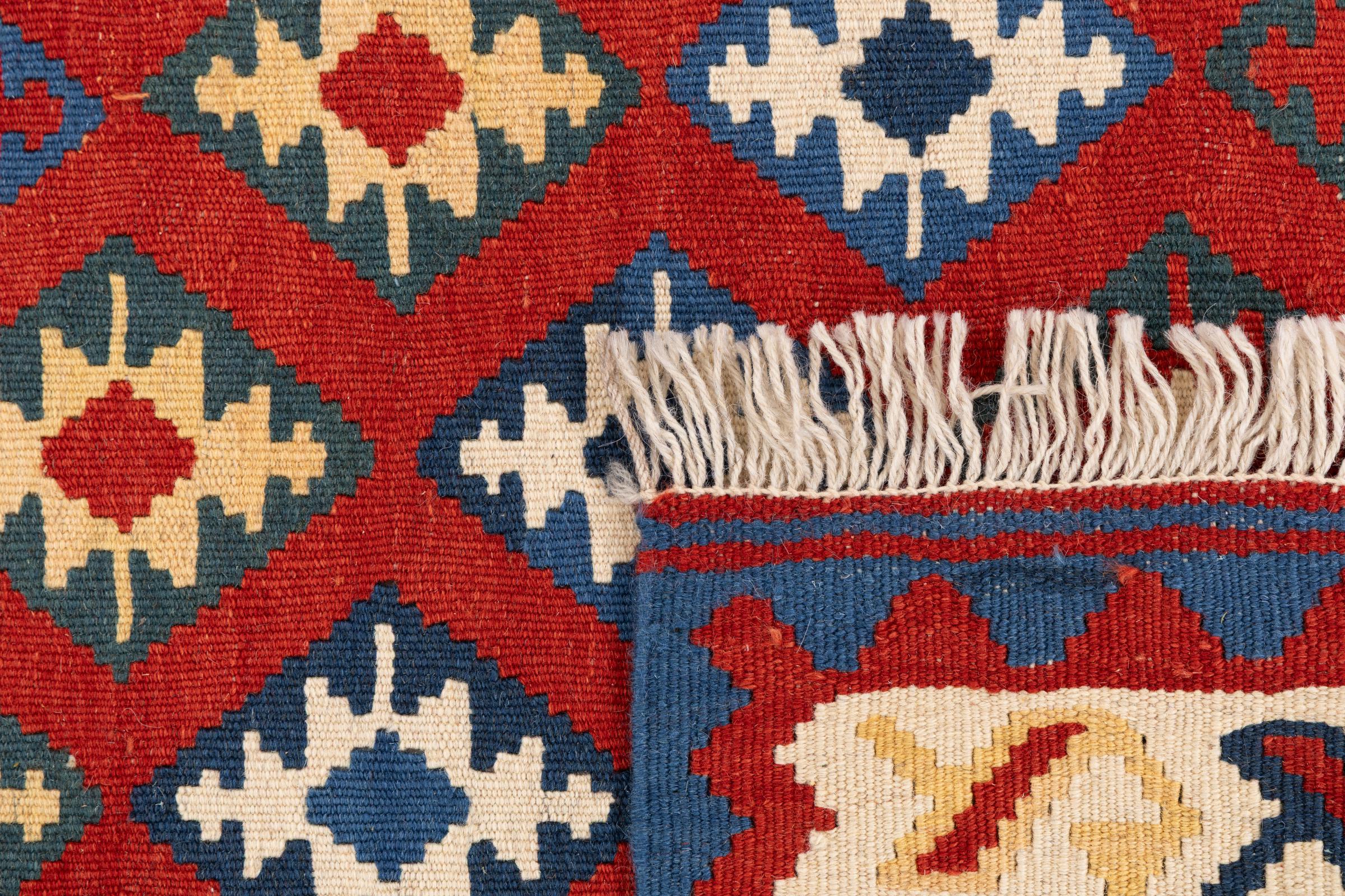 Ce tapis a été fabriqué à la main sur un métier à tisser comme un tissage plat. Le terme 'Flatweave' est utilisé pour décrire les tapis qui n'ont pas de poils. Comme leur nom l'indique, ces tapis sont tissés et non pas noués. Il en résulte un tapis plat avec une surface structurée. Les tissages plats ne sont pas aussi doux et généralement plus fins que les tapis à nœuds. En même temps, ils sont beaucoup moins complexes à fabriquer et peuvent généralement être disposés des deux côtés (avant et arrière). Leurs motifs sont généralement géométriques, ce qui est déterminé par le tissu.