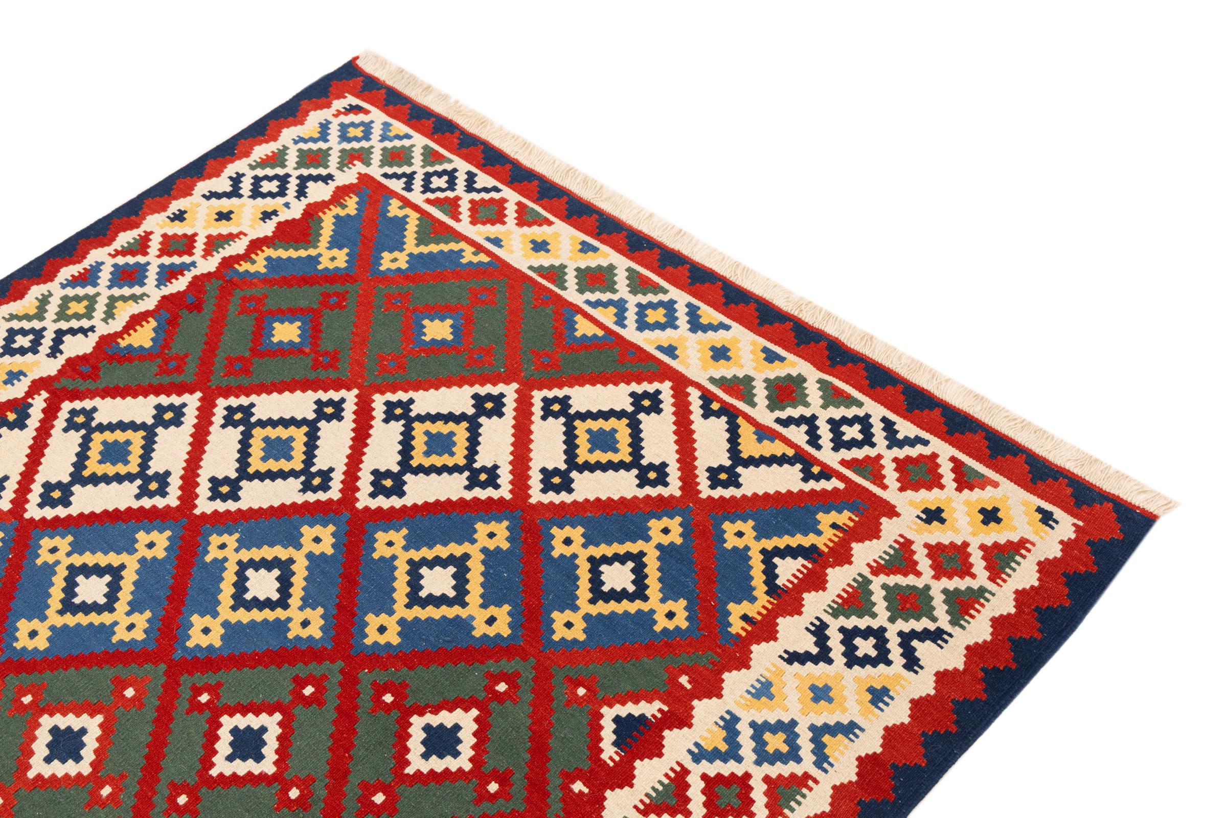 Ce tapis a été fabriqué à la main sur un métier à tisser comme un tissage plat. Le terme 'Flatweave' est utilisé pour décrire les tapis qui n'ont pas de poils. Comme leur nom l'indique, ces tapis sont tissés et non pas noués. Il en résulte un tapis plat avec une surface structurée. Les tissages plats ne sont pas aussi doux et généralement plus fins que les tapis à nœuds. En même temps, ils sont beaucoup moins complexes à fabriquer et peuvent généralement être disposés des deux côtés (avant et arrière). Leurs motifs sont généralement géométriques, ce qui est déterminé par le tissu.