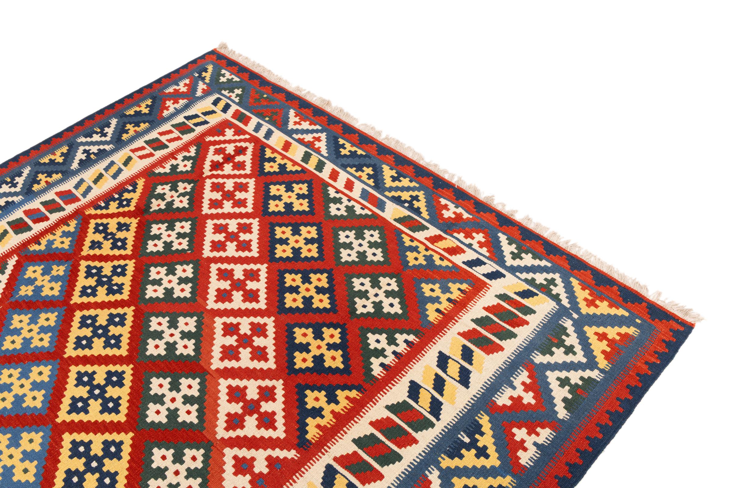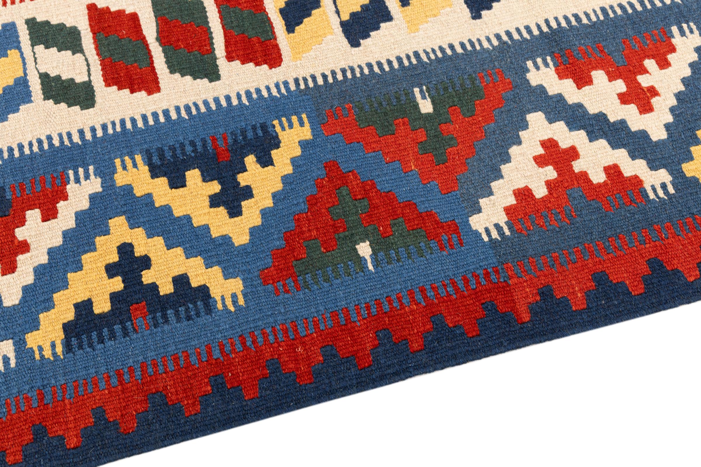 Ce tapis a été fabriqué à la main sur un métier à tisser comme un tissage plat. Le terme 'Flatweave' est utilisé pour décrire les tapis qui n'ont pas de poils. Comme leur nom l'indique, ces tapis sont tissés et non pas noués. Il en résulte un tapis plat avec une surface structurée. Les tissages plats ne sont pas aussi doux et généralement plus fins que les tapis à nœuds. En même temps, ils sont beaucoup moins complexes à fabriquer et peuvent généralement être disposés des deux côtés (avant et arrière). Leurs motifs sont généralement géométriques, ce qui est déterminé par le tissu.