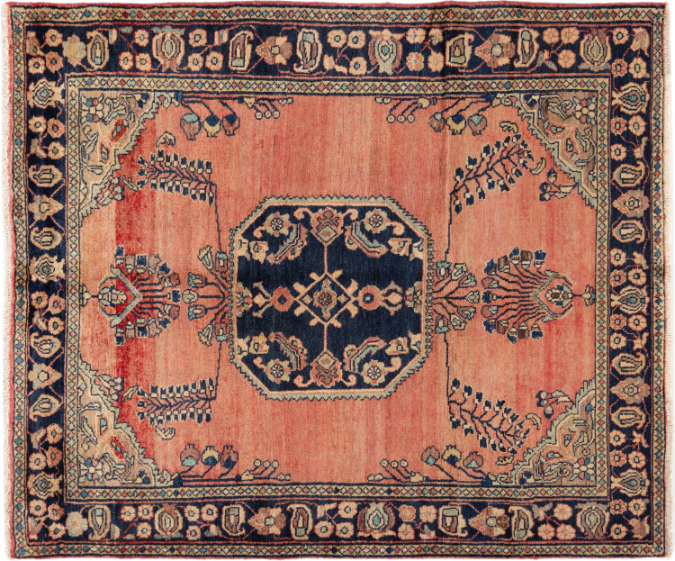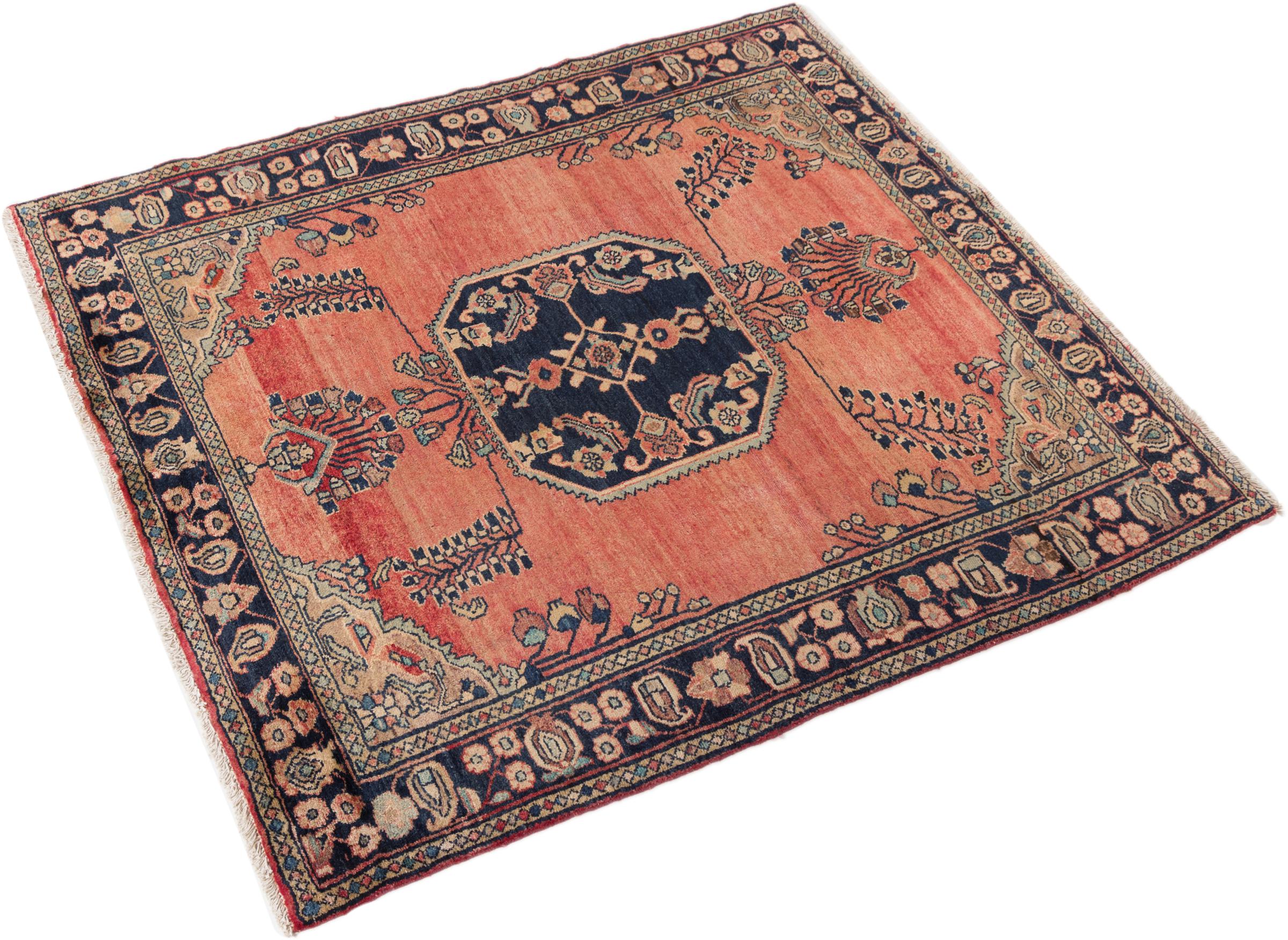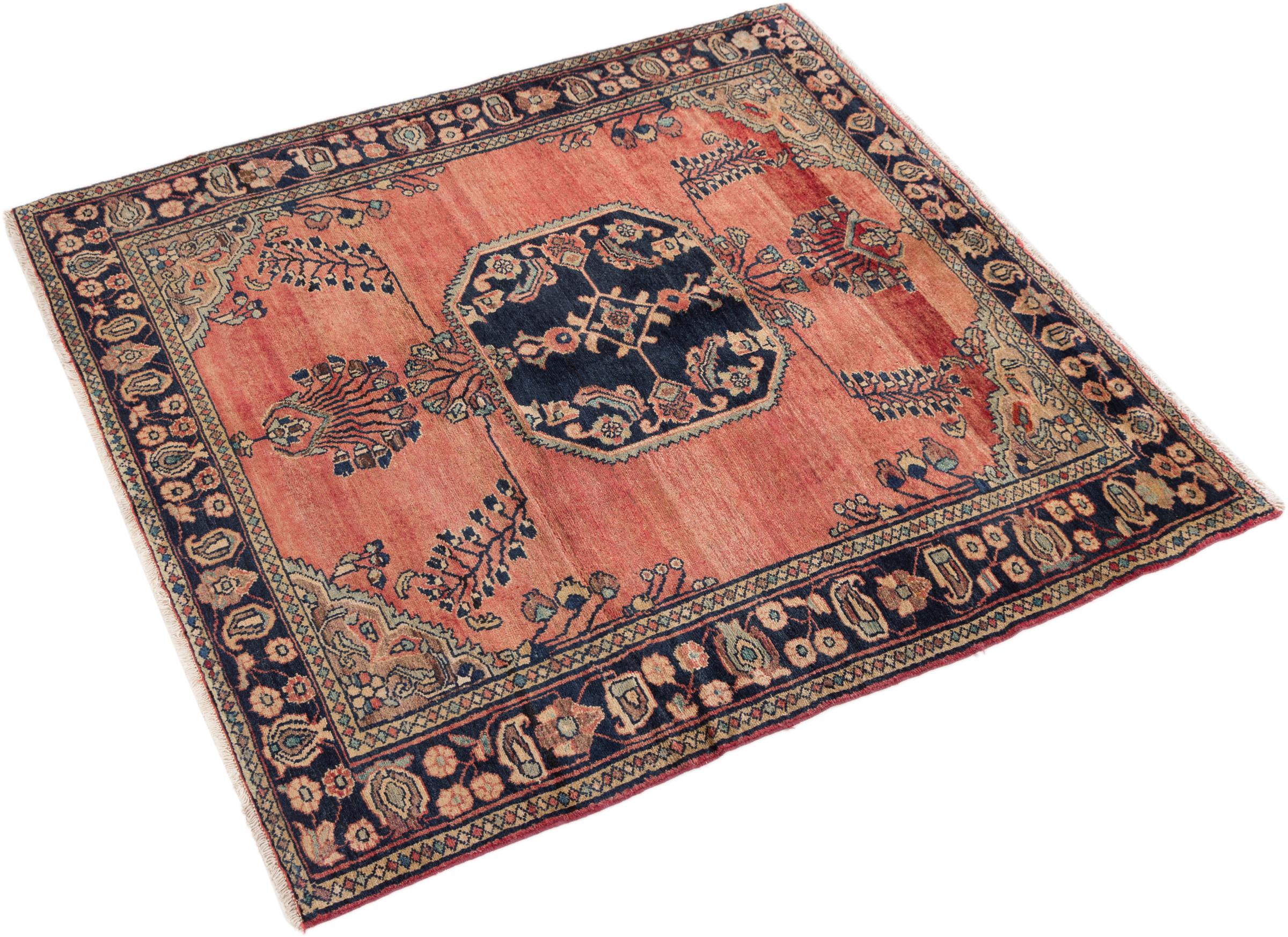 Réf. Article: 295827001713 Taille: 183x158 cm Épaisseur: ap. 8 mm Densité de nouage: 200 000 - 250 000 / m² Fabrication: Noué à la main Velours: Laine filée à la main Chaîne: Coton Origine: Persie / Iran Âge: Vieux/Semi antique, over 50 ans Poids: ap. 10 kg Nombre en stock: Unique - Seulement 1 en stock