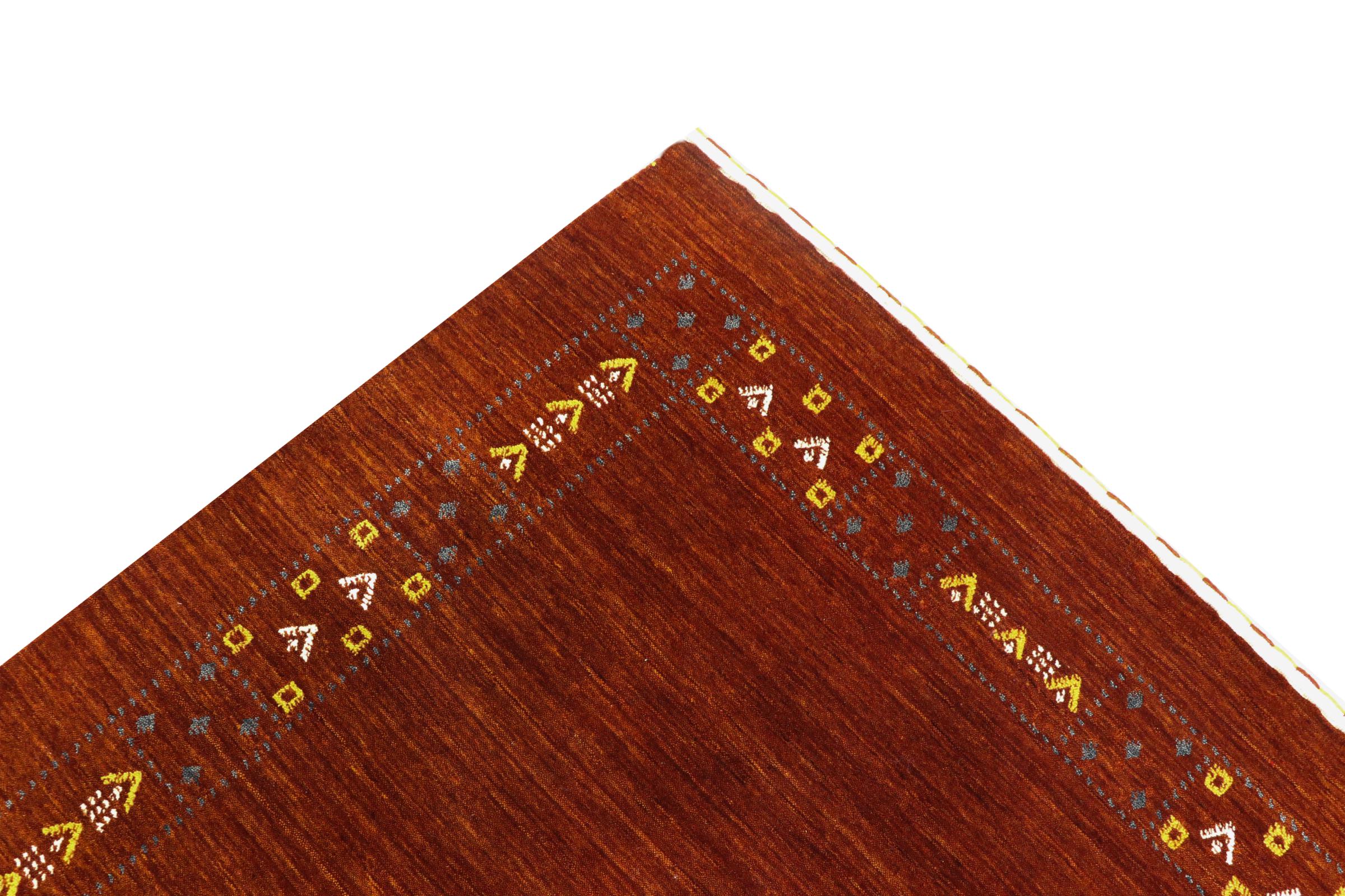Ce tapis Loom Gabbeh Lori a été fait à la main avec une nouvelle technologie de tissage dans une petite commune de Bhadohi en Inde. C’est pourquoi il est possible de produire de beaux tapis modernes dans un design Gabbeh. De la haute qualité de laine est utilisée. Il s’adapte avec ses magnifiques couleurs à l’atmosphère d’une maison.