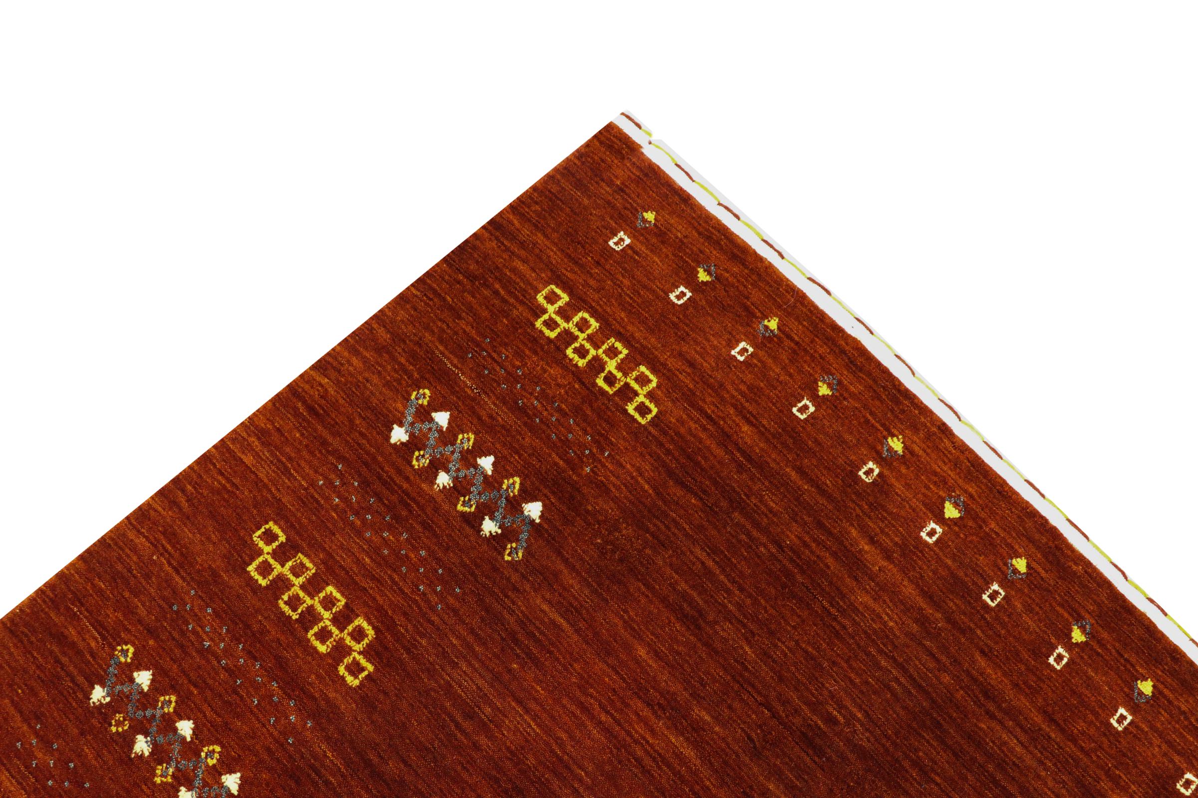 Ce tapis Loom Gabbeh Lori a été fait à la main avec une nouvelle technologie de tissage dans une petite commune de Bhadohi en Inde. C’est pourquoi il est possible de produire de beaux tapis modernes dans un design Gabbeh. De la haute qualité de laine est utilisée. Il s’adapte avec ses magnifiques couleurs à l’atmosphère d’une maison.