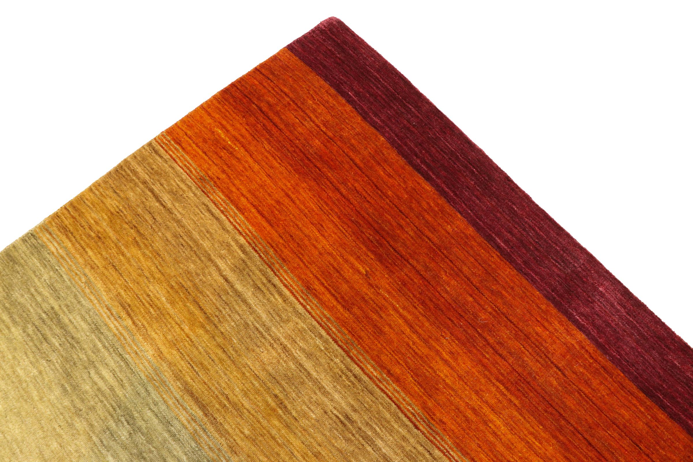 Ce tapis Loom Gabbeh Lori a été fait à la main avec une nouvelle technologie de tissage dans une petite commune de Bhadohi en Inde. C’est pourquoi il est possible de produire de beaux tapis modernes dans un design Gabbeh. De la haute qualité de laine est utilisée. Il s’adapte avec ses magnifiques couleurs à l’atmosphère d’une maison.