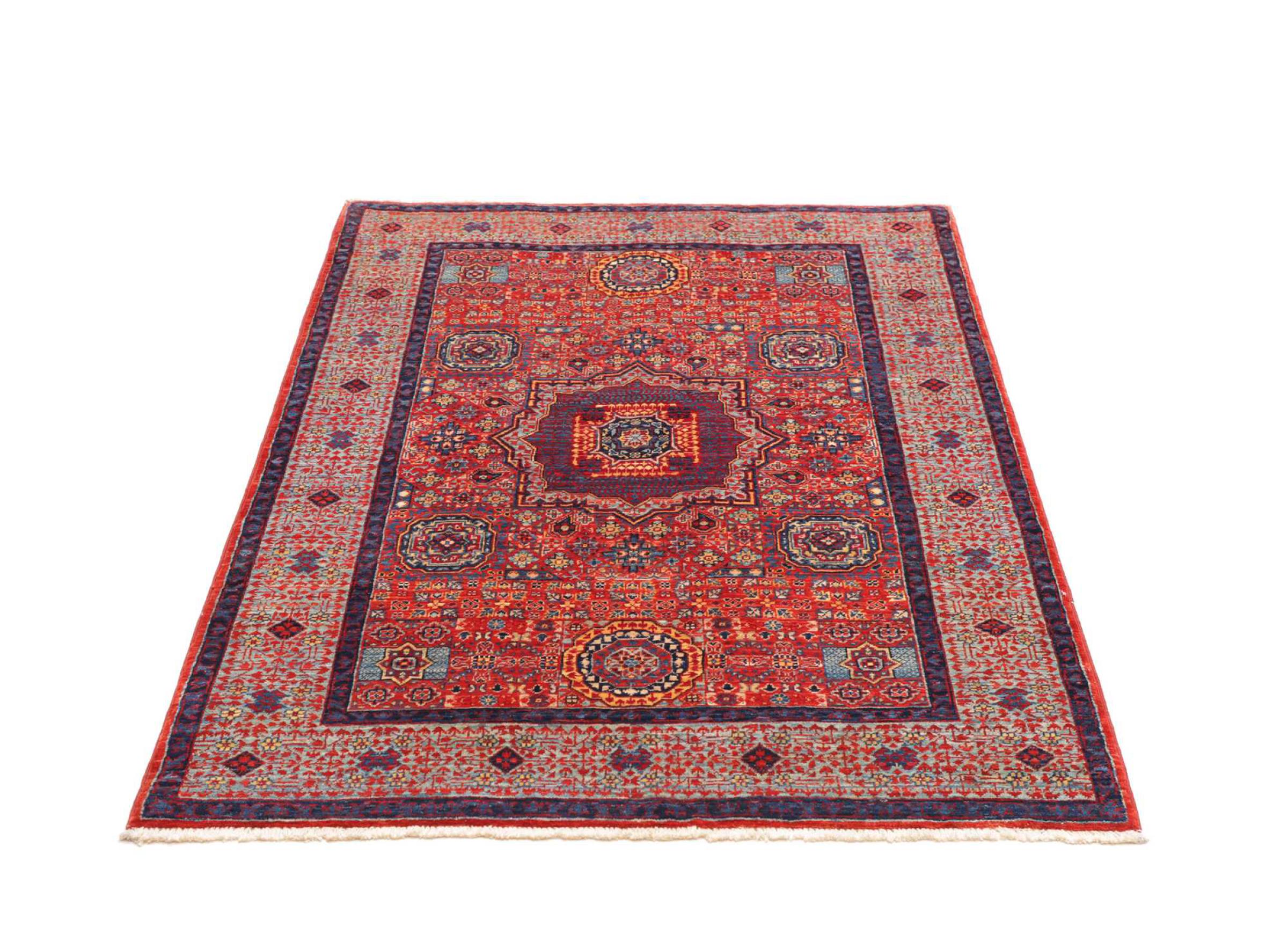 Ce tapis Mamelouk est fait main et convainc par sa délicatesse et son élégance. Ses couleurs sont très bien assemblées et ses magnifiques motifs animent son environnement.