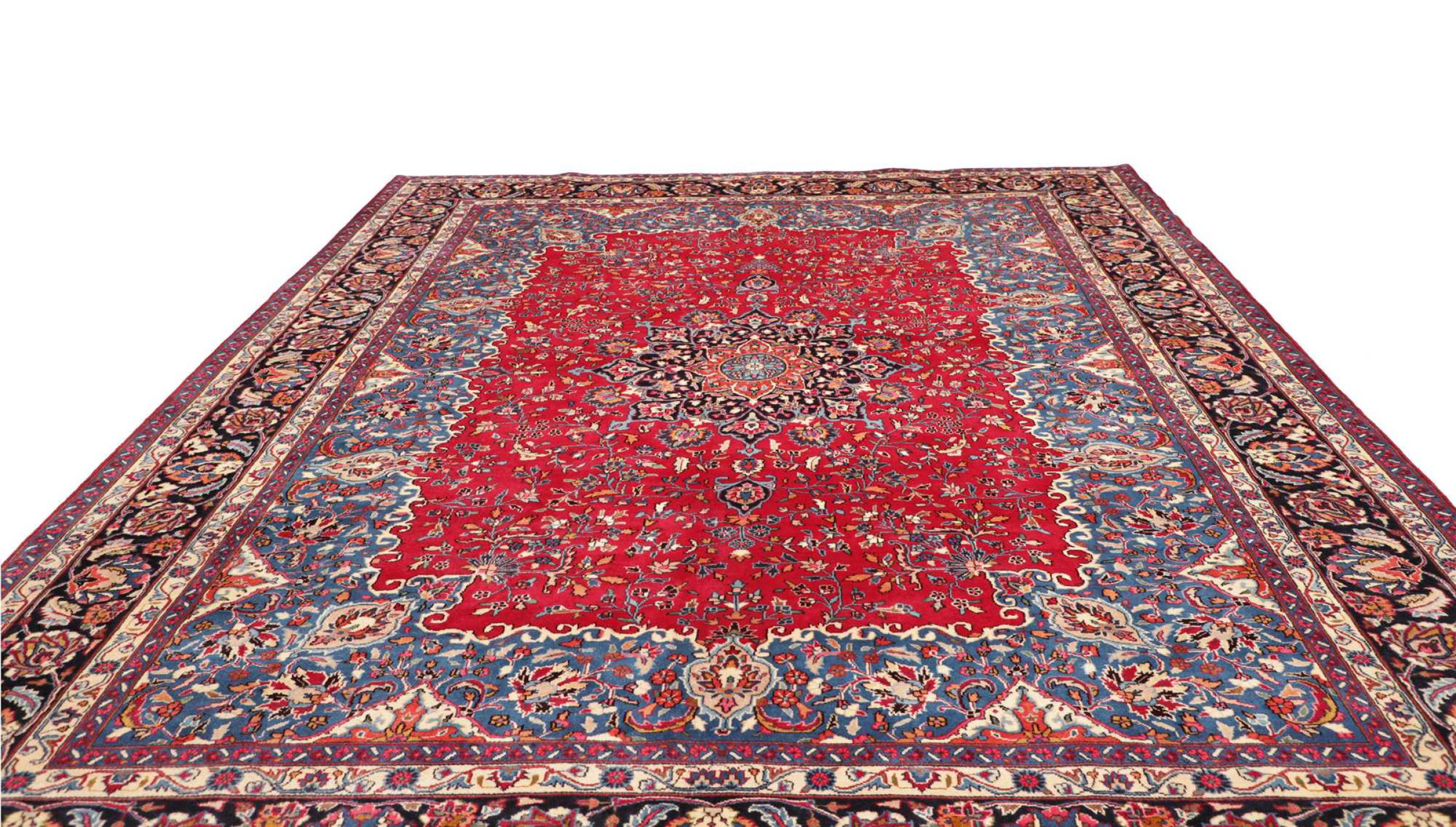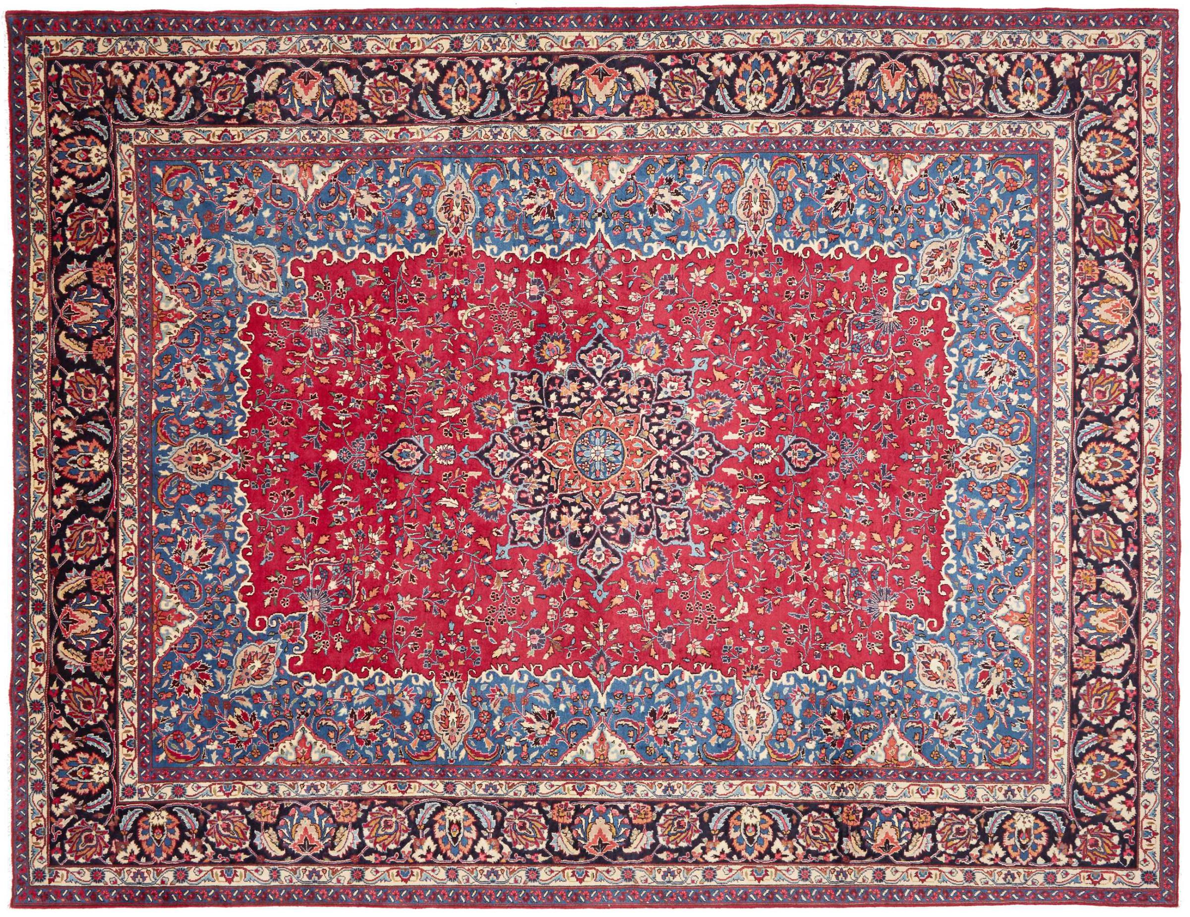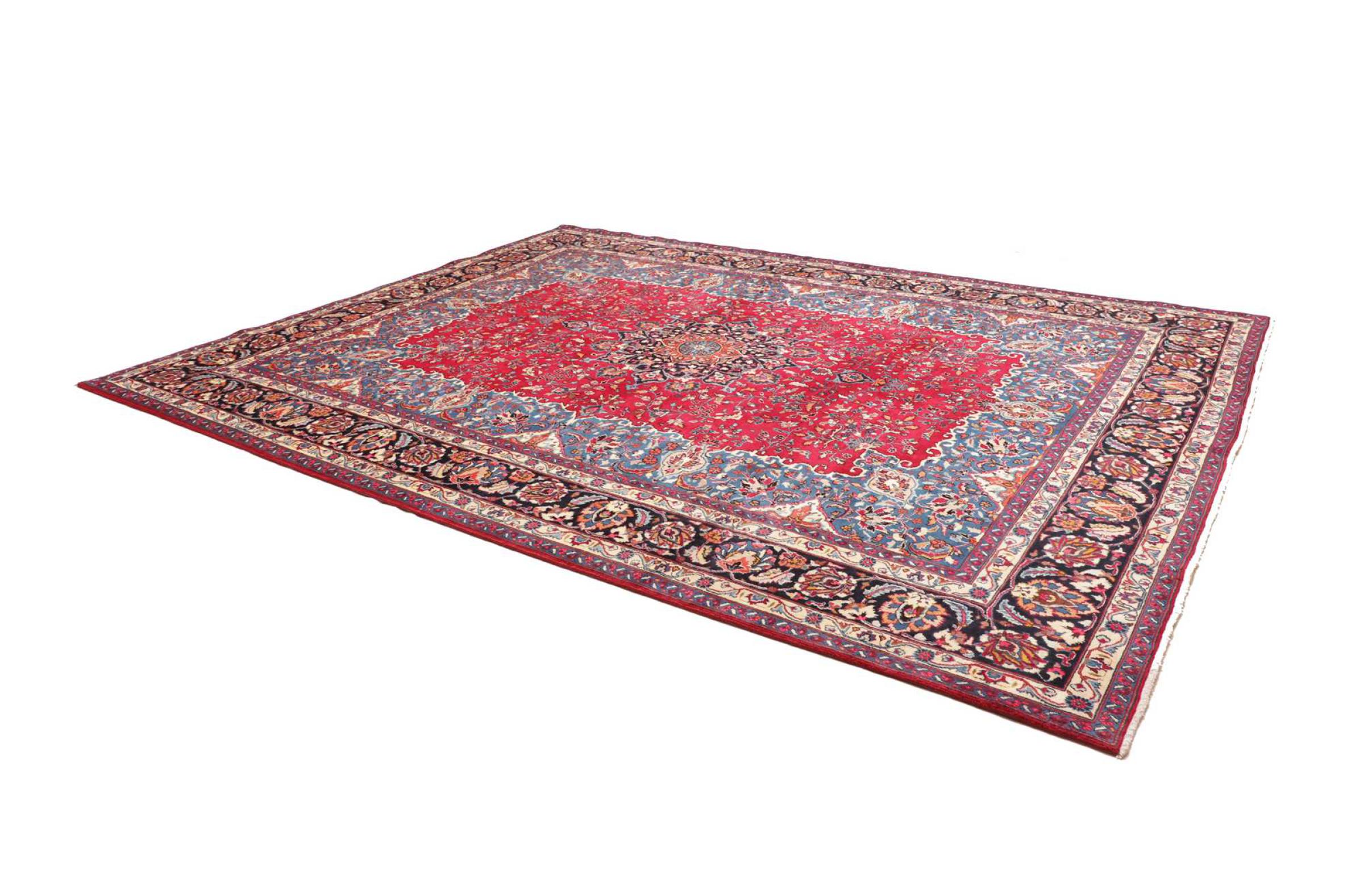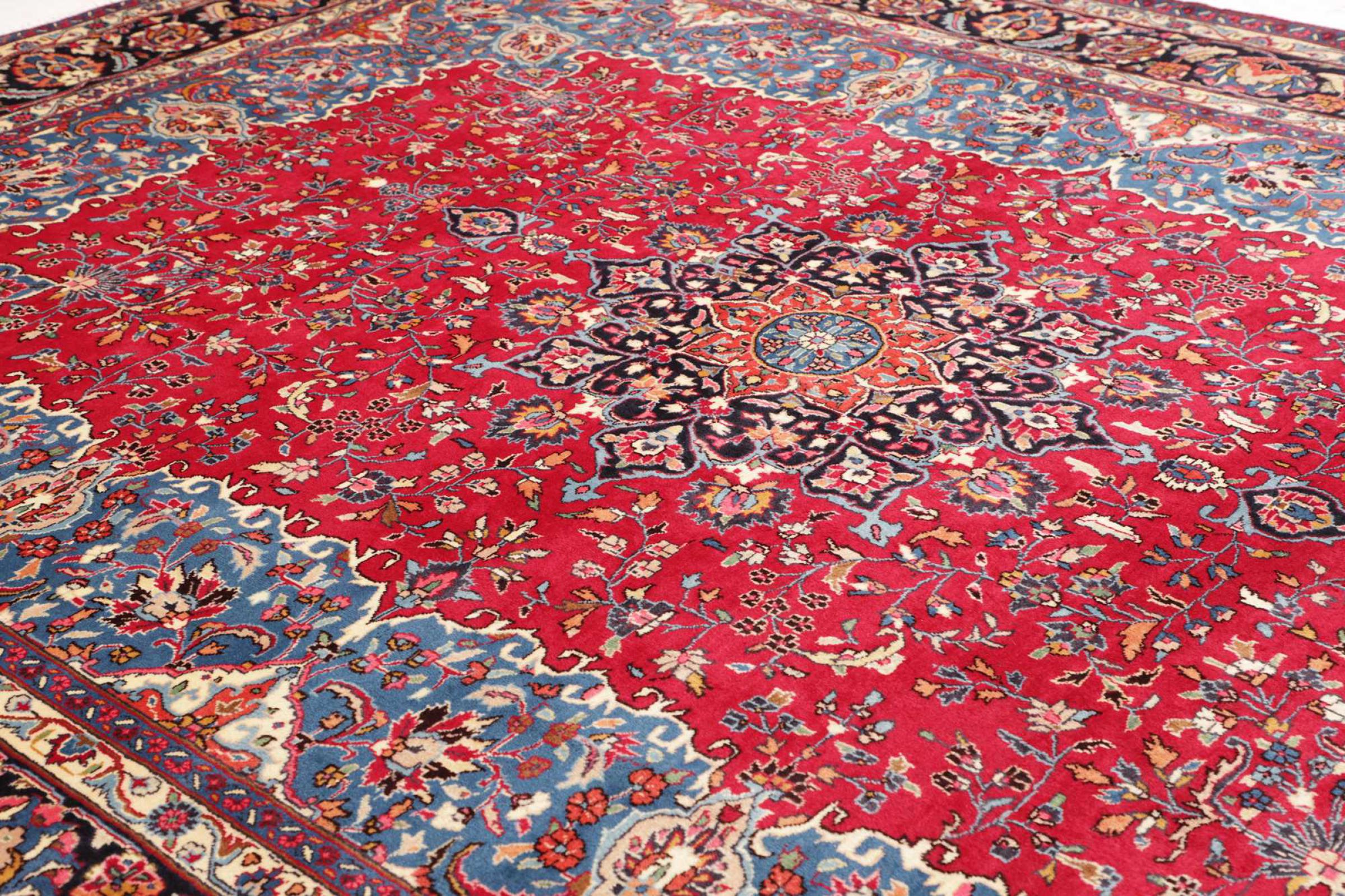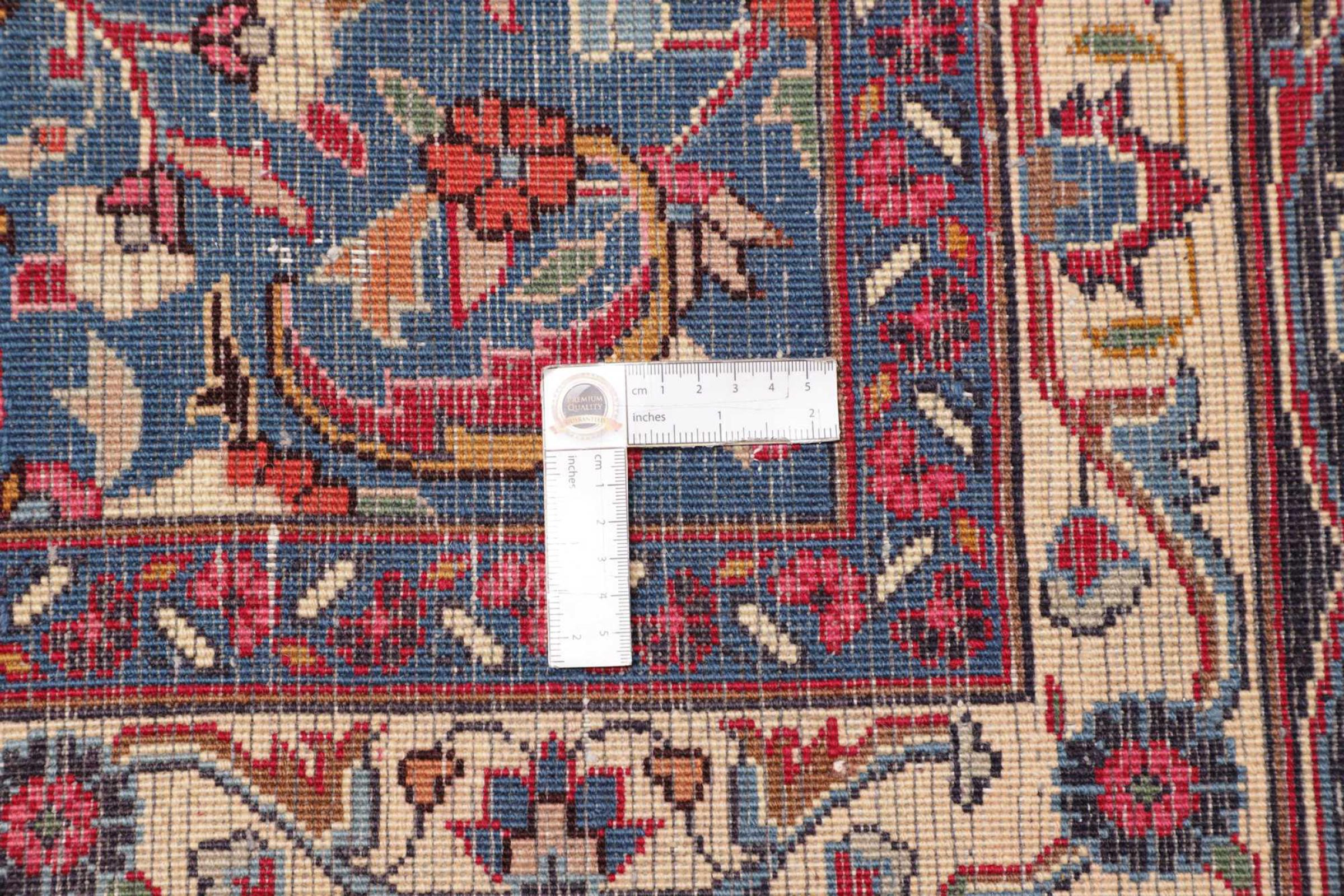 Réf. Article: 306238005411402 Taille: 385x297 cm Épaisseur: ap. 12 mm Densité de nouage: 128 000 - 160 000 / m² Fabrication: Noué à la main Velours: Laine filée à la main Chaîne: Coton Origine: Persie / Iran Âge: Nouveau Poids: ap. 40 kg Également connu sous Maschad, Meshed Nombre en stock: Unique - Seulement 1 en stock