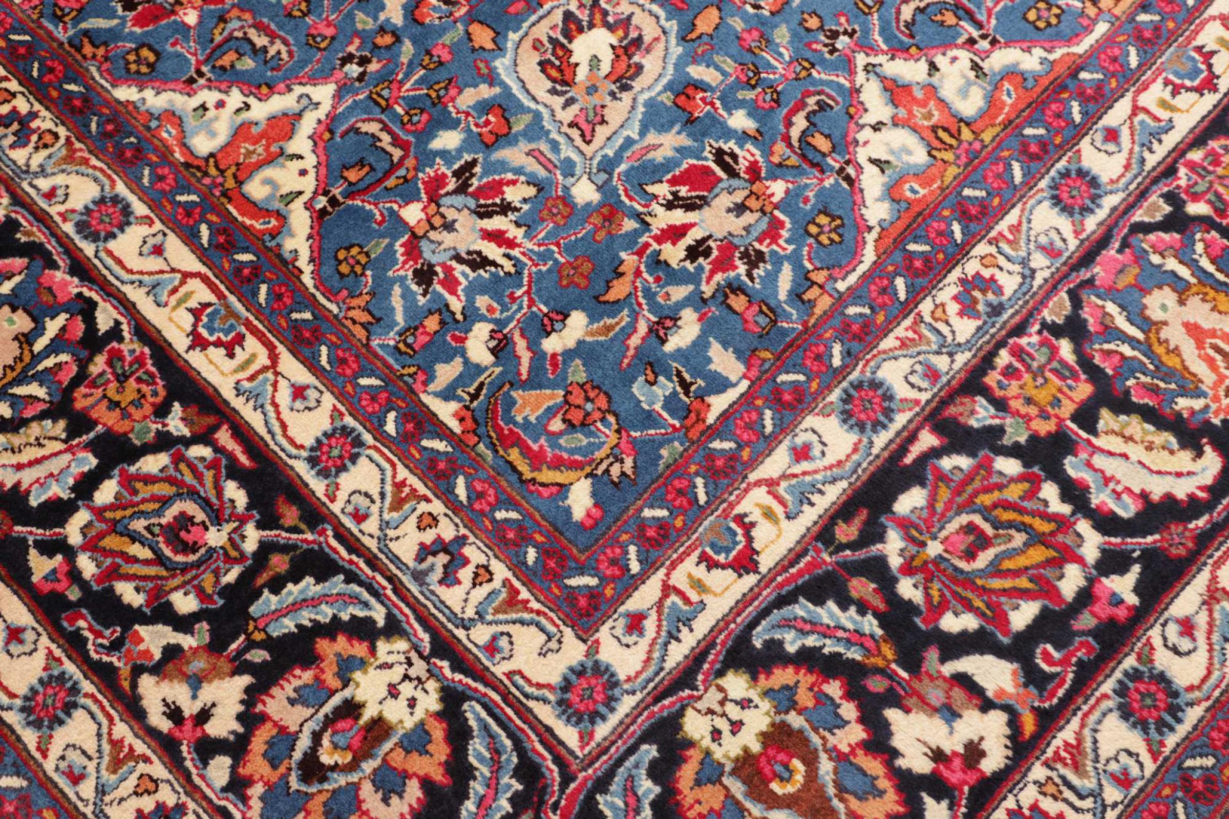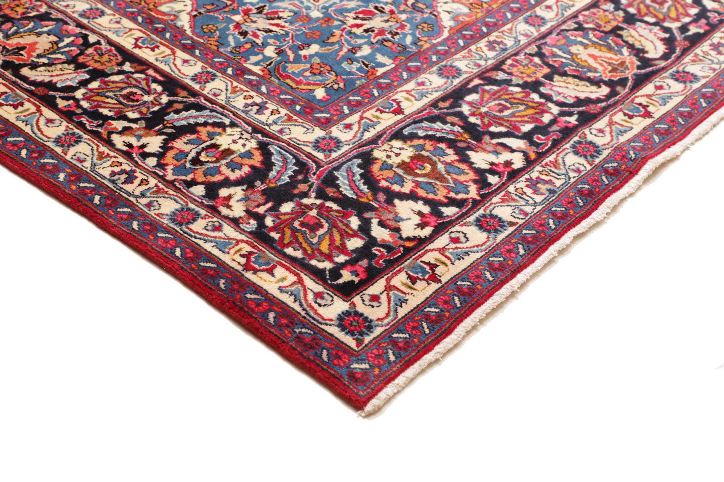 Ce tapis de Mashhad embellit votre maison. Ce tapis persan est noué à la main à Mashhad, une des plus grandes villes d’Iran.