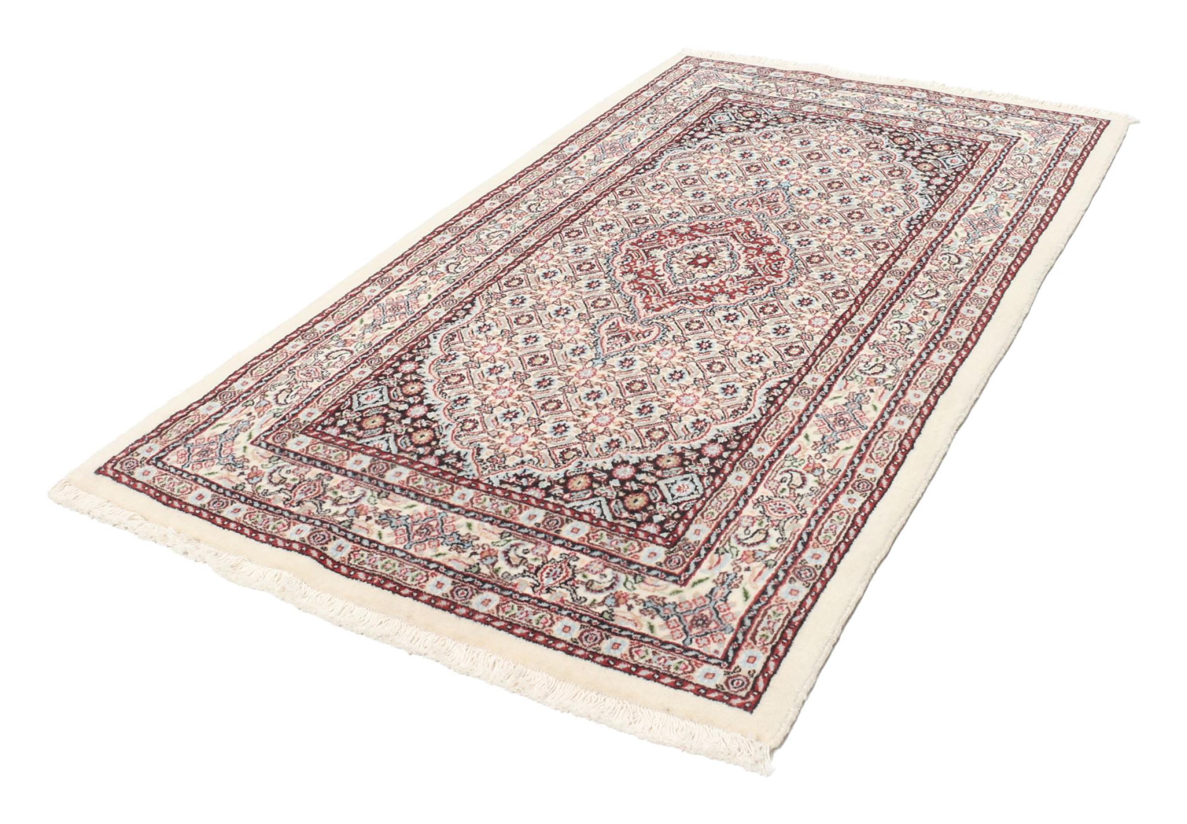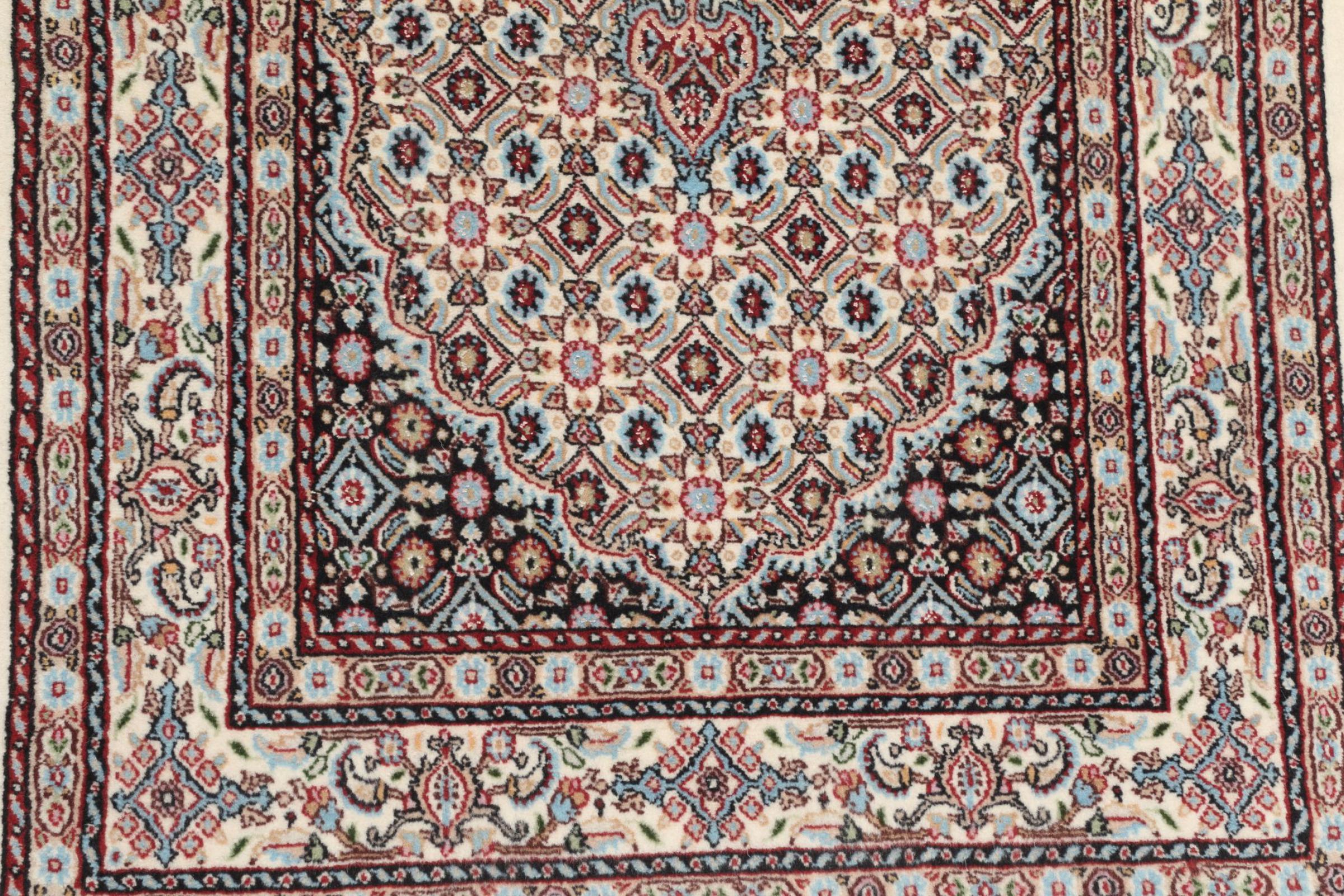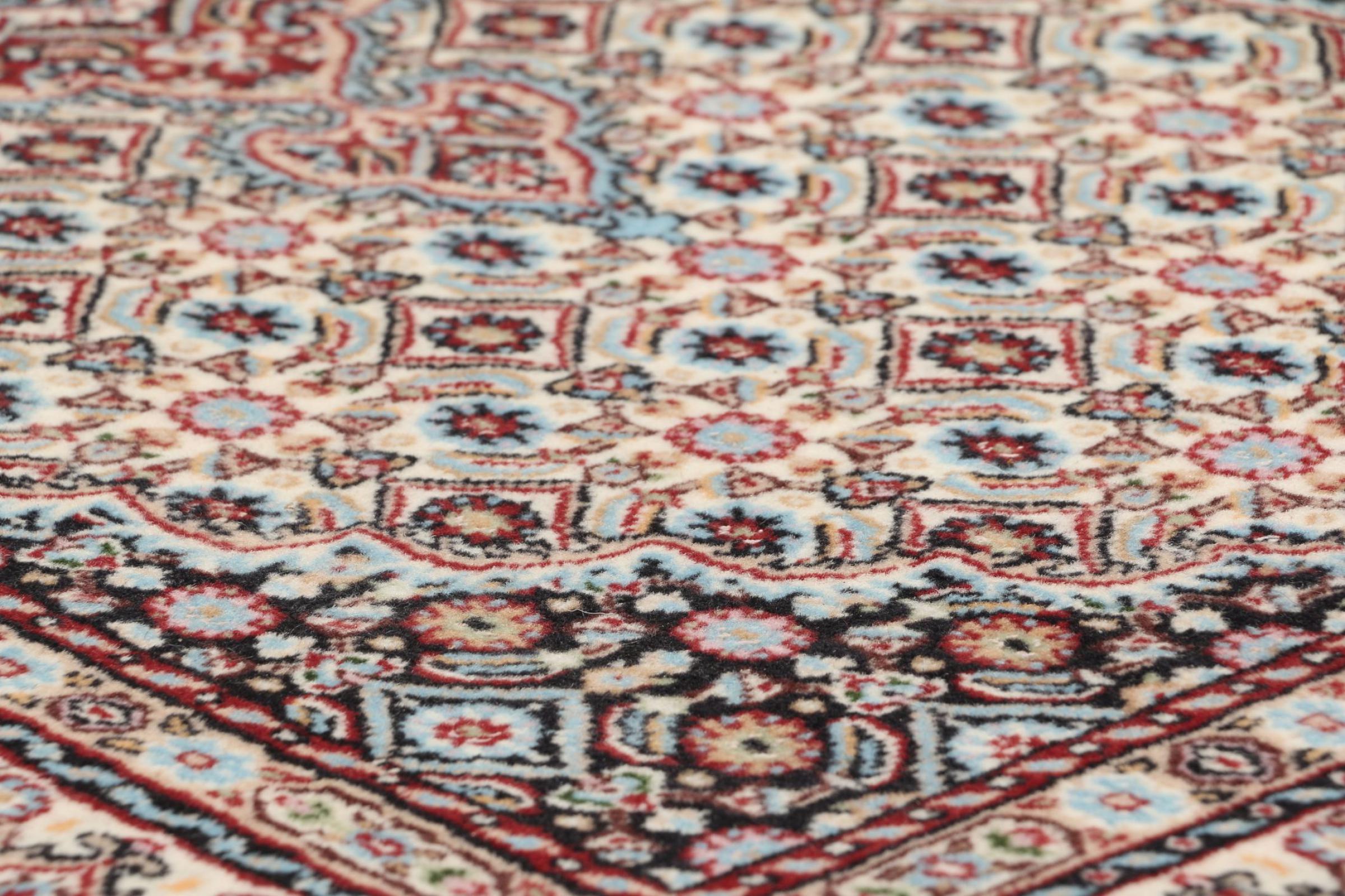 Moud est en Iran, au sud de Mashhad. En tant que ville de l'ancienne Perse, sa tradition de nouage de tapis remonte à plusieurs siècles, voire à des milliers d'années. Les tapis noués à la main de Moud jouissent d'une excellente réputation. Ils sont faits avec le fameux nœud persan. En général, les tapis persans brumeux ont un motif de couverture complète. Le motif Jardin avec des motifs de jardins persans ou le motif Herati.
