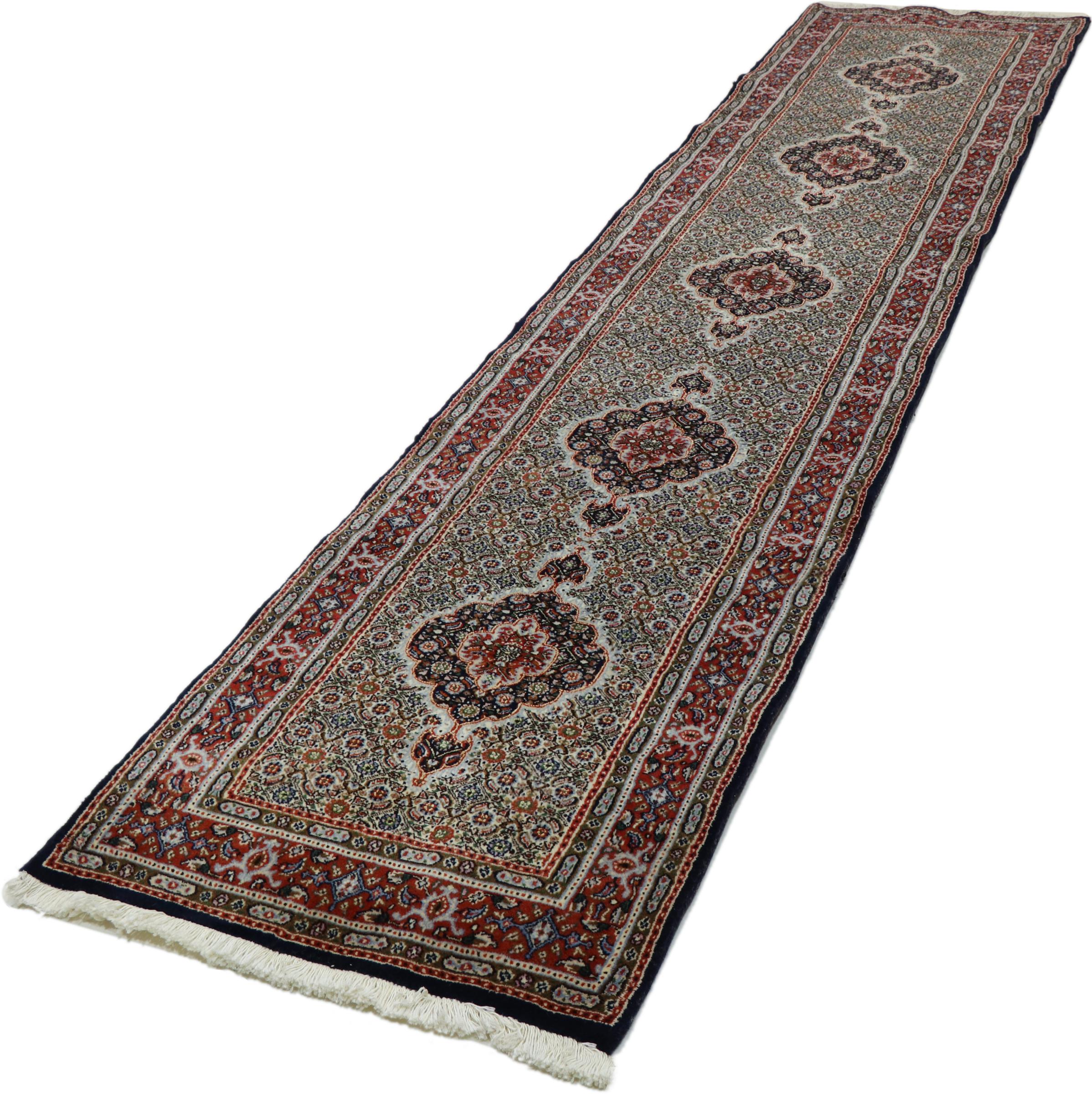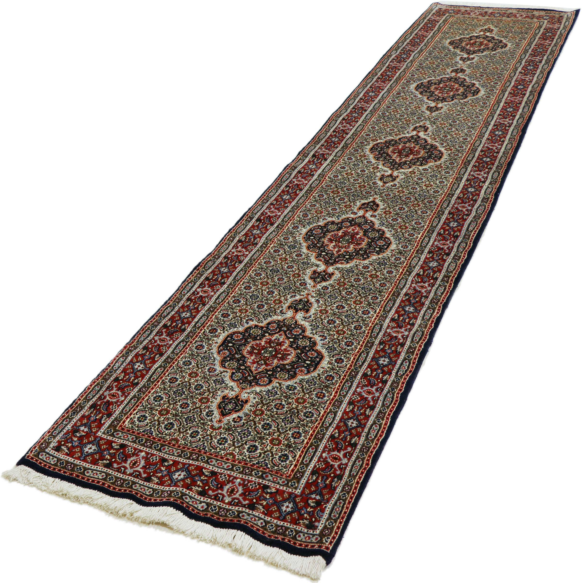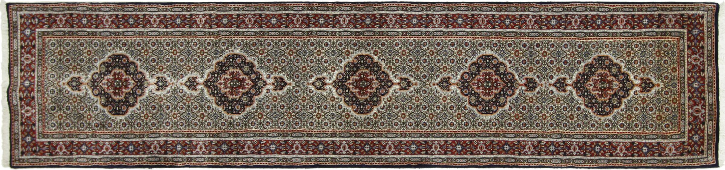 Réf. Article: 31336300915098 Taille: 344x81 cm Épaisseur: ap. 10 mm Densité de nouage: 320 000 - 360 000 / m² Fabrication: Noué à la main Velours: Laine avec de la soie Chaîne: Coton Origine: Persie / Iran Âge: Nouveau Poids: ap. 10 kg Nombre en stock: Unique - Seulement 1 en stock