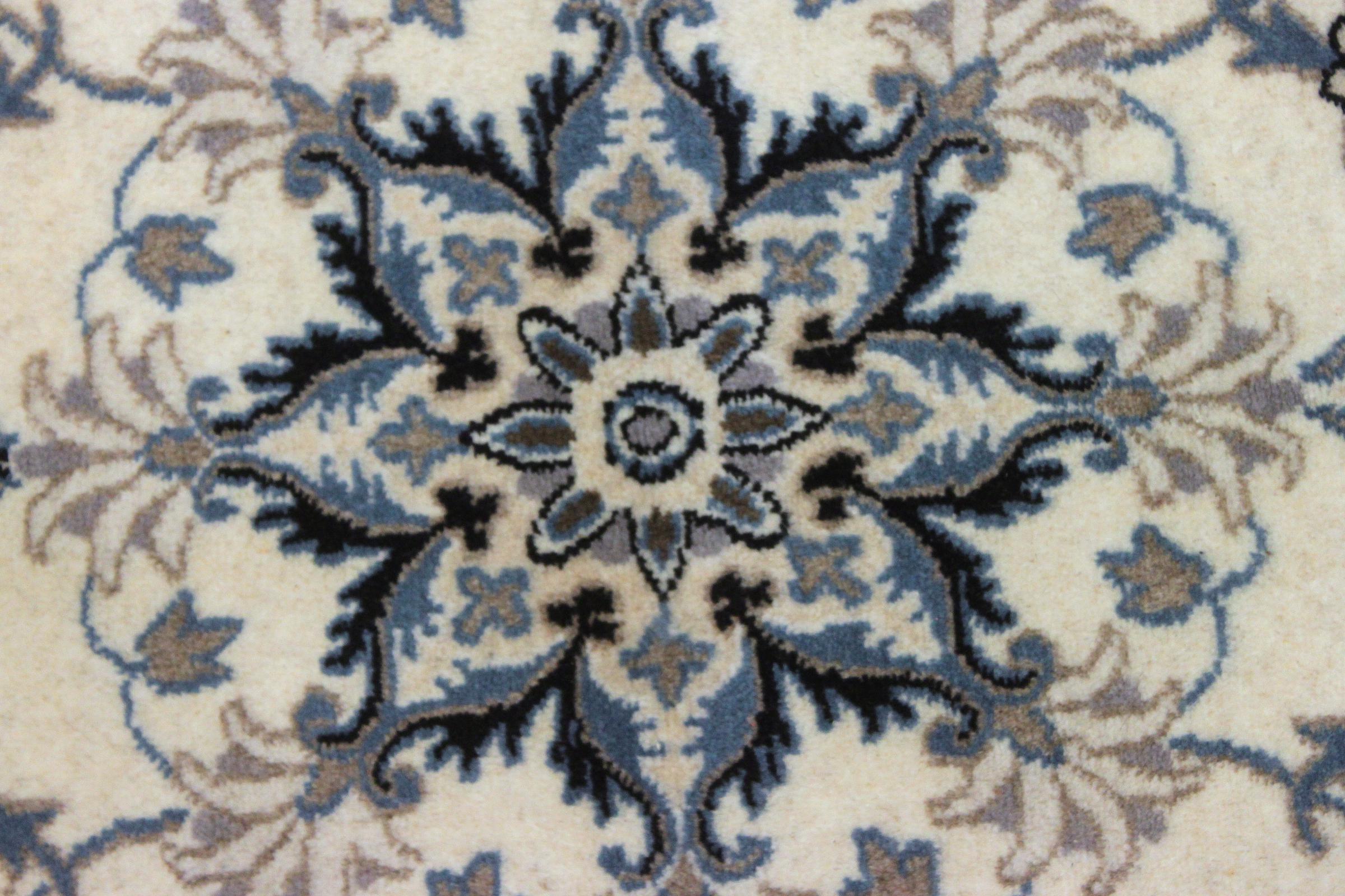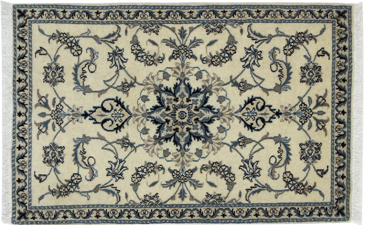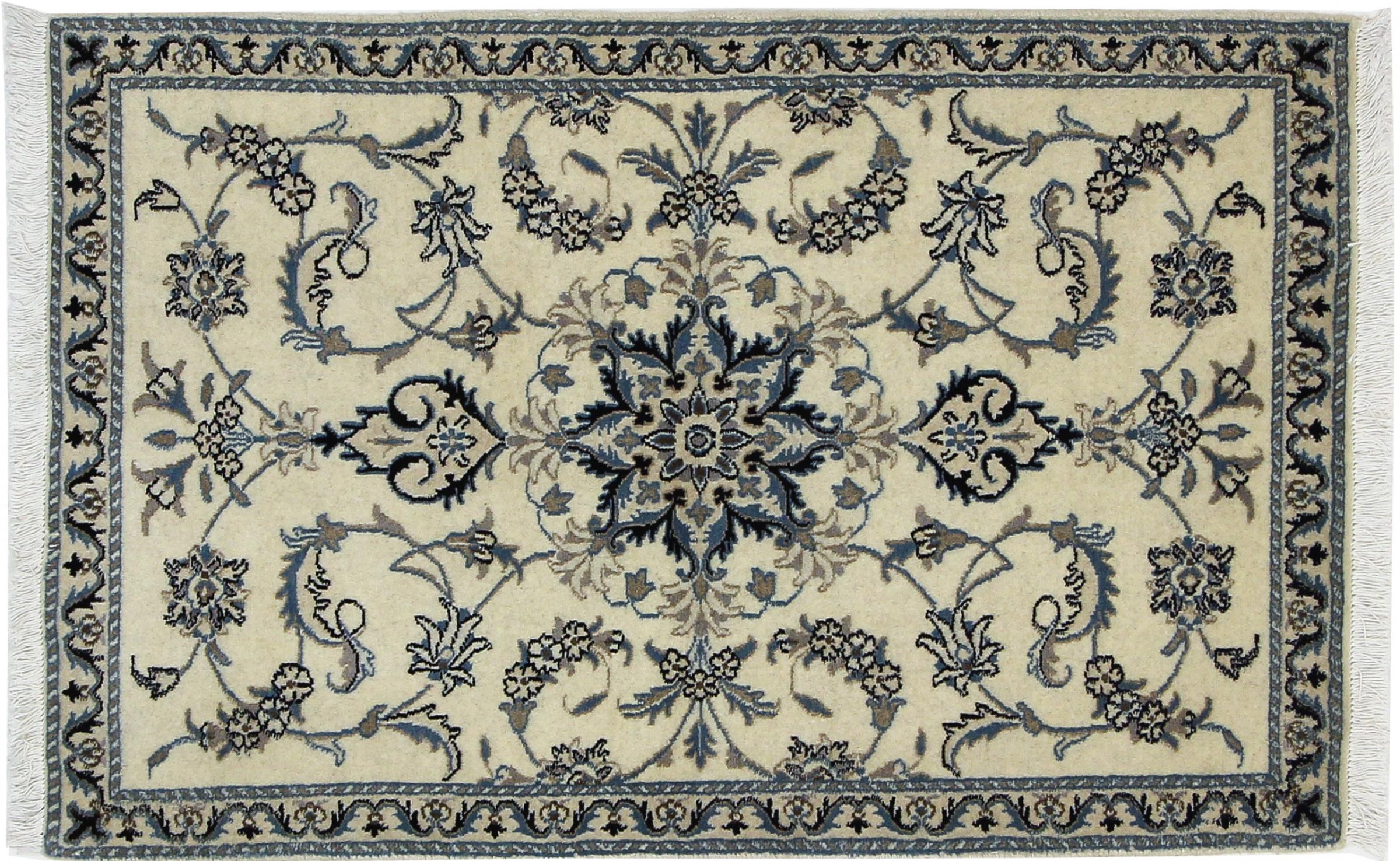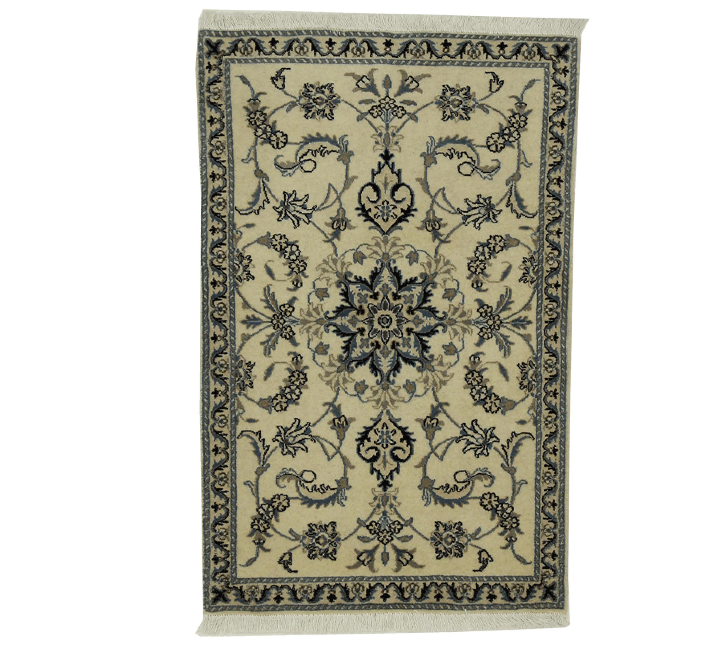 Les tapis de la ville de Nain, à la frontière de l'un des plus grands déserts d'Iran, comptent parmi les plus célèbres tapis persans du monde. Leur design typique est sans équivoque avec des ornements floraux, un médaillon central et des nuances de beige et de rouge ou de bleu. Grâce à leurs désignations 4La, 6La, 9La et 12La, les finesses d'un tapis Nain peuvent être vues d'un seul coup d'œil. Plus le chiffre "La" est bas, plus la densité des nœuds est élevée et donc plus le tapis est fin.