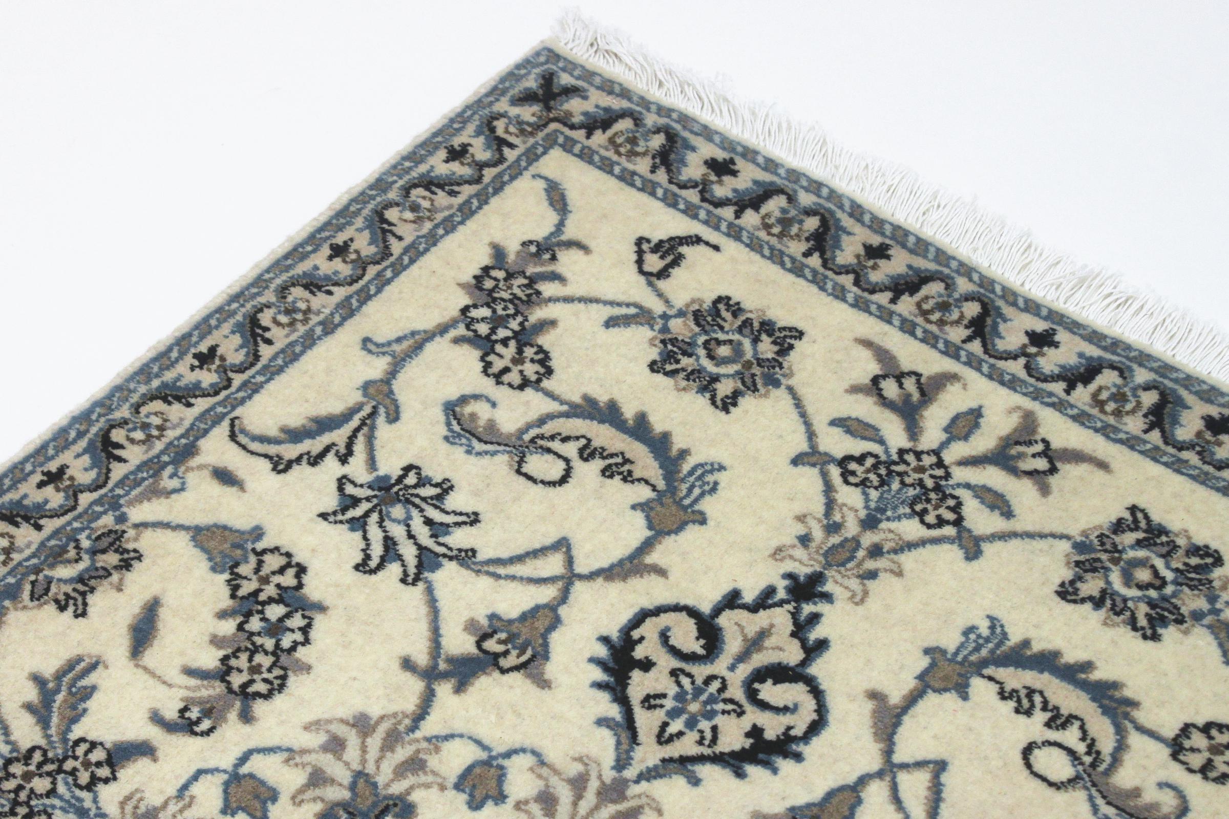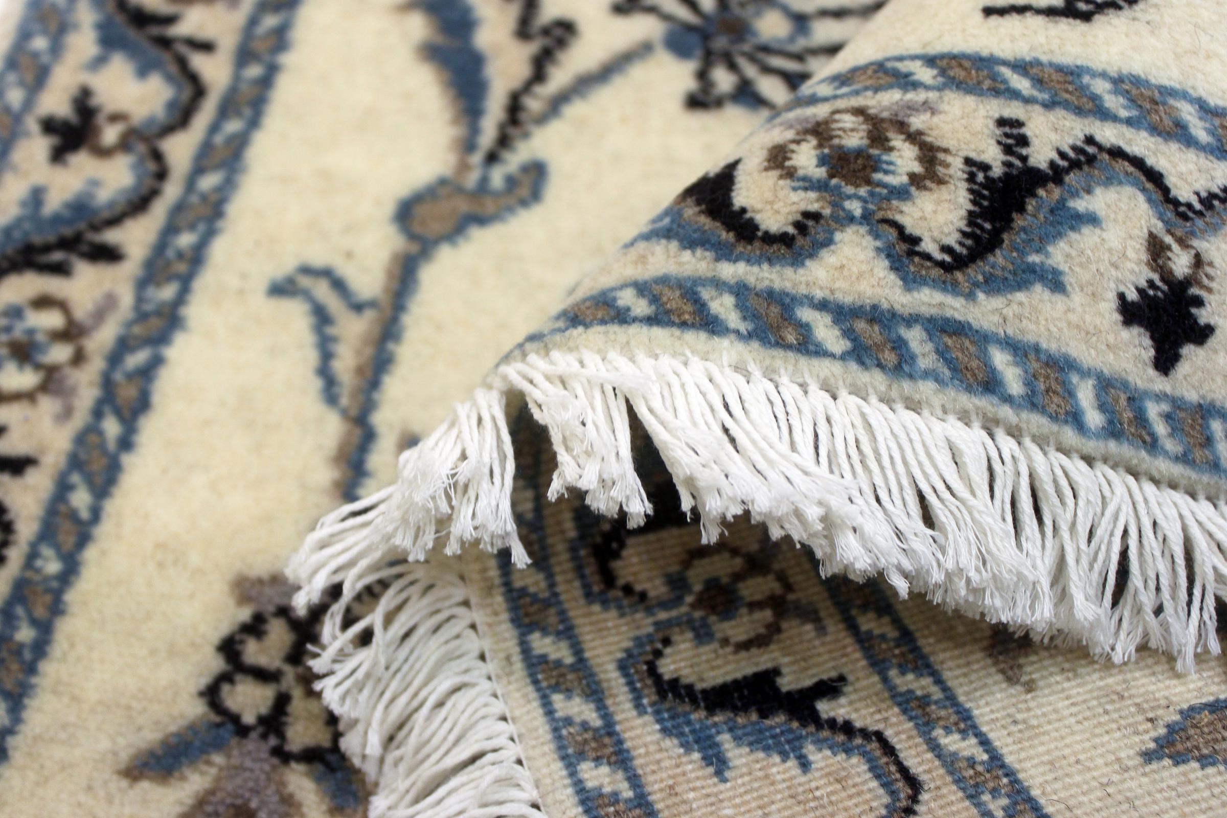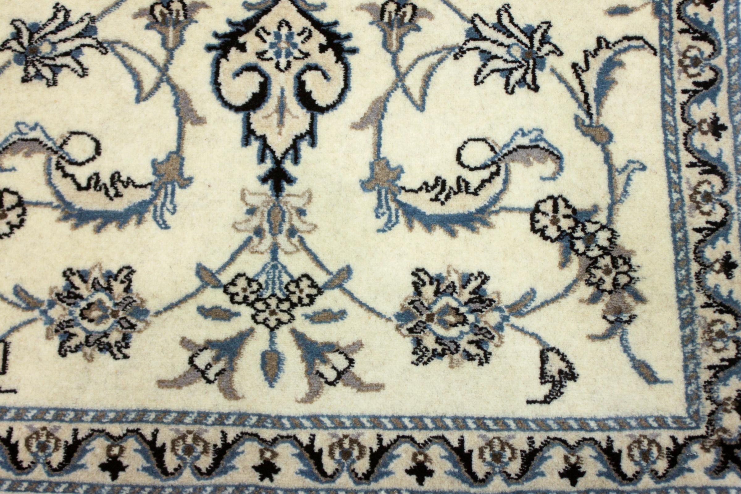 Les tapis de la ville de Nain, à la frontière de l'un des plus grands déserts d'Iran, comptent parmi les plus célèbres tapis persans du monde. Leur design typique est sans équivoque avec des ornements floraux, un médaillon central et des nuances de beige et de rouge ou de bleu. Grâce à leurs désignations 4La, 6La, 9La et 12La, les finesses d'un tapis Nain peuvent être vues d'un seul coup d'œil. Plus le chiffre "La" est bas, plus la densité des nœuds est élevée et donc plus le tapis est fin.