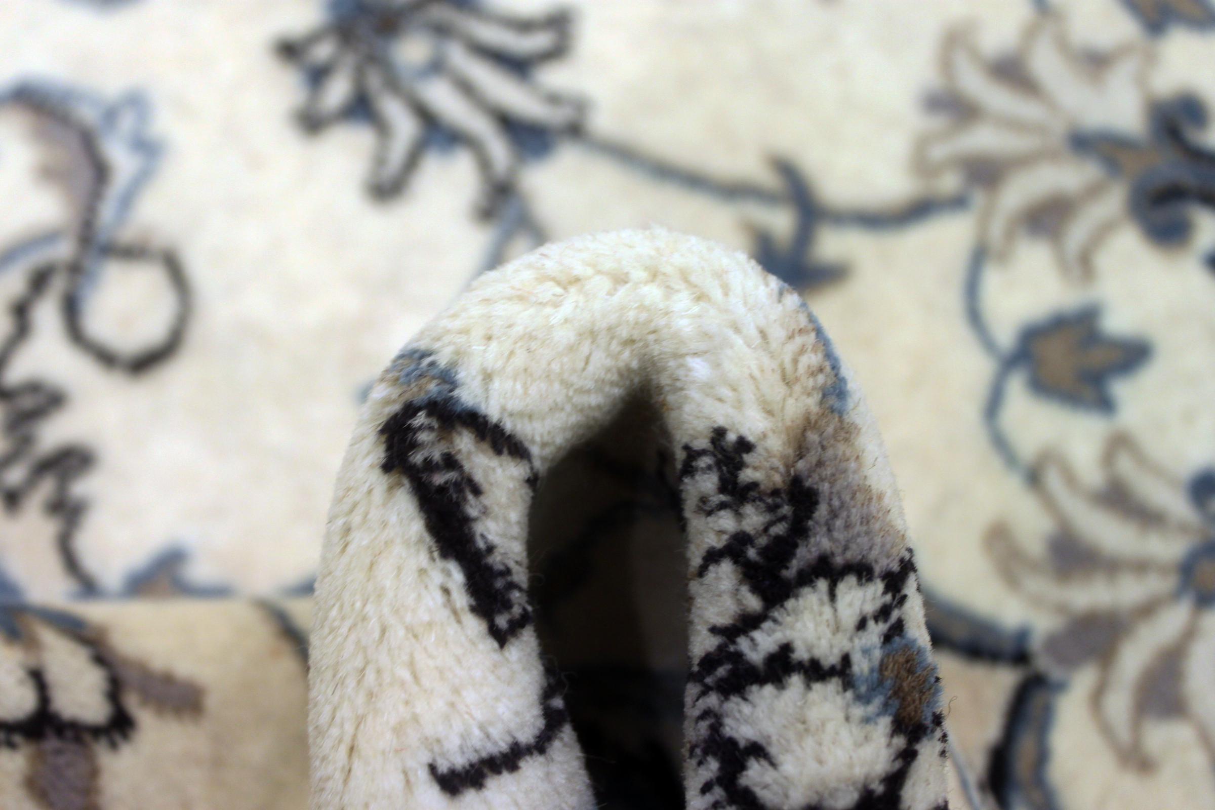 Ce tapis Nain appartient à la classe 12La. Il est élégant et précieux dans sa couleur typique des tapis Nain. Ce tapis persan a été tissé à la main dans la petite ville appelée Nain, qui réside près de la frontière ouest du désert Dascht – e – Kavir, à partir de laine de qualité supérieure et de soie naturelle.