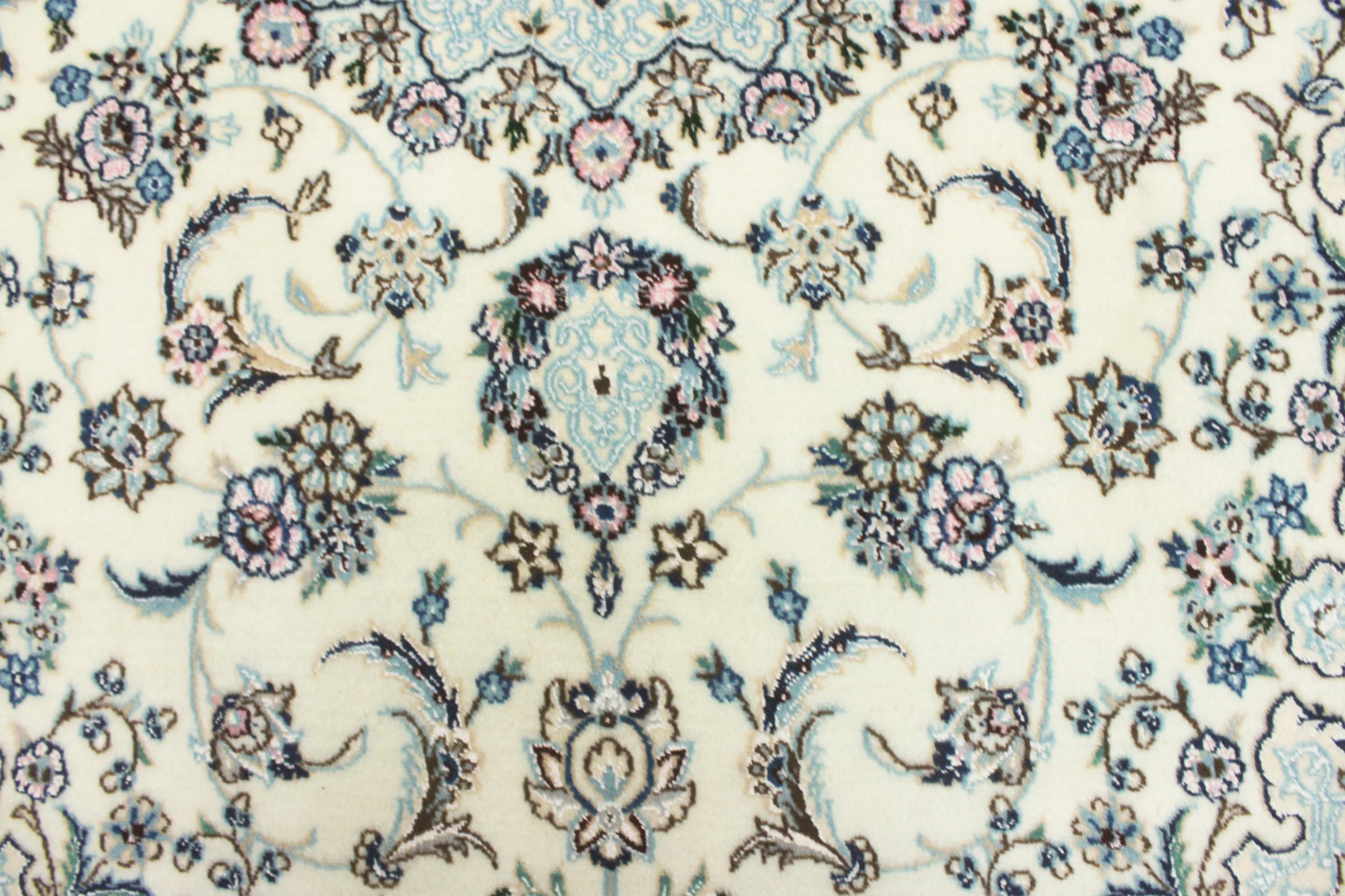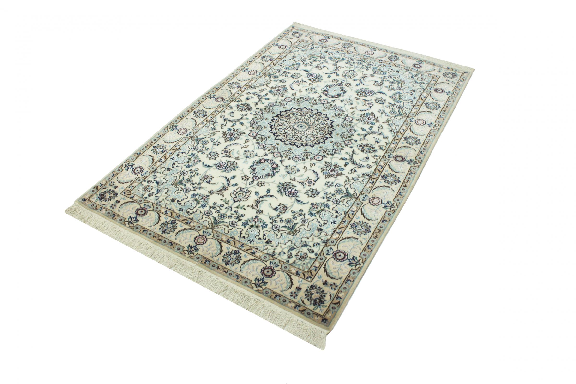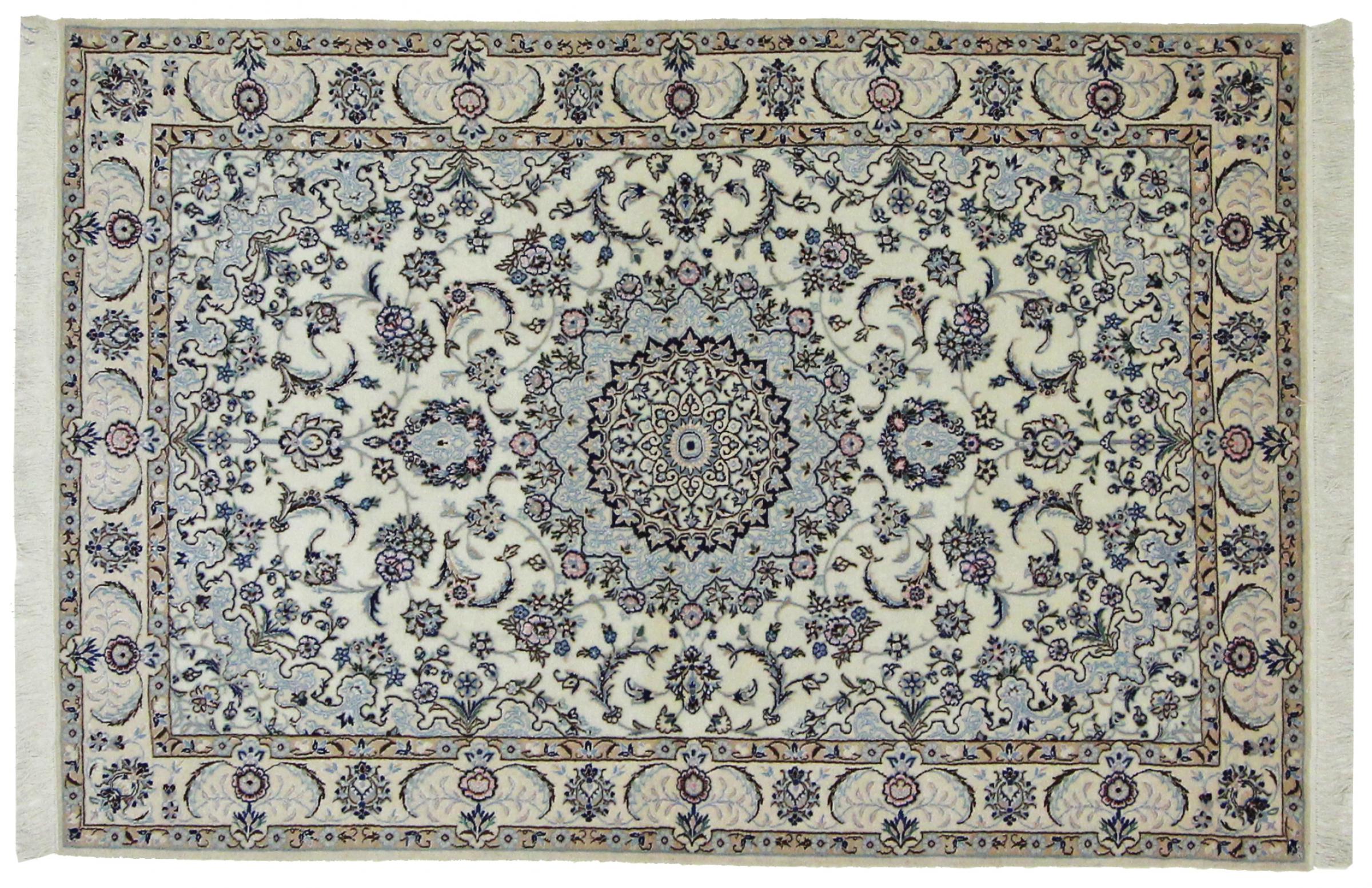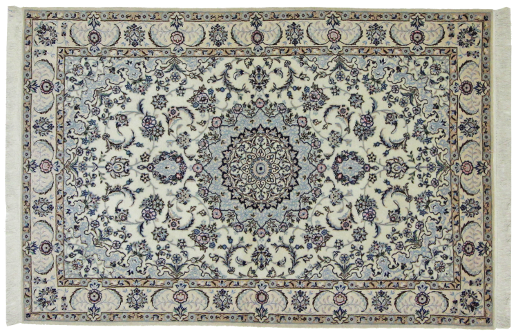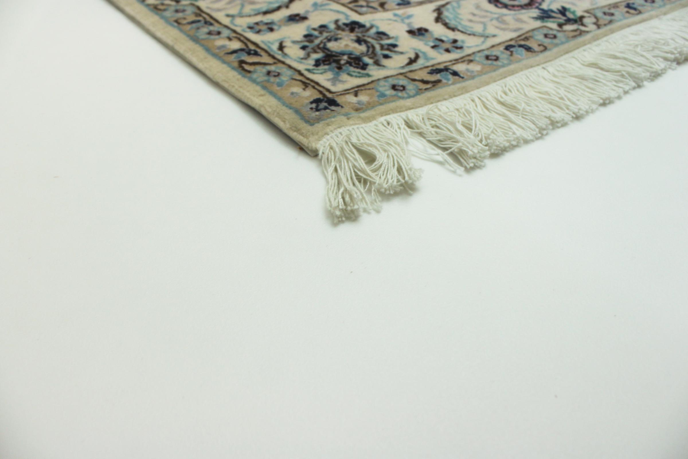 Les tapis de la ville de Nain, à la frontière de l'un des plus grands déserts d'Iran, comptent parmi les plus célèbres tapis persans du monde. Leur design typique est sans équivoque avec des ornements floraux, un médaillon central et des nuances de beige et de rouge ou de bleu. Grâce à leurs désignations 4La, 6La, 9La et 12La, les finesses d'un tapis Nain peuvent être vues d'un seul coup d'œil. Plus le chiffre "La" est bas, plus la densité des nœuds est élevée et donc plus le tapis est fin.