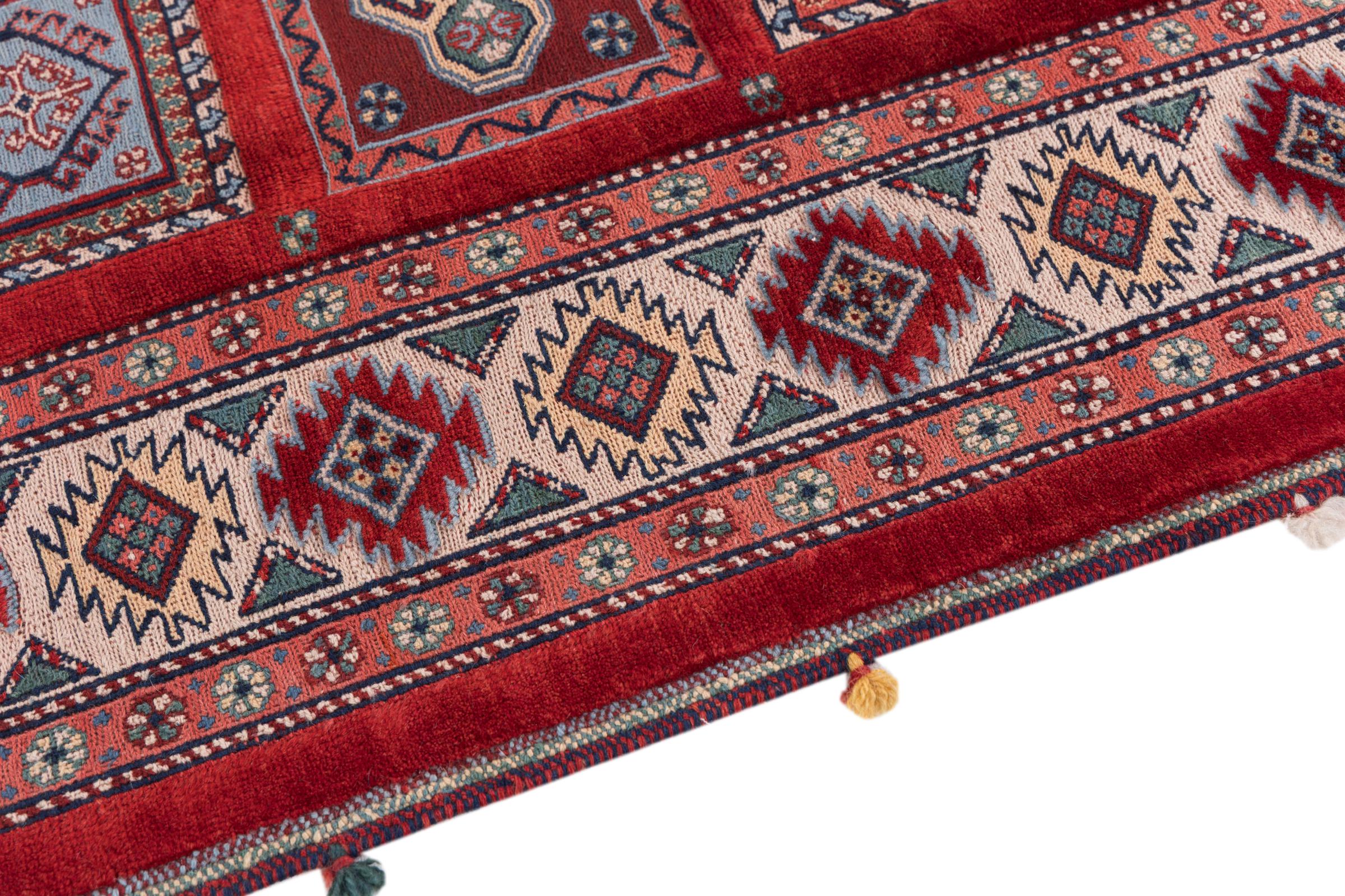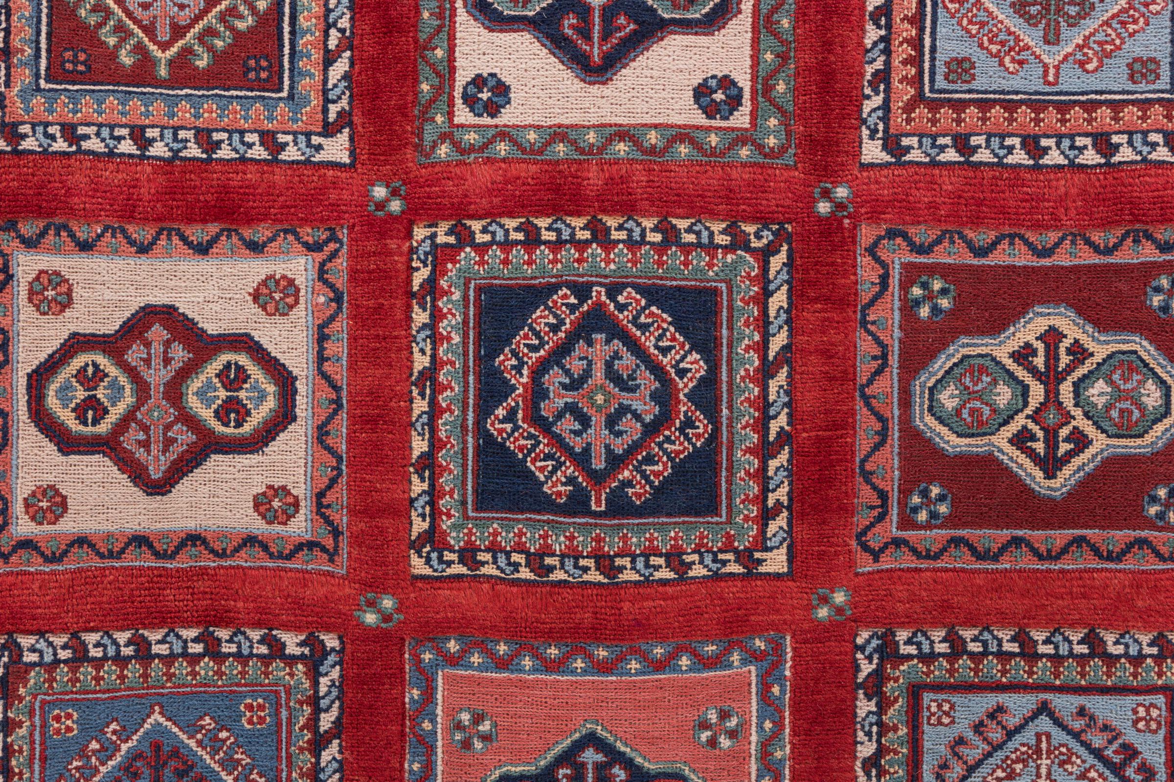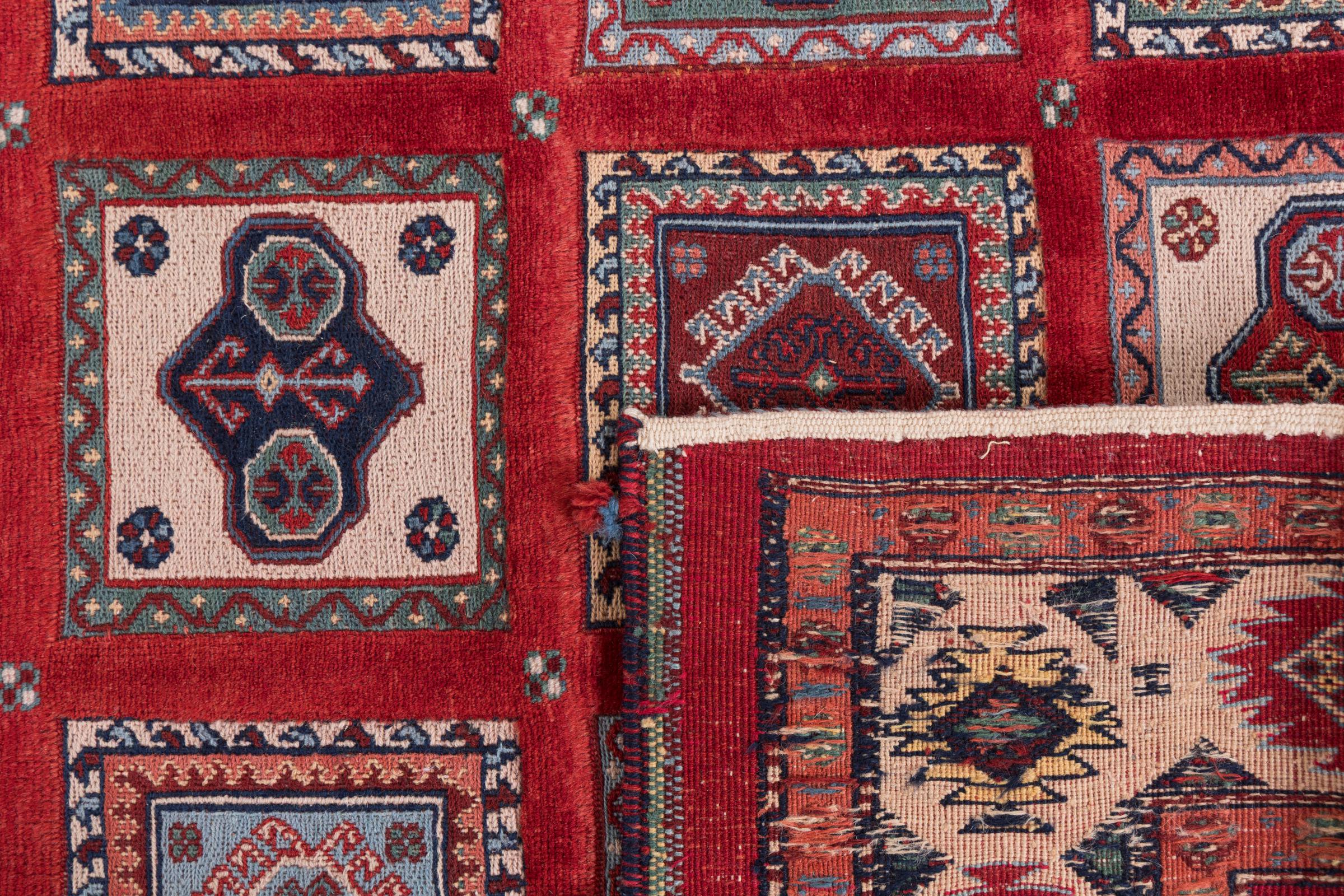Ce tapis Nimbaft noué à la main mais également tissé à la main est un parfait exemple de savoir-faire et de l’union de deux extrêmement différents processus de fabrication de tapis d’Orient.