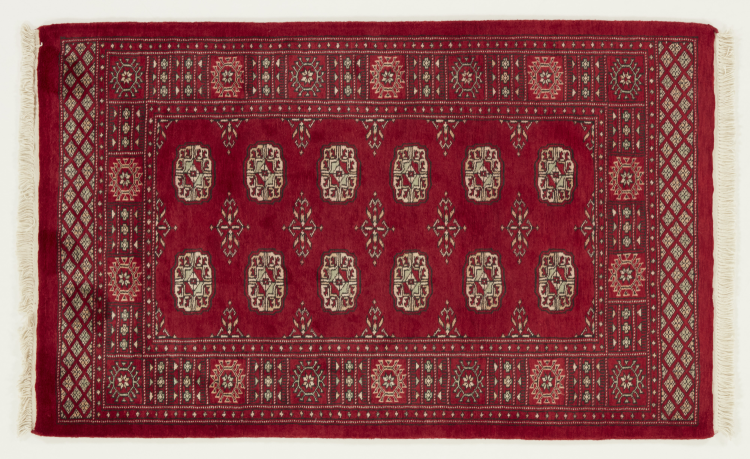 Une grande partie de la production pakistanaise de tapis a lieu dans et autour des villes de Lahore et de Karachi. De nombreux noueurs de tapis de cette époque ont fui au Pakistan pendant la guerre avec l'Inde et s'y sont installés. Aujourd'hui, on connaît surtout les tapis noués à la main du Pakistan Bukhara. Tout comme les tapis orientaux afghans, les tapis pakistanais sont également de couleur sombre et ont pour la plupart des tons rouges. On retrouve également le motif bien connu de la patte d'éléphant (motif octogonal répétitif) sur un Pakistanais.