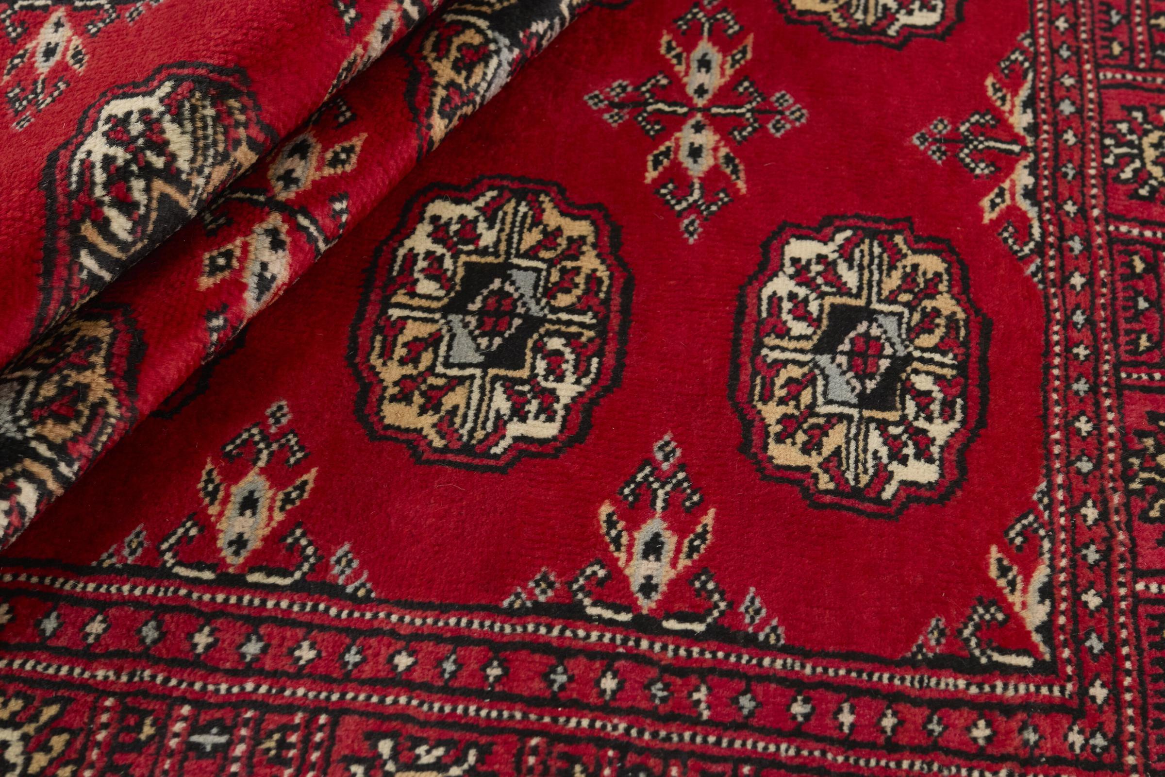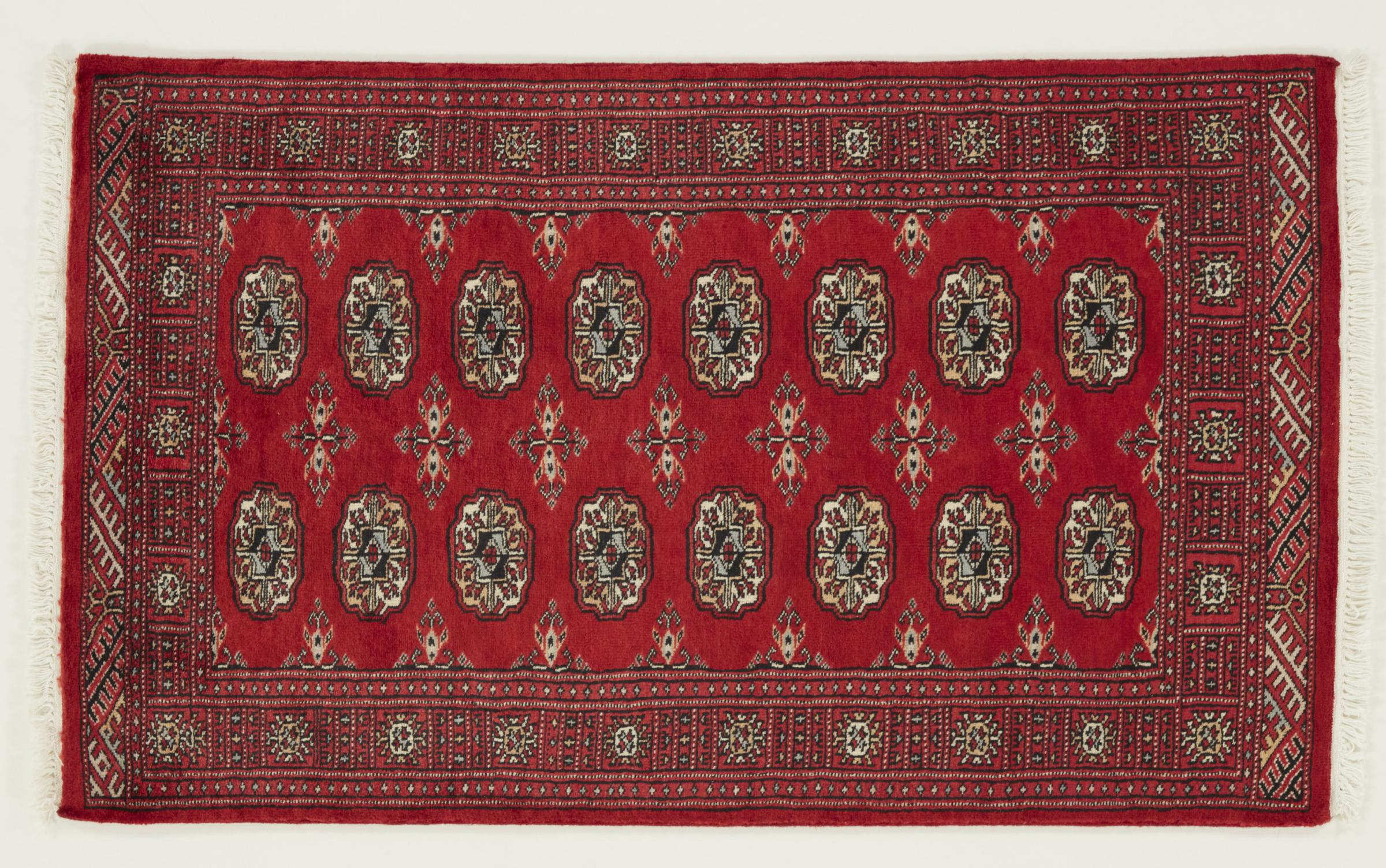 Une grande partie de la production pakistanaise de tapis a lieu dans et autour des villes de Lahore et de Karachi. De nombreux noueurs de tapis de cette époque ont fui au Pakistan pendant la guerre avec l'Inde et s'y sont installés. Aujourd'hui, on connaît surtout les tapis noués à la main du Pakistan Bukhara. Tout comme les tapis orientaux afghans, les tapis pakistanais sont également de couleur sombre et ont pour la plupart des tons rouges. On retrouve également le motif bien connu de la patte d'éléphant (motif octogonal répétitif) sur un Pakistanais.