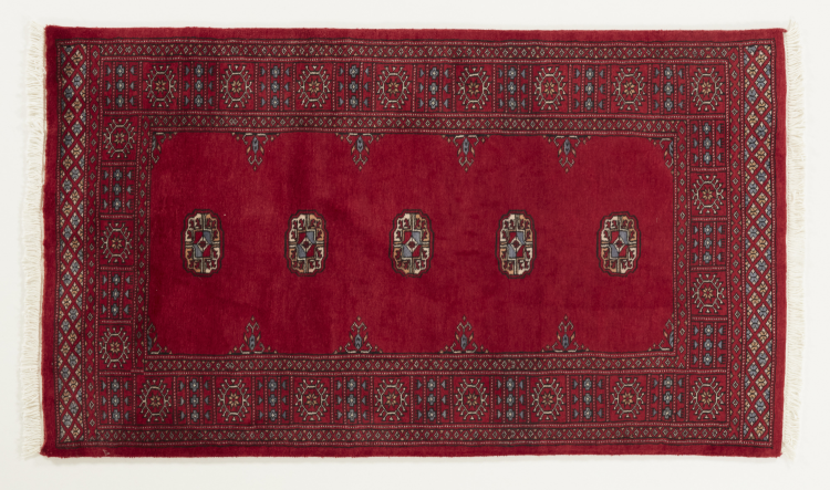 Une grande partie de la production pakistanaise de tapis a lieu dans et autour des villes de Lahore et de Karachi. De nombreux noueurs de tapis de cette époque ont fui au Pakistan pendant la guerre avec l'Inde et s'y sont installés. Aujourd'hui, on connaît surtout les tapis noués à la main du Pakistan Bukhara. Tout comme les tapis orientaux afghans, les tapis pakistanais sont également de couleur sombre et ont pour la plupart des tons rouges. On retrouve également le motif bien connu de la patte d'éléphant (motif octogonal répétitif) sur un Pakistanais.