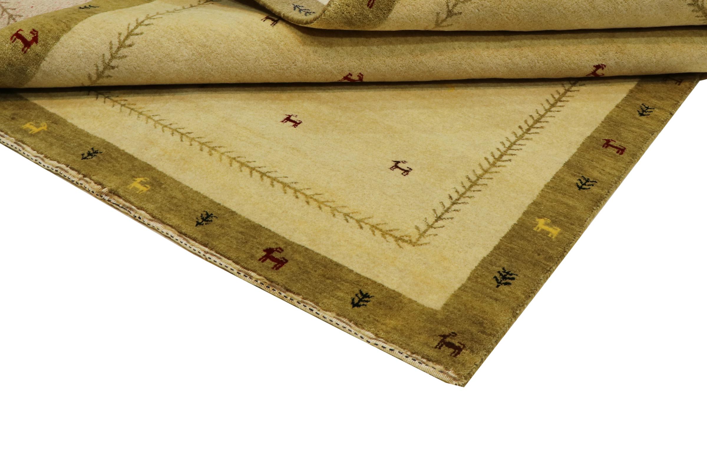 Ce magnifique tapis est un Gabbeh persan et fait donc partie des tapis Gabbeh de la plus haute qualité. Les tapis sont noués par des nomades ou des semi-nomades en Iran selon un savoir-faire traditionnel. Les motifs simples sont pour la plupart inspirés par l'environnement local des nomades. Par exemple, on peut trouver des chameaux, des arbres ou des buissons sur les tapis traditionnels. Les tapis de Gabbeh persan sont faits de laine provenant de troupeaux de moutons élevés localement. La laine est donc encore en grande partie filée à la main. Ainsi, chacun de ces tapis orientaux incarne un caractère unique de culture ancienne.