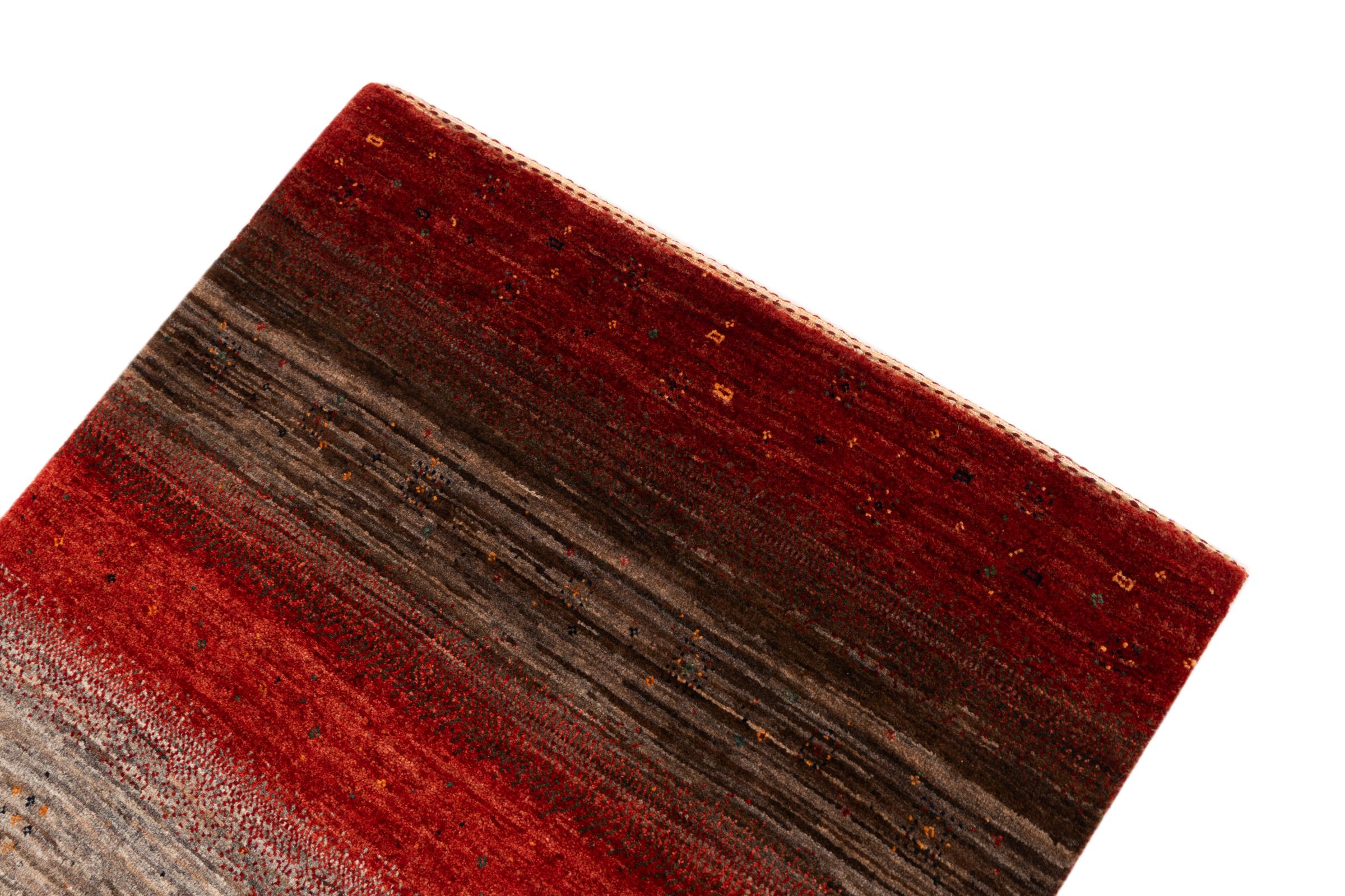Ce magnifique tapis est un Gabbeh persan et fait donc partie des tapis Gabbeh de la plus haute qualité. Les tapis sont noués par des nomades ou des semi-nomades en Iran selon un savoir-faire traditionnel. Les motifs simples sont pour la plupart inspirés par l'environnement local des nomades. Par exemple, on peut trouver des chameaux, des arbres ou des buissons sur les tapis traditionnels. Les tapis de Gabbeh persan sont faits de laine provenant de troupeaux de moutons élevés localement. La laine est donc encore en grande partie filée à la main. Ainsi, chacun de ces tapis orientaux incarne un caractère unique de culture ancienne.