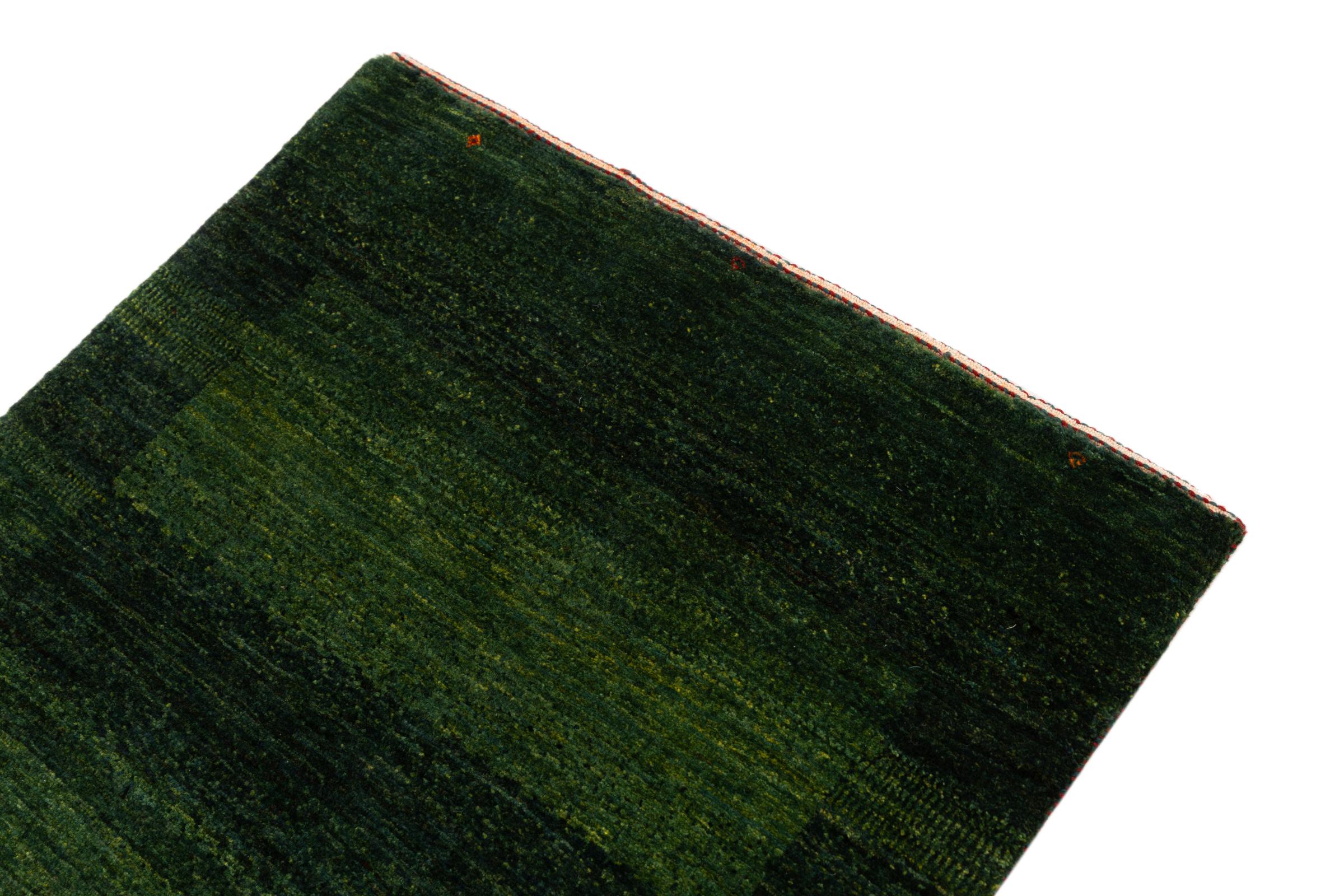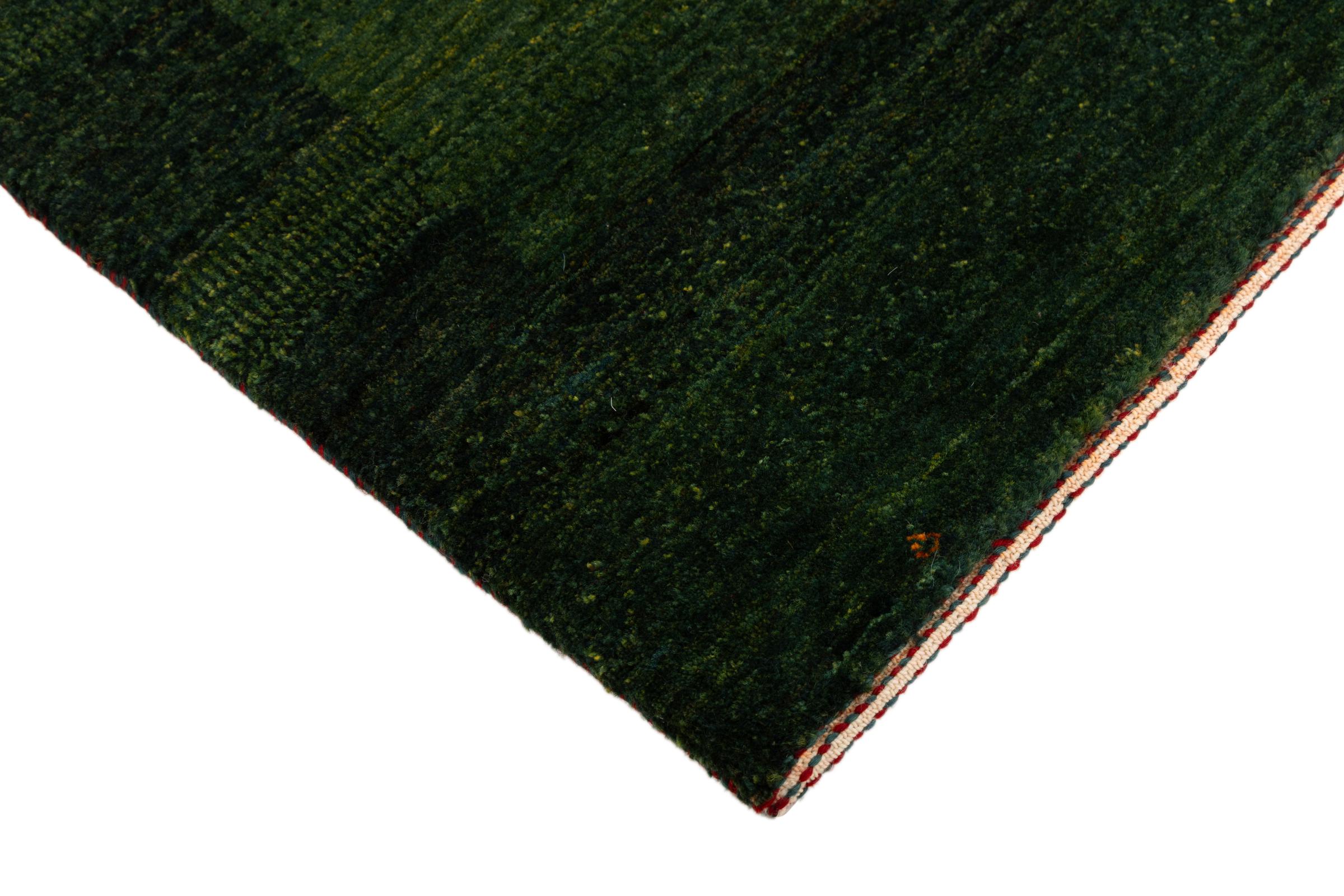 Ce magnifique tapis est un Gabbeh persan et fait donc partie des tapis Gabbeh de la plus haute qualité. Les tapis sont noués par des nomades ou des semi-nomades en Iran selon un savoir-faire traditionnel. Les motifs simples sont pour la plupart inspirés par l'environnement local des nomades. Par exemple, on peut trouver des chameaux, des arbres ou des buissons sur les tapis traditionnels. Les tapis de Gabbeh persan sont faits de laine provenant de troupeaux de moutons élevés localement. La laine est donc encore en grande partie filée à la main. Ainsi, chacun de ces tapis orientaux incarne un caractère unique de culture ancienne.