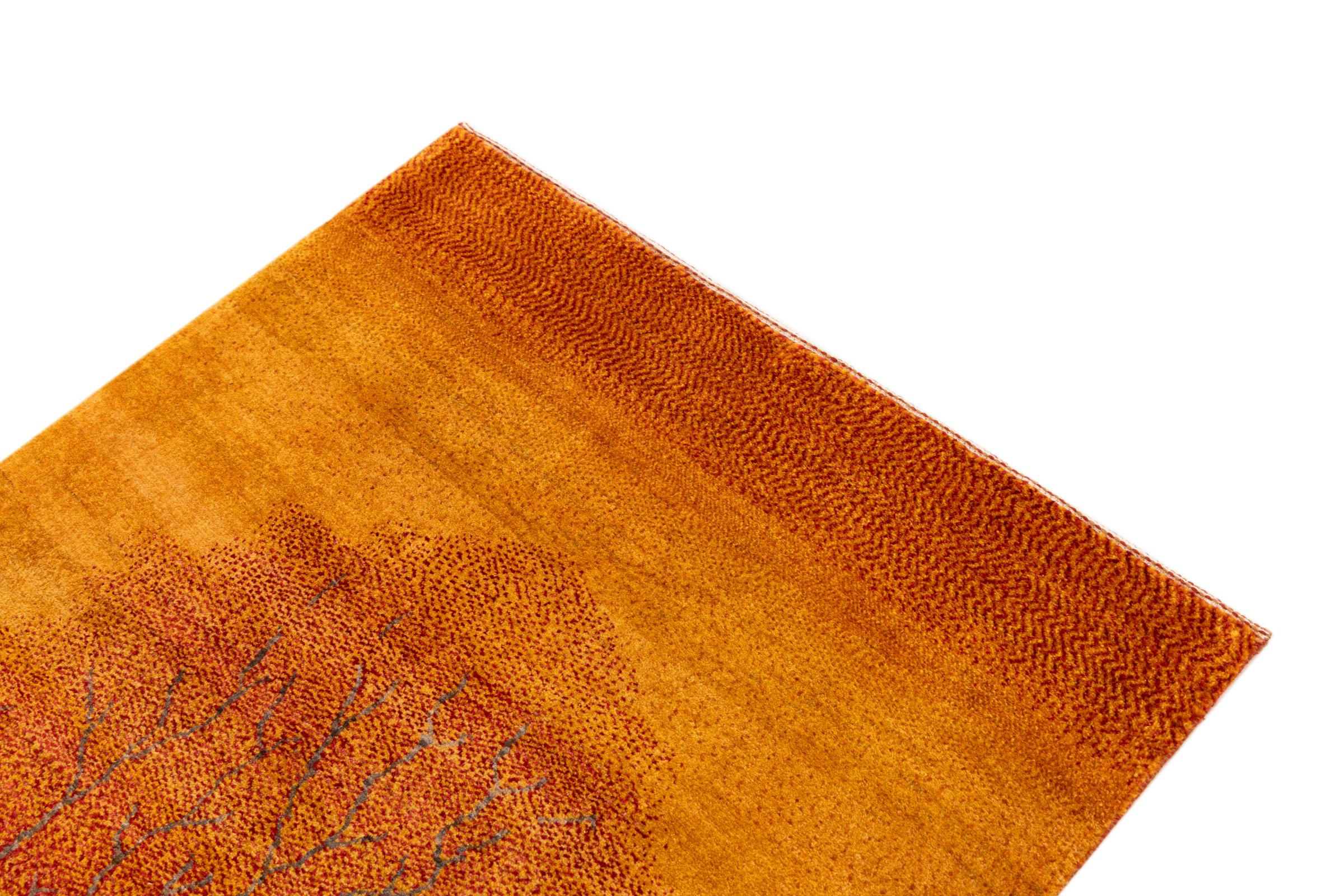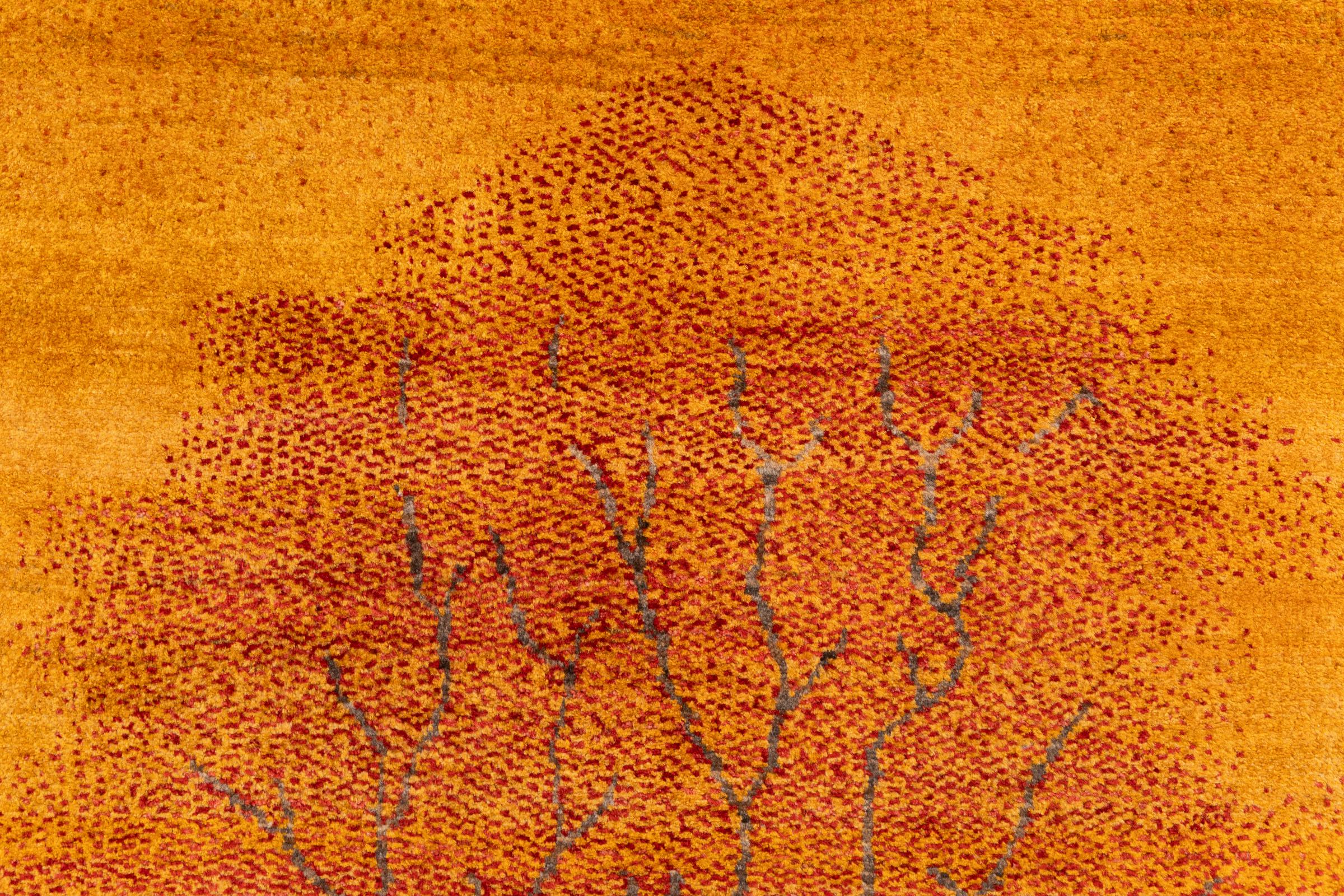 Ce magnifique tapis est un Gabbeh persan et fait donc partie des tapis Gabbeh de la plus haute qualité. Les tapis sont noués par des nomades ou des semi-nomades en Iran selon un savoir-faire traditionnel. Les motifs simples sont pour la plupart inspirés par l'environnement local des nomades. Par exemple, on peut trouver des chameaux, des arbres ou des buissons sur les tapis traditionnels. Les tapis de Gabbeh persan sont faits de laine provenant de troupeaux de moutons élevés localement. La laine est donc encore en grande partie filée à la main. Ainsi, chacun de ces tapis orientaux incarne un caractère unique de culture ancienne.