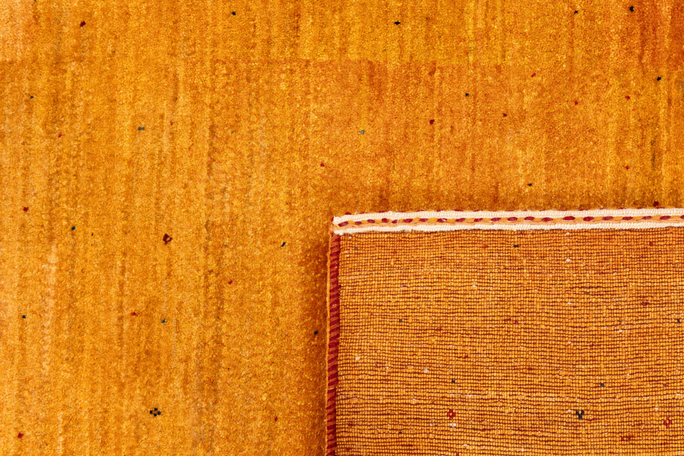 Ce magnifique tapis est un Gabbeh persan et fait donc partie des tapis Gabbeh de la plus haute qualité. Les tapis sont noués par des nomades ou des semi-nomades en Iran selon un savoir-faire traditionnel. Les motifs simples sont pour la plupart inspirés par l'environnement local des nomades. Par exemple, on peut trouver des chameaux, des arbres ou des buissons sur les tapis traditionnels. Les tapis de Gabbeh persan sont faits de laine provenant de troupeaux de moutons élevés localement. La laine est donc encore en grande partie filée à la main. Ainsi, chacun de ces tapis orientaux incarne un caractère unique de culture ancienne.