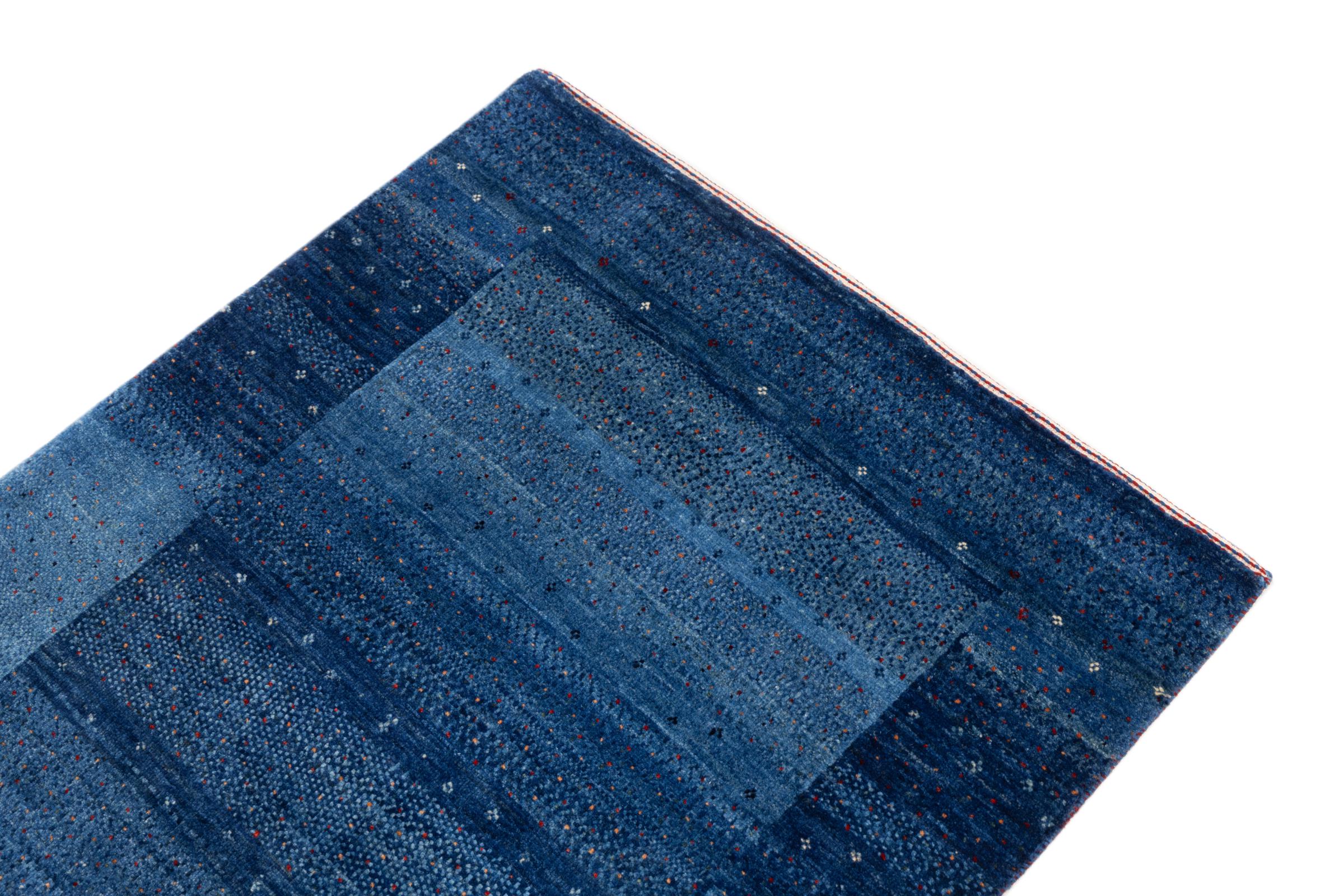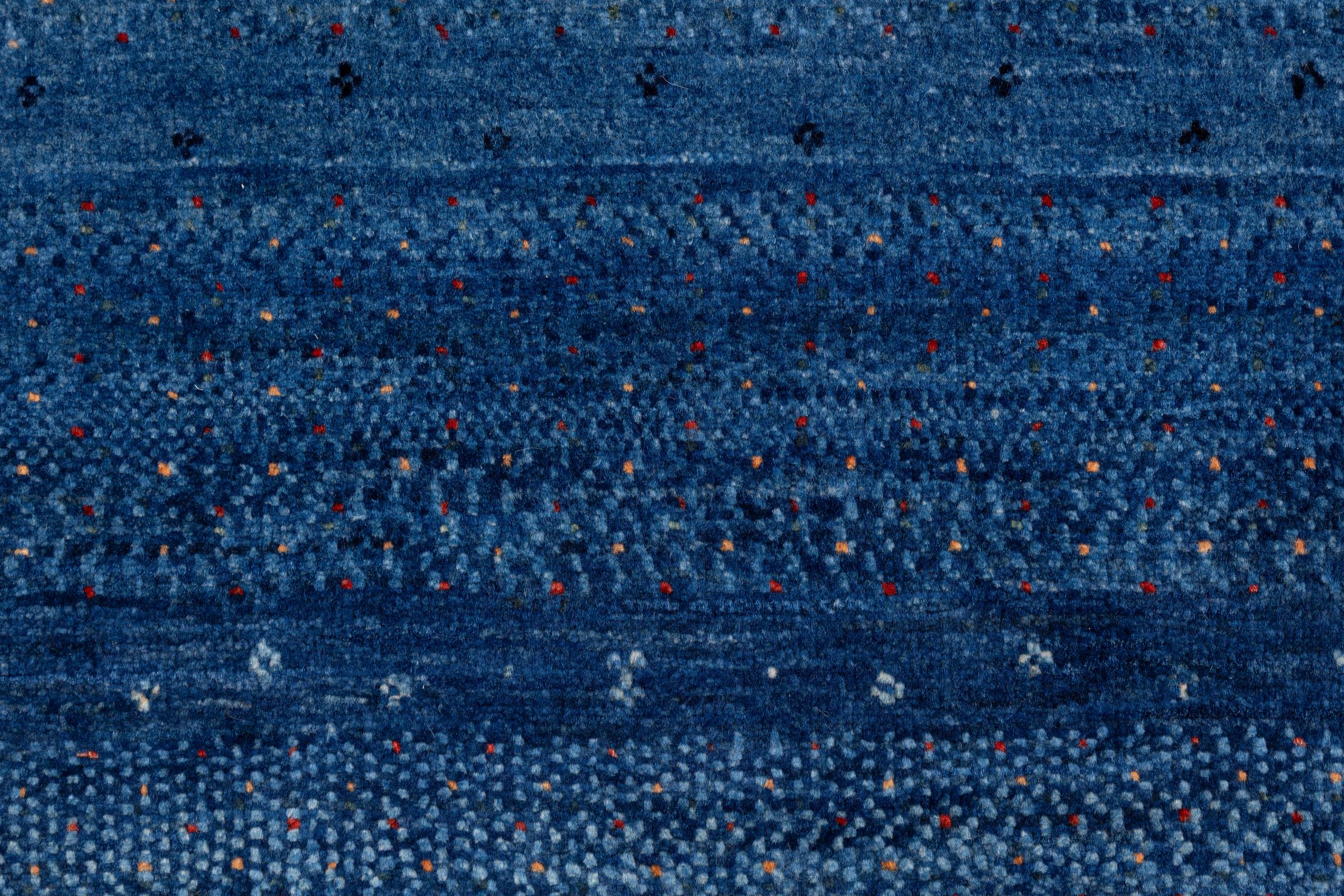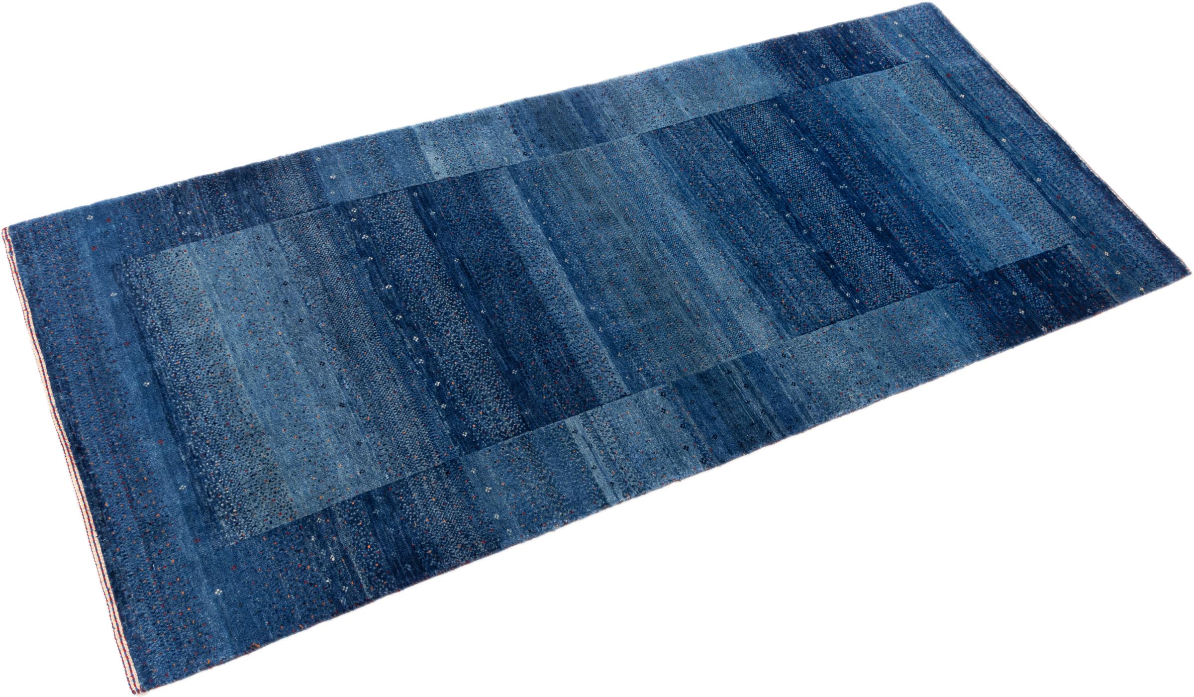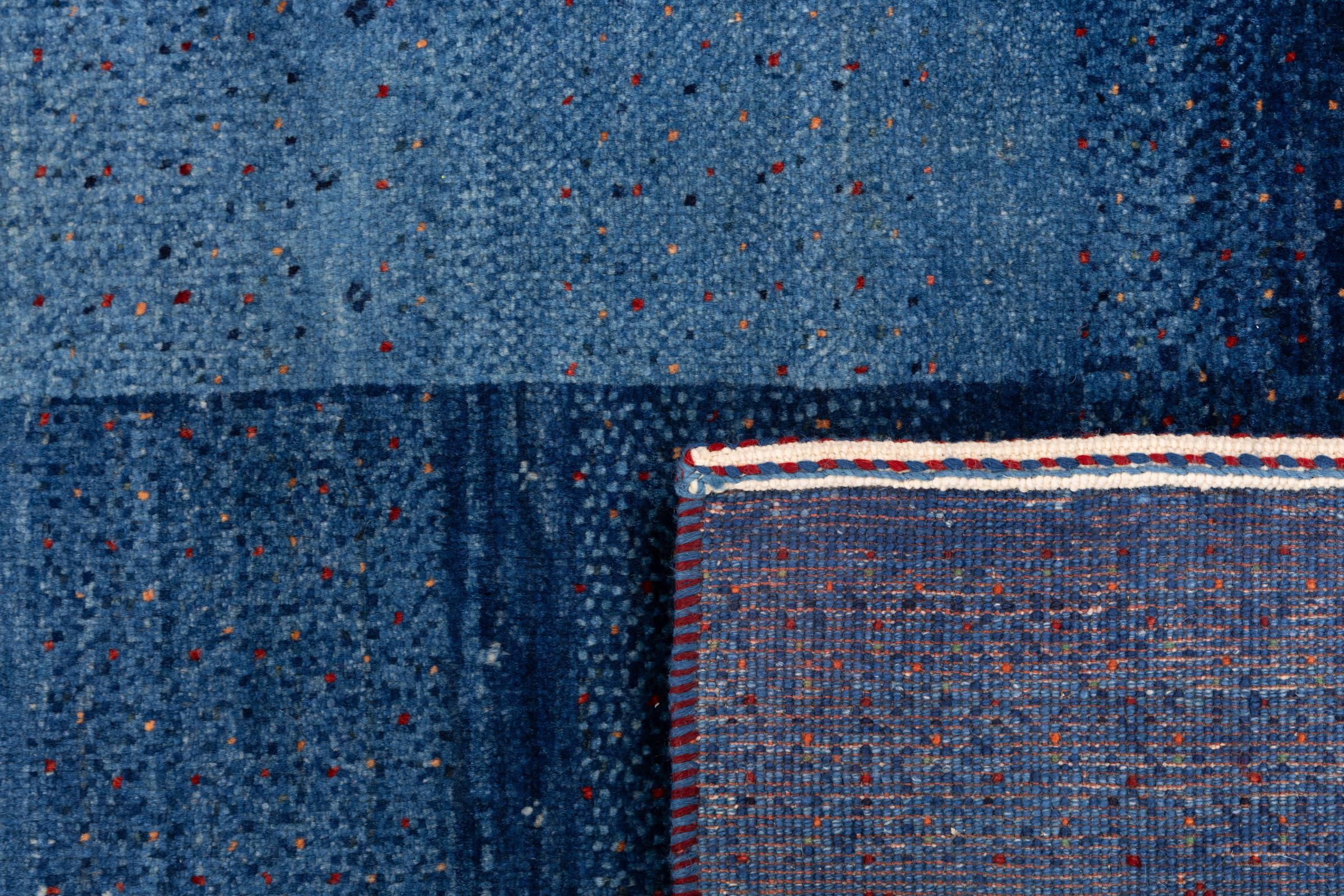 Ce magnifique tapis est un Gabbeh persan et fait donc partie des tapis Gabbeh de la plus haute qualité. Les tapis sont noués par des nomades ou des semi-nomades en Iran selon un savoir-faire traditionnel. Les motifs simples sont pour la plupart inspirés par l'environnement local des nomades. Par exemple, on peut trouver des chameaux, des arbres ou des buissons sur les tapis traditionnels. Les tapis de Gabbeh persan sont faits de laine provenant de troupeaux de moutons élevés localement. La laine est donc encore en grande partie filée à la main. Ainsi, chacun de ces tapis orientaux incarne un caractère unique de culture ancienne.