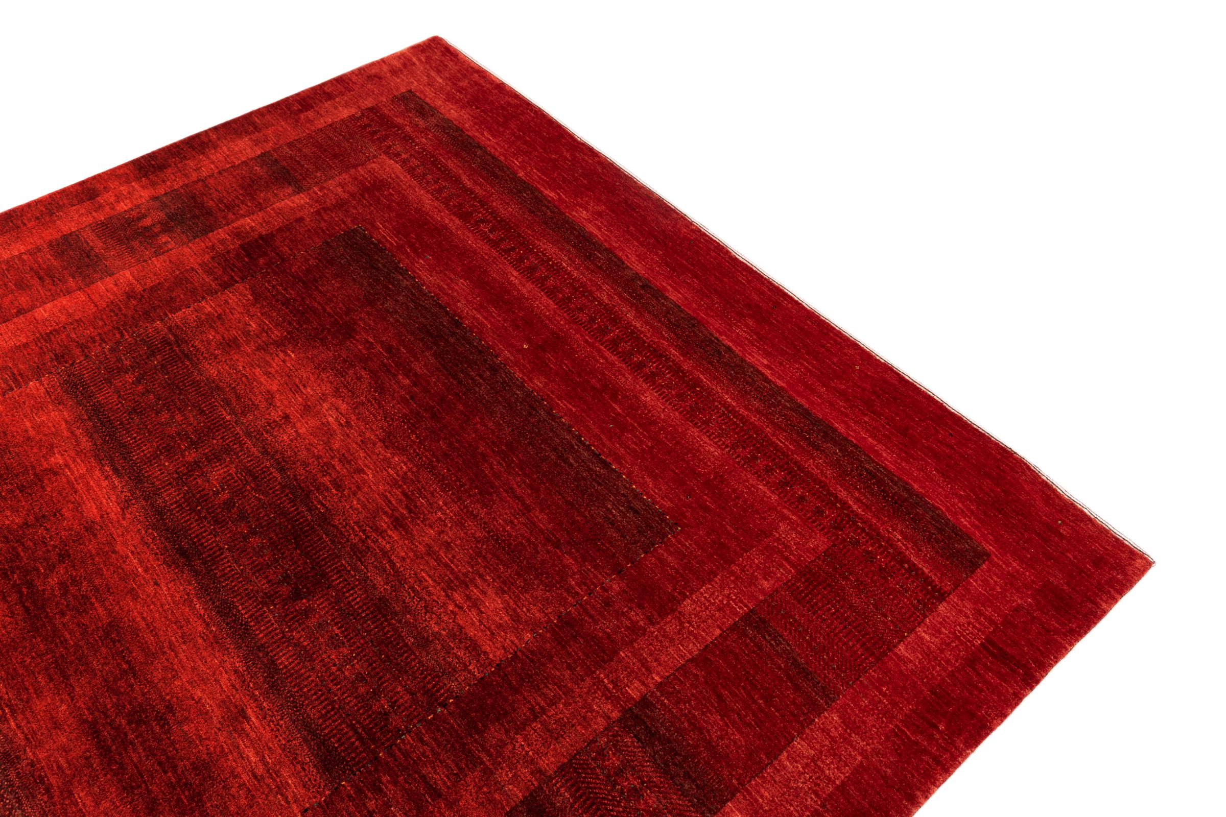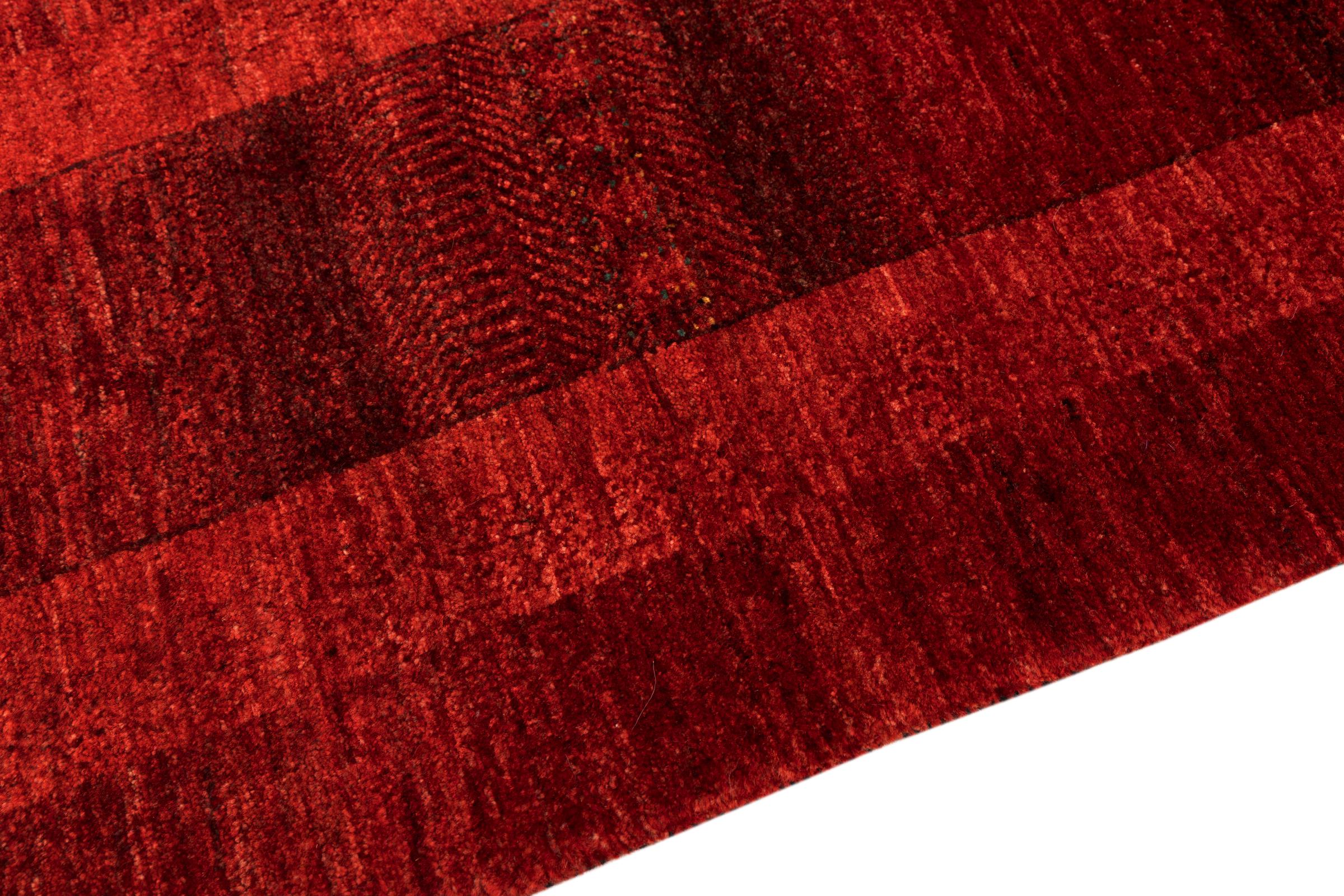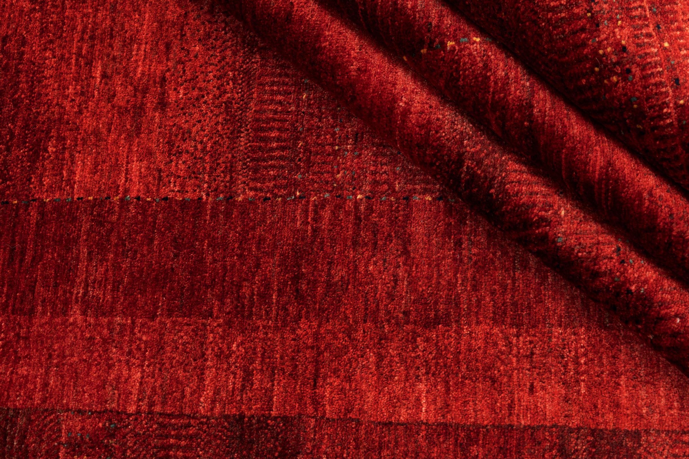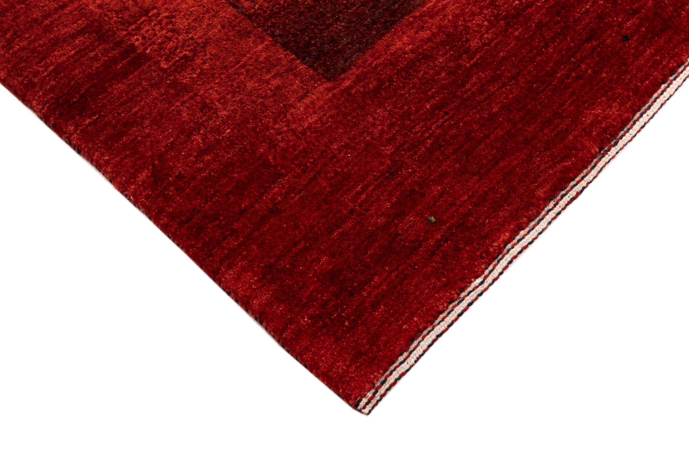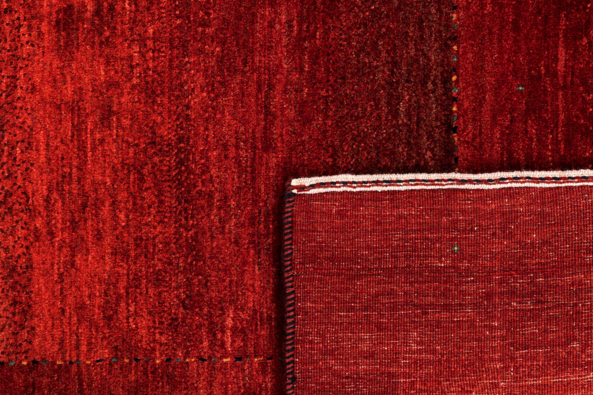 Ce magnifique tapis est un Gabbeh persan et fait donc partie des tapis Gabbeh de la plus haute qualité. Les tapis sont noués par des nomades ou des semi-nomades en Iran selon un savoir-faire traditionnel. Les motifs simples sont pour la plupart inspirés par l'environnement local des nomades. Par exemple, on peut trouver des chameaux, des arbres ou des buissons sur les tapis traditionnels. Les tapis de Gabbeh persan sont faits de laine provenant de troupeaux de moutons élevés localement. La laine est donc encore en grande partie filée à la main. Ainsi, chacun de ces tapis orientaux incarne un caractère unique de culture ancienne.