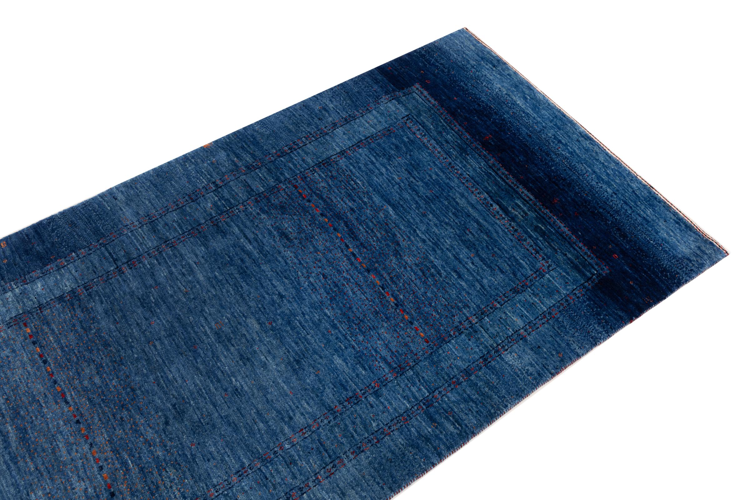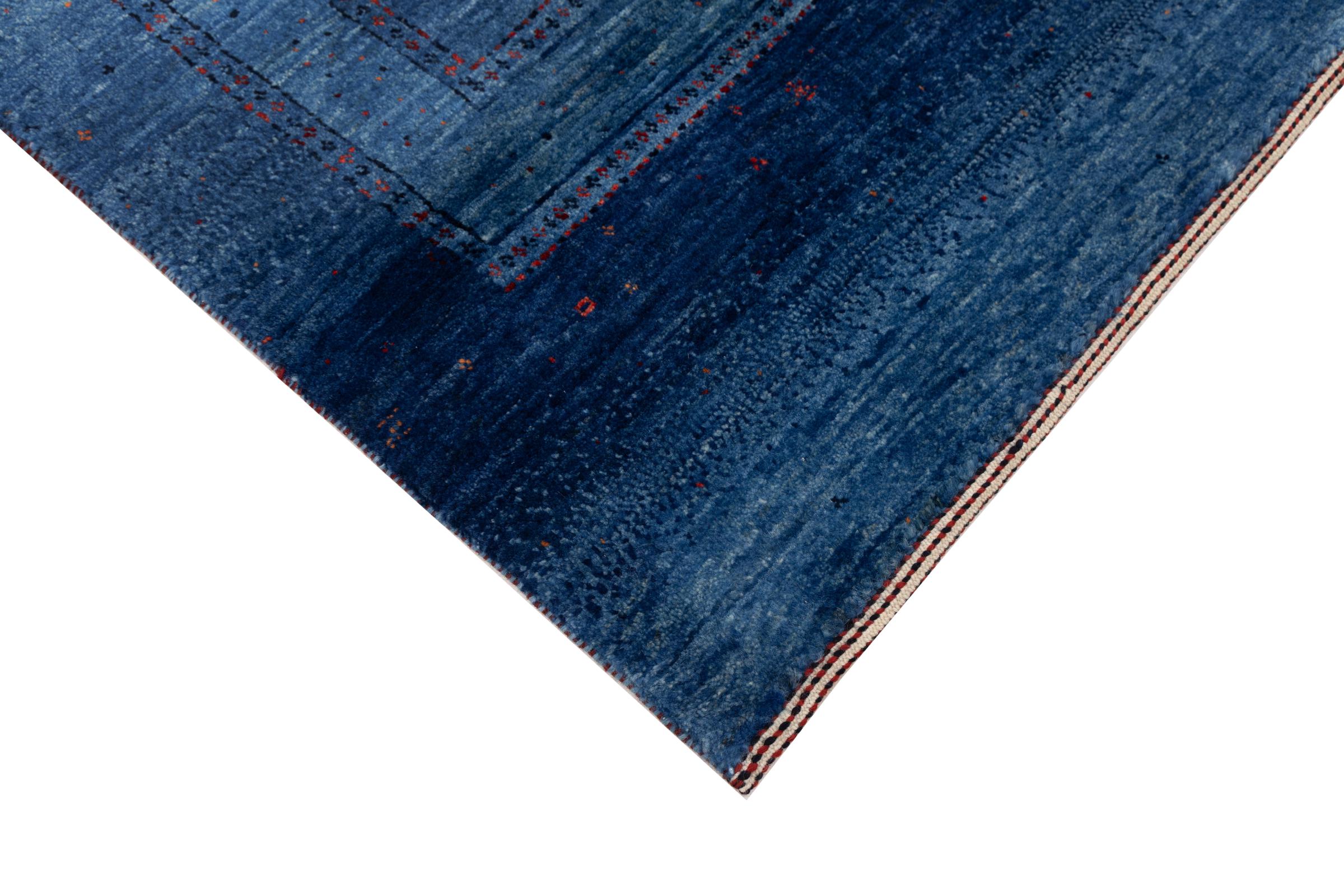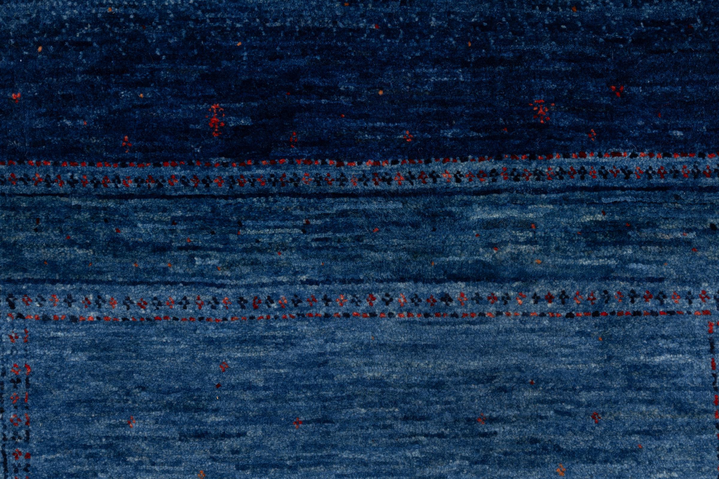 Ce magnifique tapis est un Gabbeh persan et fait donc partie des tapis Gabbeh de la plus haute qualité. Les tapis sont noués par des nomades ou des semi-nomades en Iran selon un savoir-faire traditionnel. Les motifs simples sont pour la plupart inspirés par l'environnement local des nomades. Par exemple, on peut trouver des chameaux, des arbres ou des buissons sur les tapis traditionnels. Les tapis de Gabbeh persan sont faits de laine provenant de troupeaux de moutons élevés localement. La laine est donc encore en grande partie filée à la main. Ainsi, chacun de ces tapis orientaux incarne un caractère unique de culture ancienne.