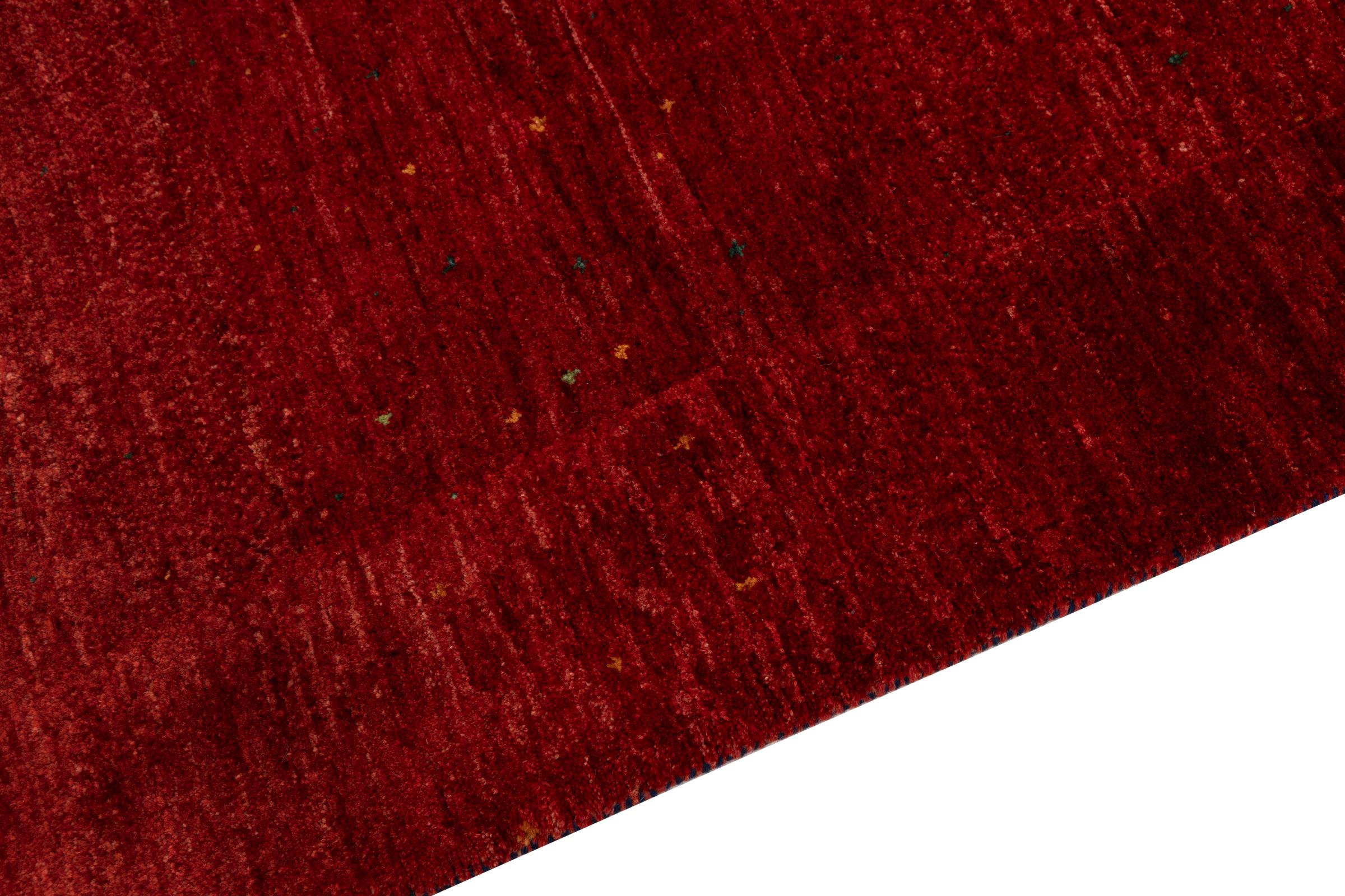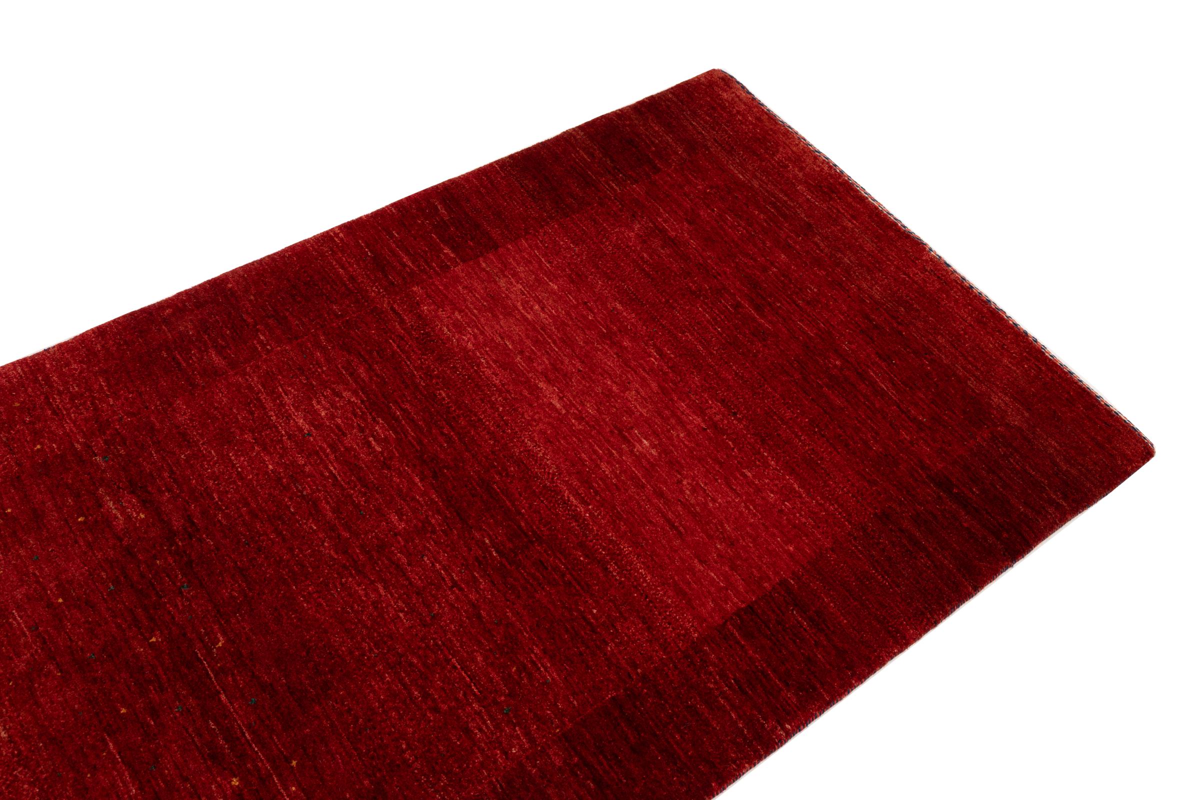 Ce magnifique tapis est un Gabbeh persan et fait donc partie des tapis Gabbeh de la plus haute qualité. Les tapis sont noués par des nomades ou des semi-nomades en Iran selon un savoir-faire traditionnel. Les motifs simples sont pour la plupart inspirés par l'environnement local des nomades. Par exemple, on peut trouver des chameaux, des arbres ou des buissons sur les tapis traditionnels. Les tapis de Gabbeh persan sont faits de laine provenant de troupeaux de moutons élevés localement. La laine est donc encore en grande partie filée à la main. Ainsi, chacun de ces tapis orientaux incarne un caractère unique de culture ancienne.