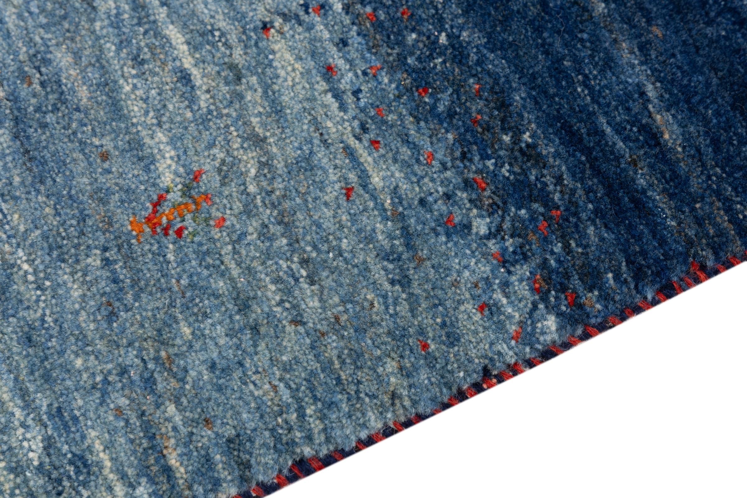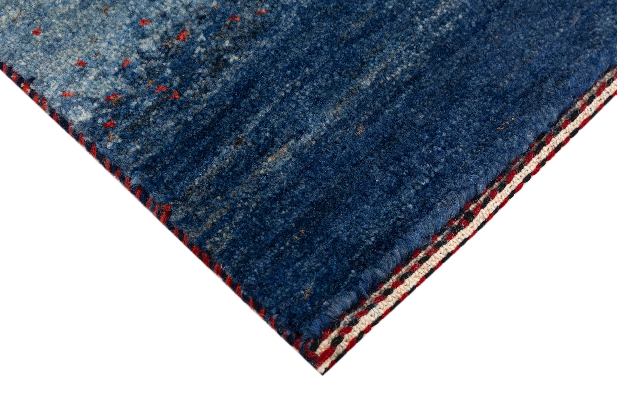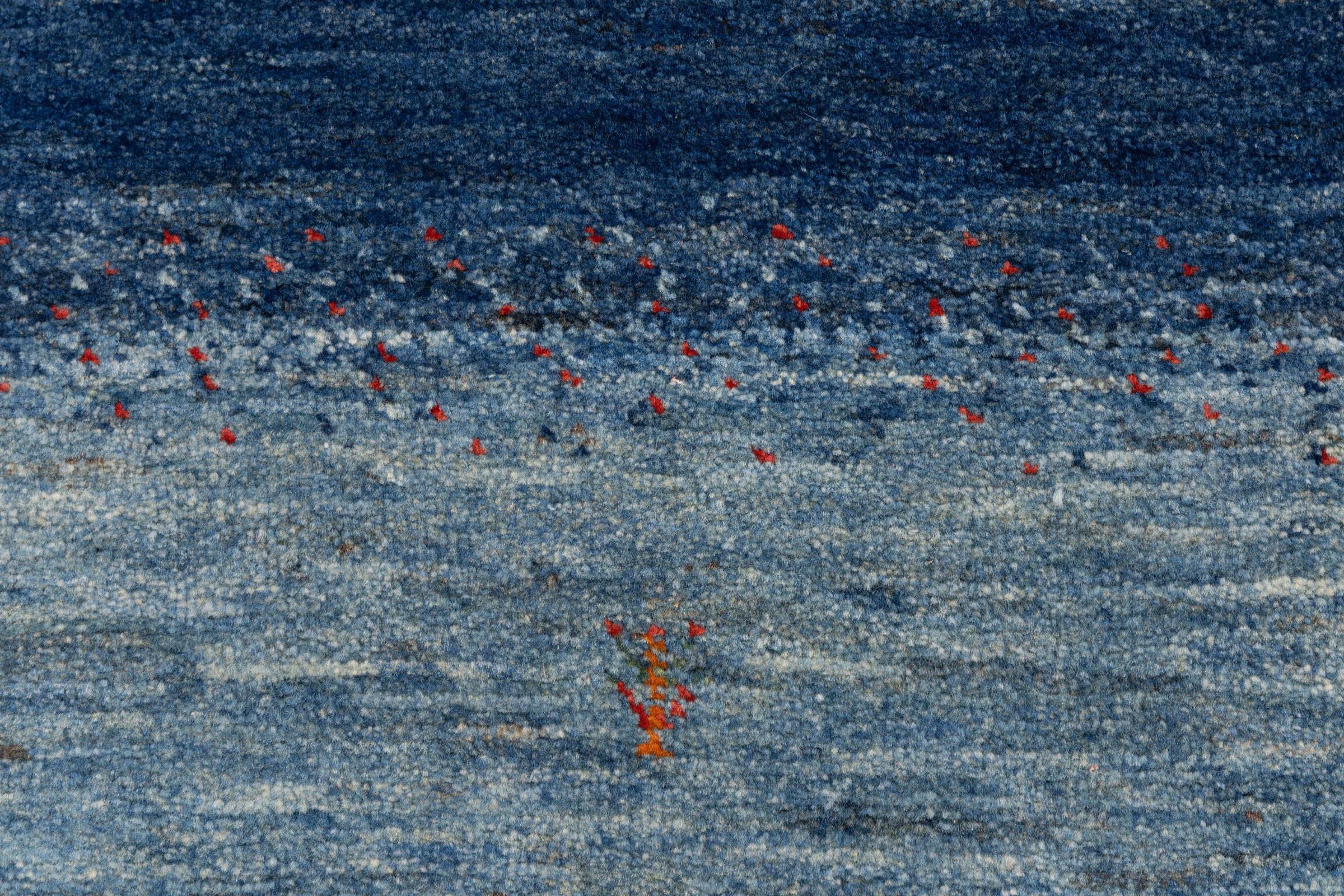 Ce magnifique tapis est un Gabbeh persan et fait donc partie des tapis Gabbeh de la plus haute qualité. Les tapis sont noués par des nomades ou des semi-nomades en Iran selon un savoir-faire traditionnel. Les motifs simples sont pour la plupart inspirés par l'environnement local des nomades. Par exemple, on peut trouver des chameaux, des arbres ou des buissons sur les tapis traditionnels. Les tapis de Gabbeh persan sont faits de laine provenant de troupeaux de moutons élevés localement. La laine est donc encore en grande partie filée à la main. Ainsi, chacun de ces tapis orientaux incarne un caractère unique de culture ancienne.