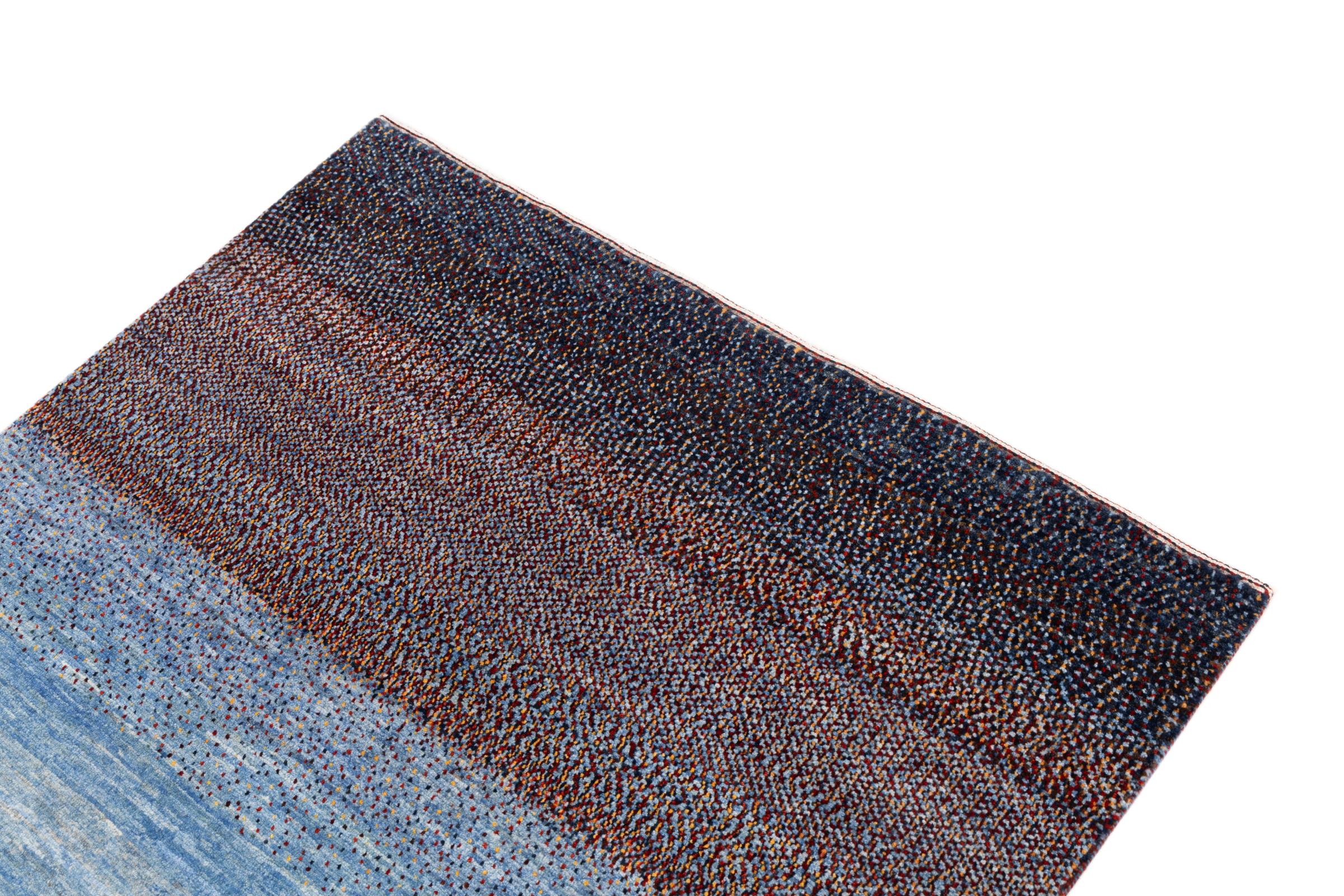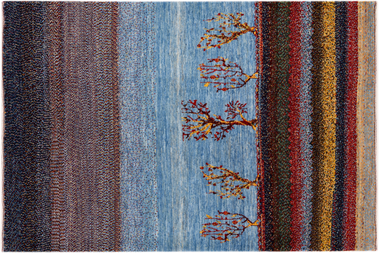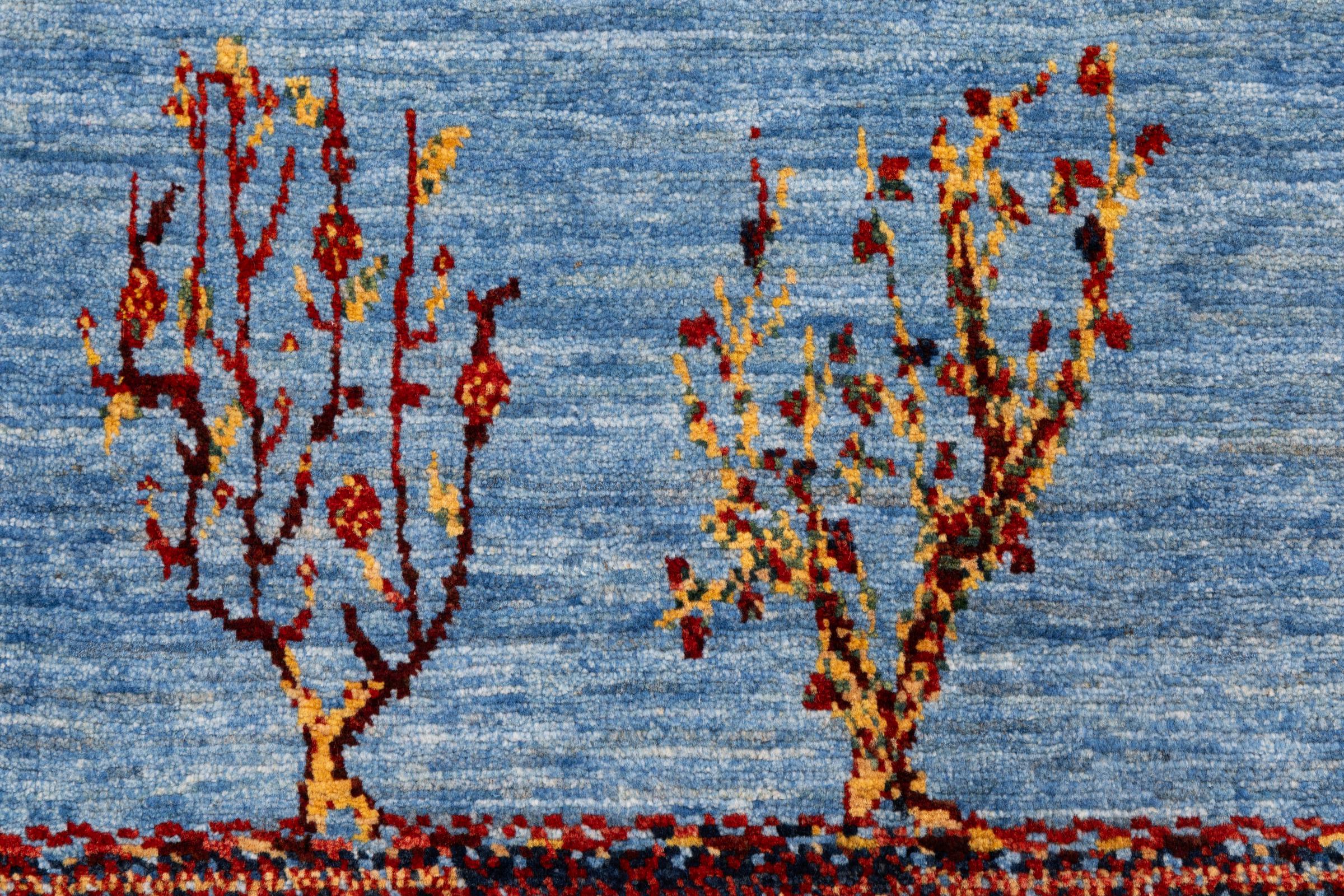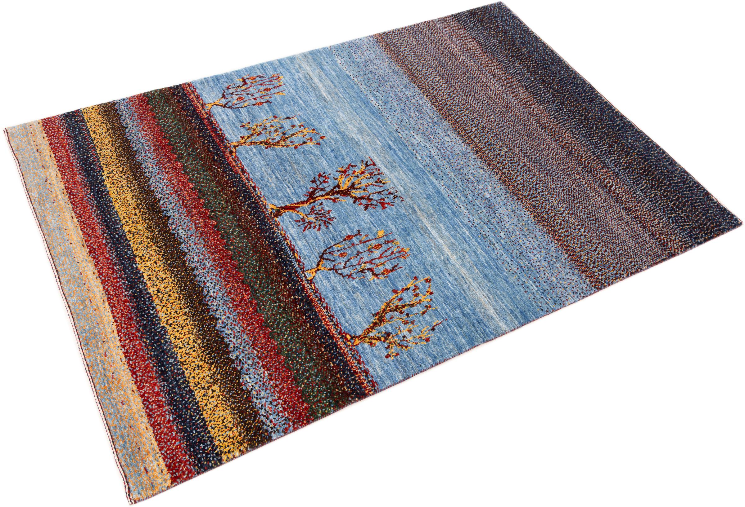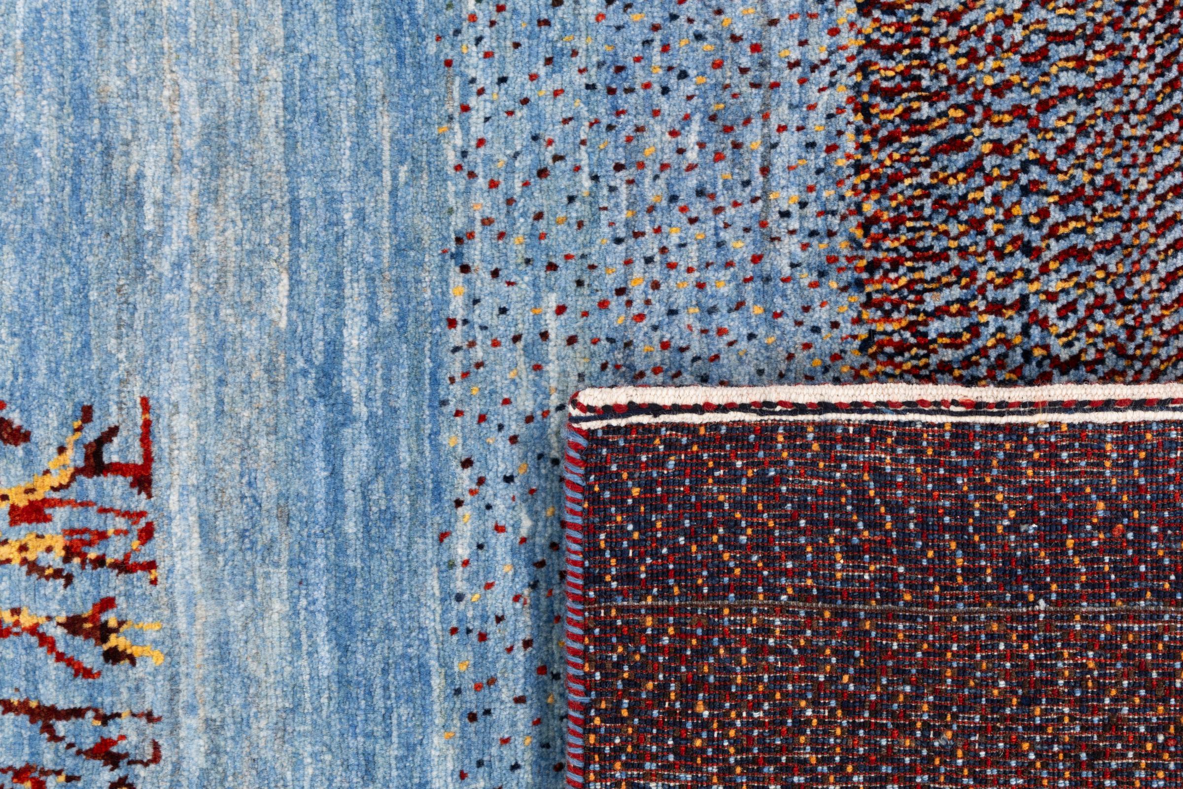 Ce magnifique tapis est un Gabbeh persan et fait donc partie des tapis Gabbeh de la plus haute qualité. Les tapis sont noués par des nomades ou des semi-nomades en Iran selon un savoir-faire traditionnel. Les motifs simples sont pour la plupart inspirés par l'environnement local des nomades. Par exemple, on peut trouver des chameaux, des arbres ou des buissons sur les tapis traditionnels. Les tapis de Gabbeh persan sont faits de laine provenant de troupeaux de moutons élevés localement. La laine est donc encore en grande partie filée à la main. Ainsi, chacun de ces tapis orientaux incarne un caractère unique de culture ancienne.