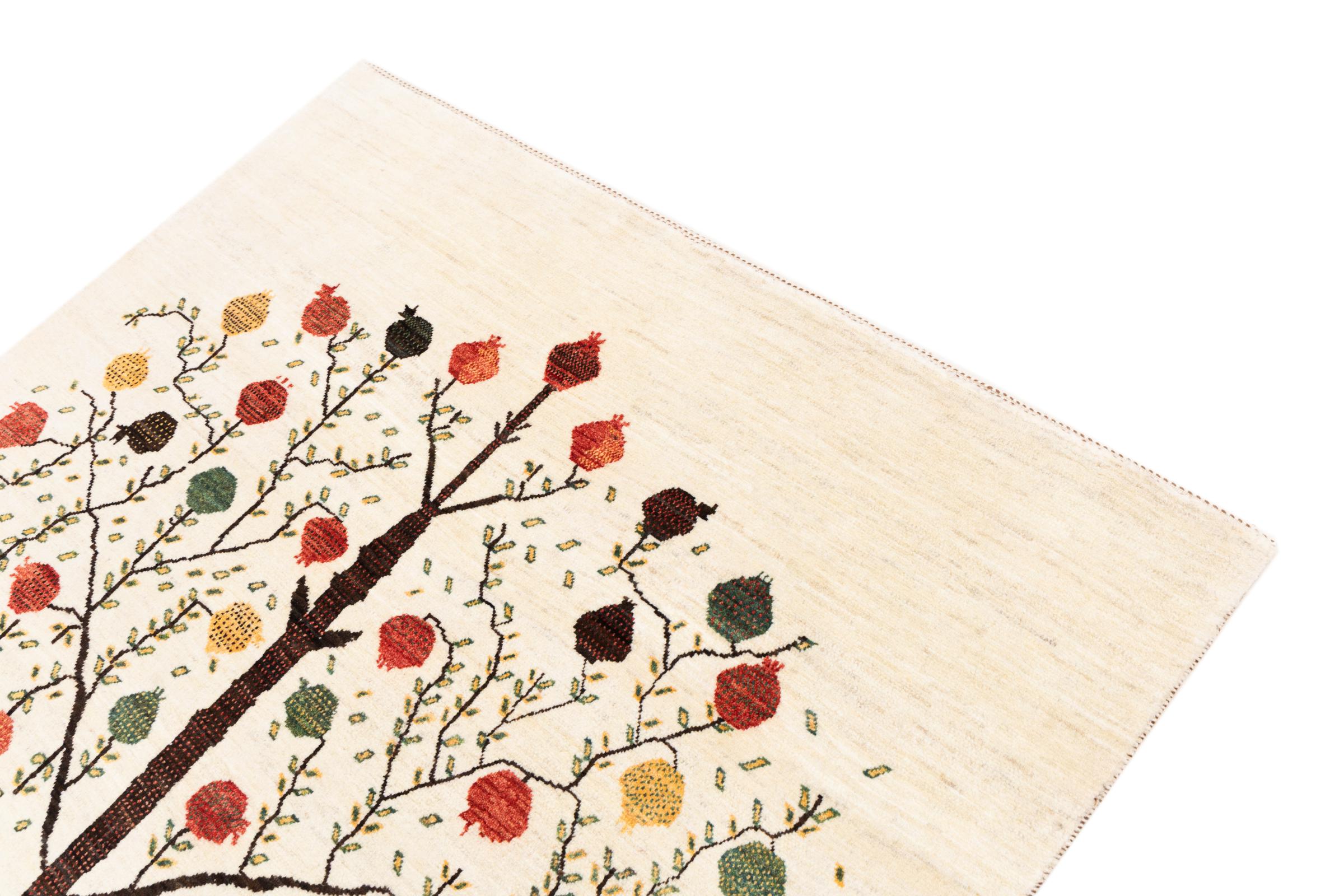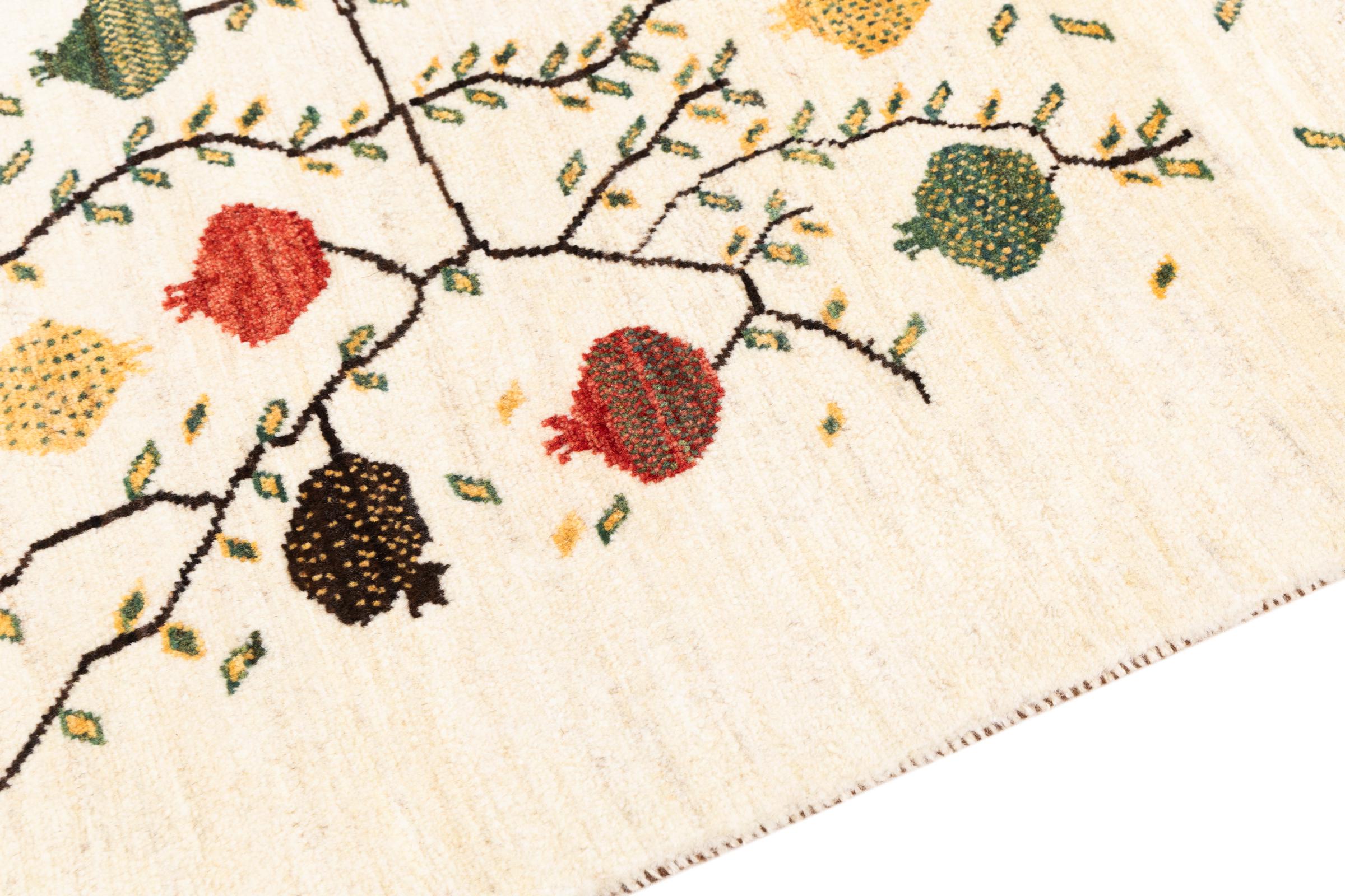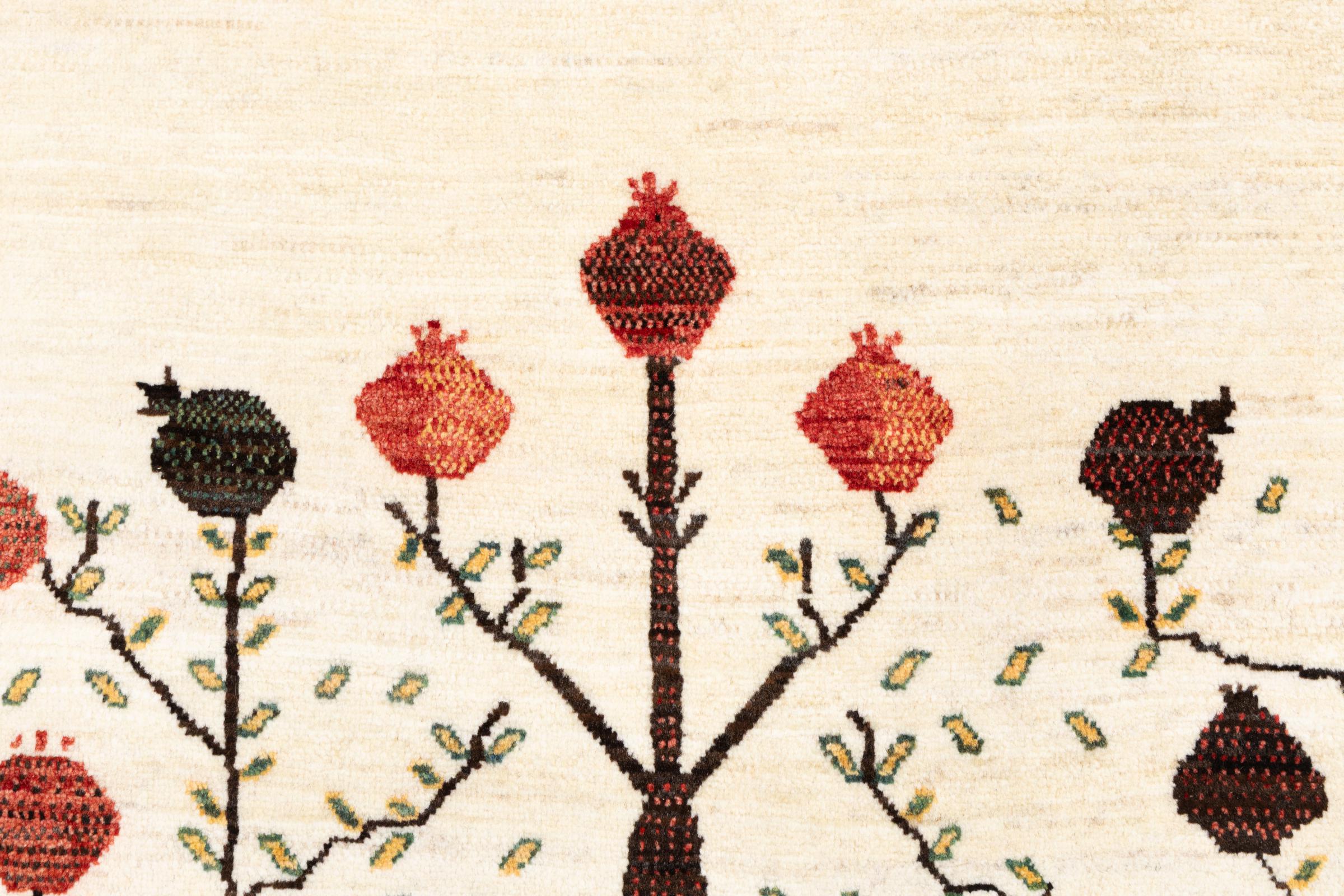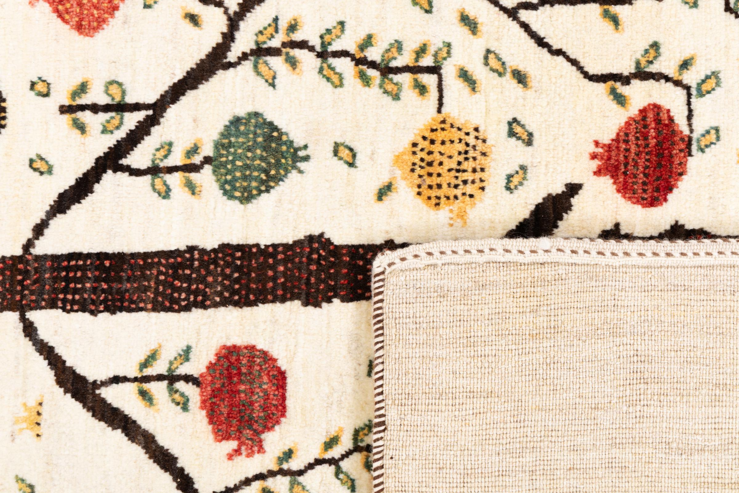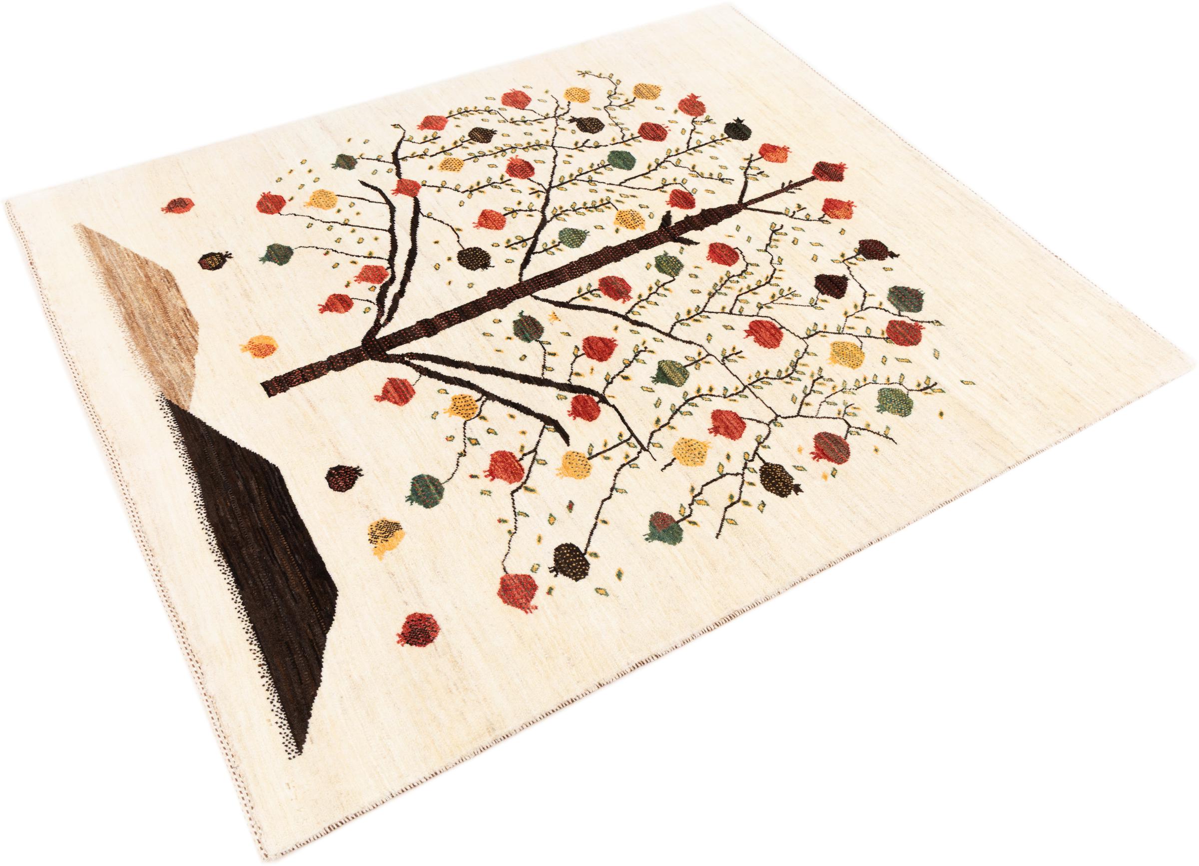 Ce magnifique tapis est un Gabbeh persan et fait donc partie des tapis Gabbeh de la plus haute qualité. Les tapis sont noués par des nomades ou des semi-nomades en Iran selon un savoir-faire traditionnel. Les motifs simples sont pour la plupart inspirés par l'environnement local des nomades. Par exemple, on peut trouver des chameaux, des arbres ou des buissons sur les tapis traditionnels. Les tapis de Gabbeh persan sont faits de laine provenant de troupeaux de moutons élevés localement. La laine est donc encore en grande partie filée à la main. Ainsi, chacun de ces tapis orientaux incarne un caractère unique de culture ancienne.