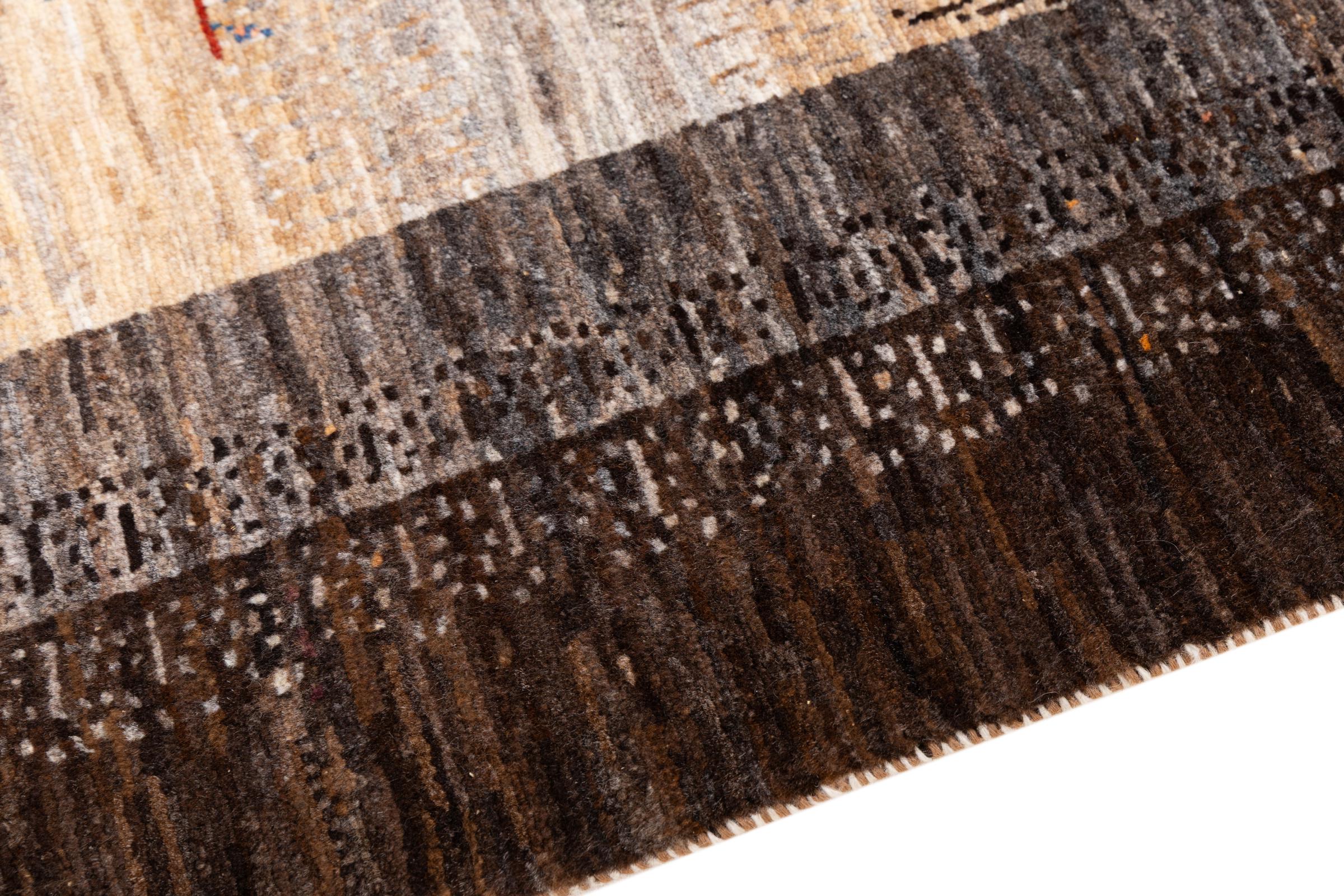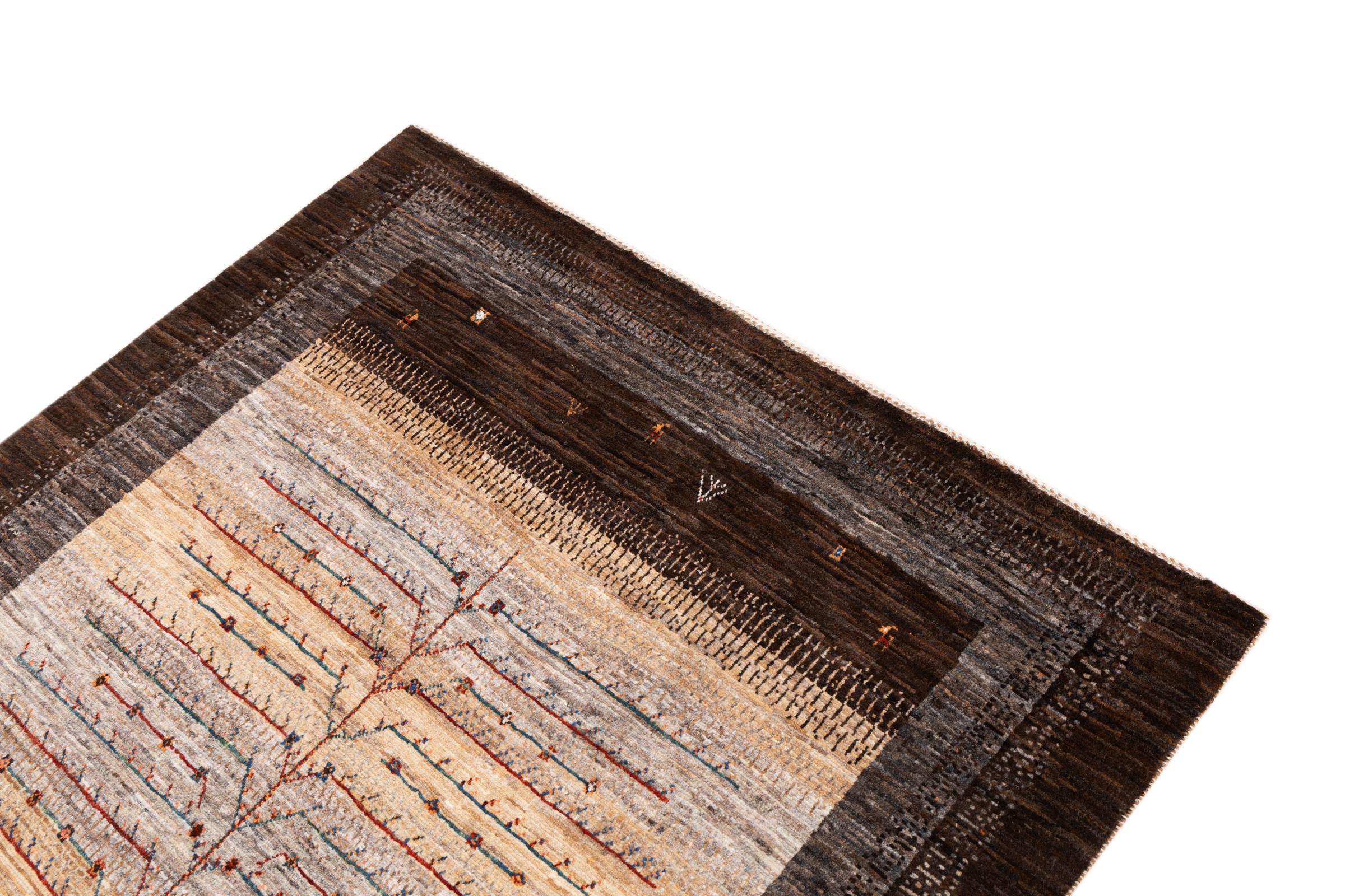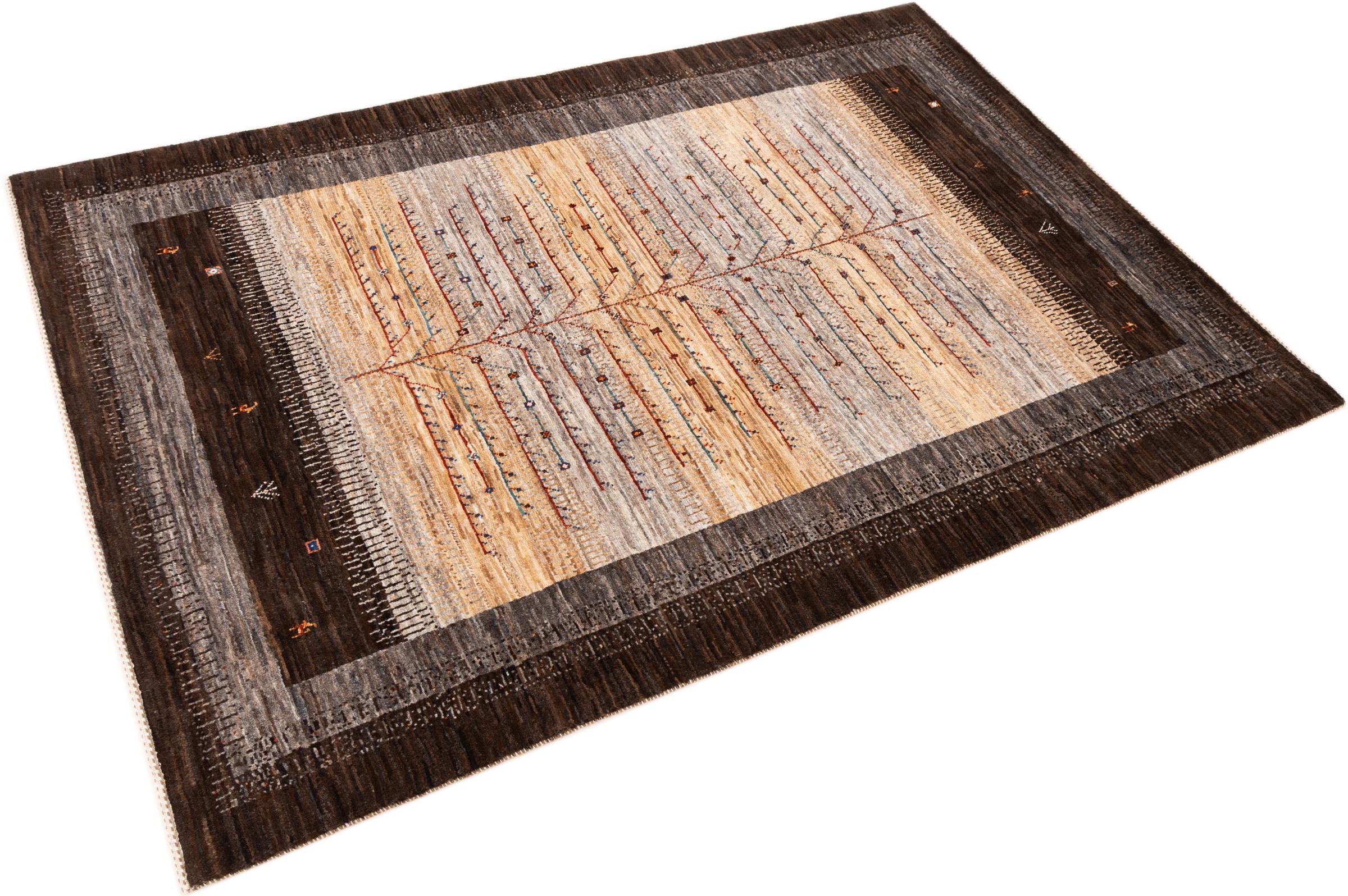 Ce magnifique tapis est un Gabbeh persan et fait donc partie des tapis Gabbeh de la plus haute qualité. Les tapis sont noués par des nomades ou des semi-nomades en Iran selon un savoir-faire traditionnel. Les motifs simples sont pour la plupart inspirés par l'environnement local des nomades. Par exemple, on peut trouver des chameaux, des arbres ou des buissons sur les tapis traditionnels. Les tapis de Gabbeh persan sont faits de laine provenant de troupeaux de moutons élevés localement. La laine est donc encore en grande partie filée à la main. Ainsi, chacun de ces tapis orientaux incarne un caractère unique de culture ancienne.