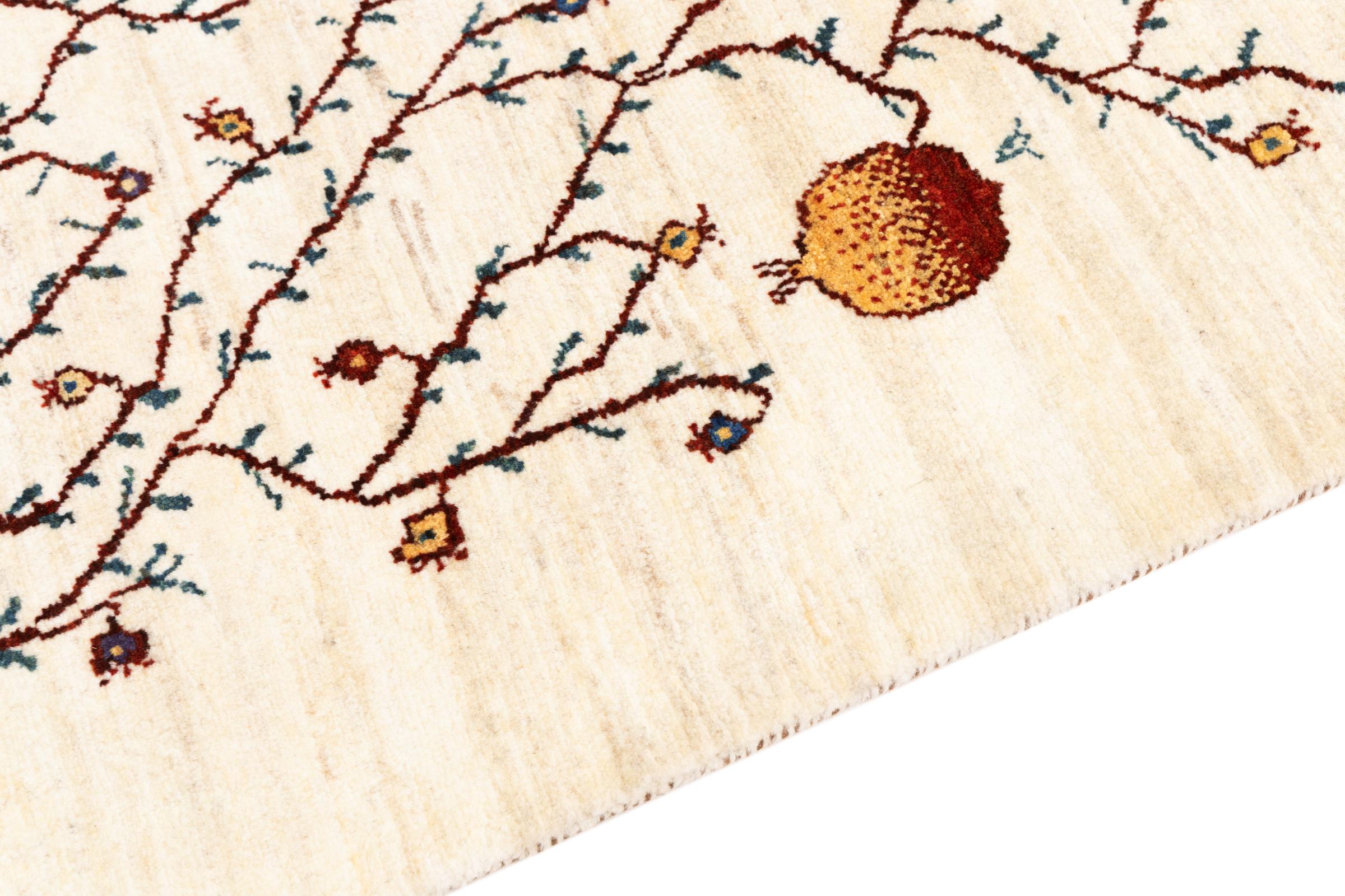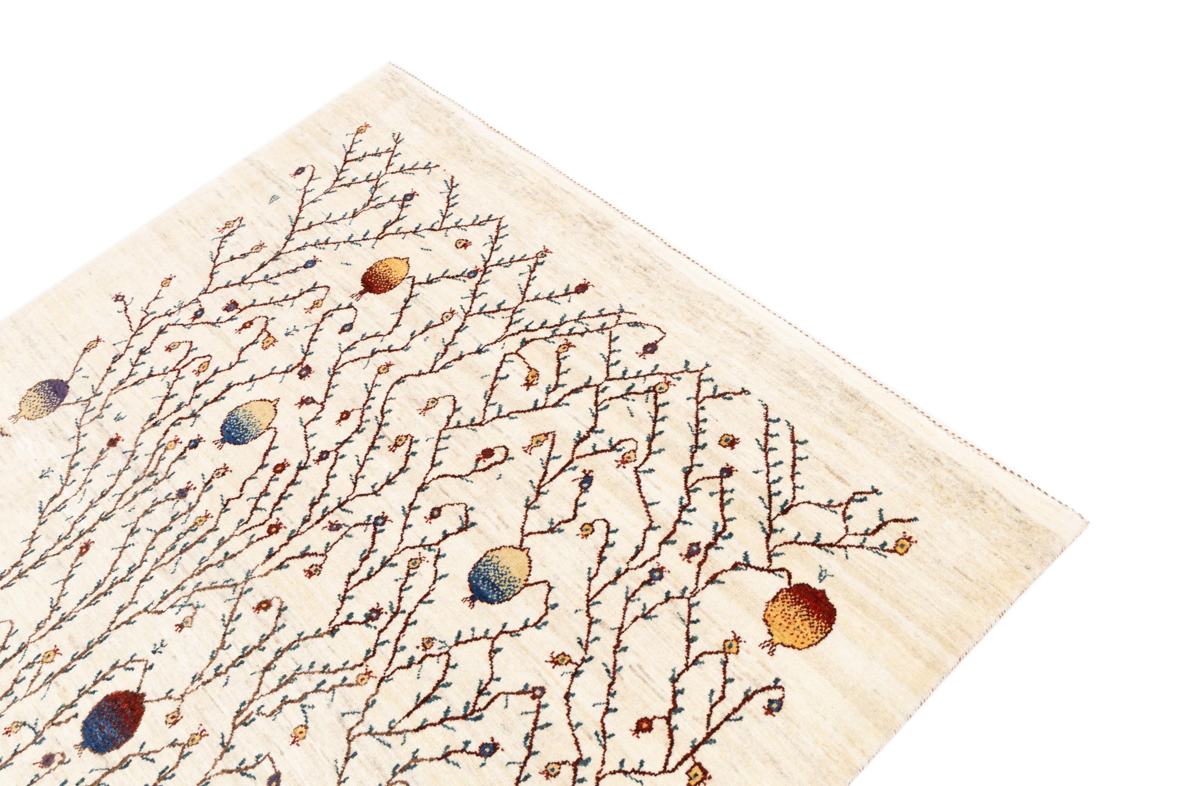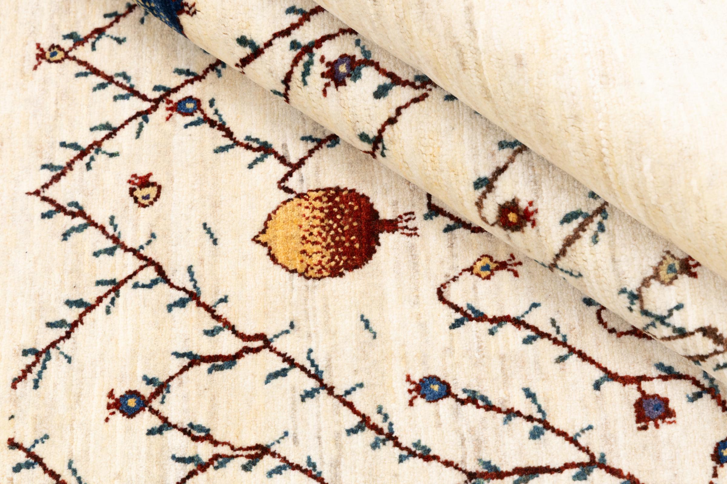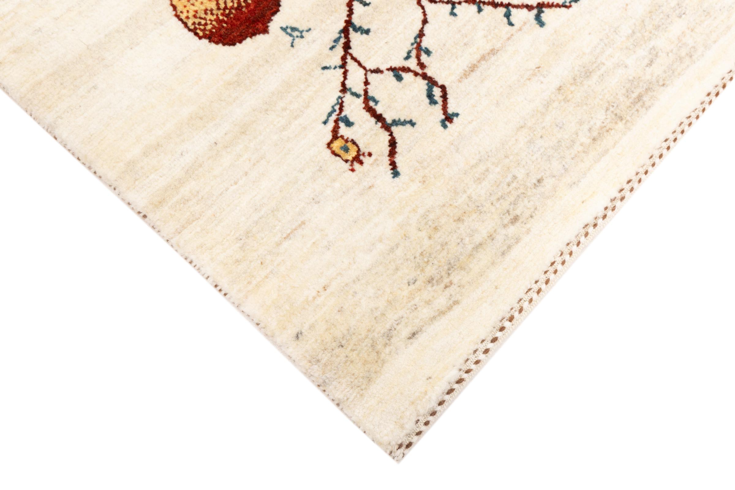 Ce magnifique tapis est un Gabbeh persan et fait donc partie des tapis Gabbeh de la plus haute qualité. Les tapis sont noués par des nomades ou des semi-nomades en Iran selon un savoir-faire traditionnel. Les motifs simples sont pour la plupart inspirés par l'environnement local des nomades. Par exemple, on peut trouver des chameaux, des arbres ou des buissons sur les tapis traditionnels. Les tapis de Gabbeh persan sont faits de laine provenant de troupeaux de moutons élevés localement. La laine est donc encore en grande partie filée à la main. Ainsi, chacun de ces tapis orientaux incarne un caractère unique de culture ancienne.