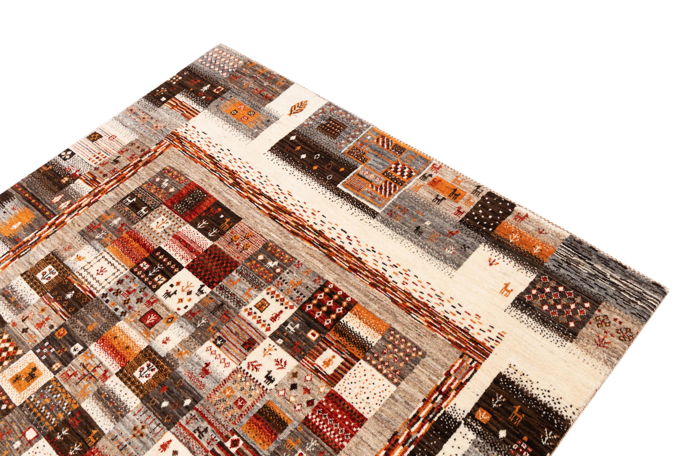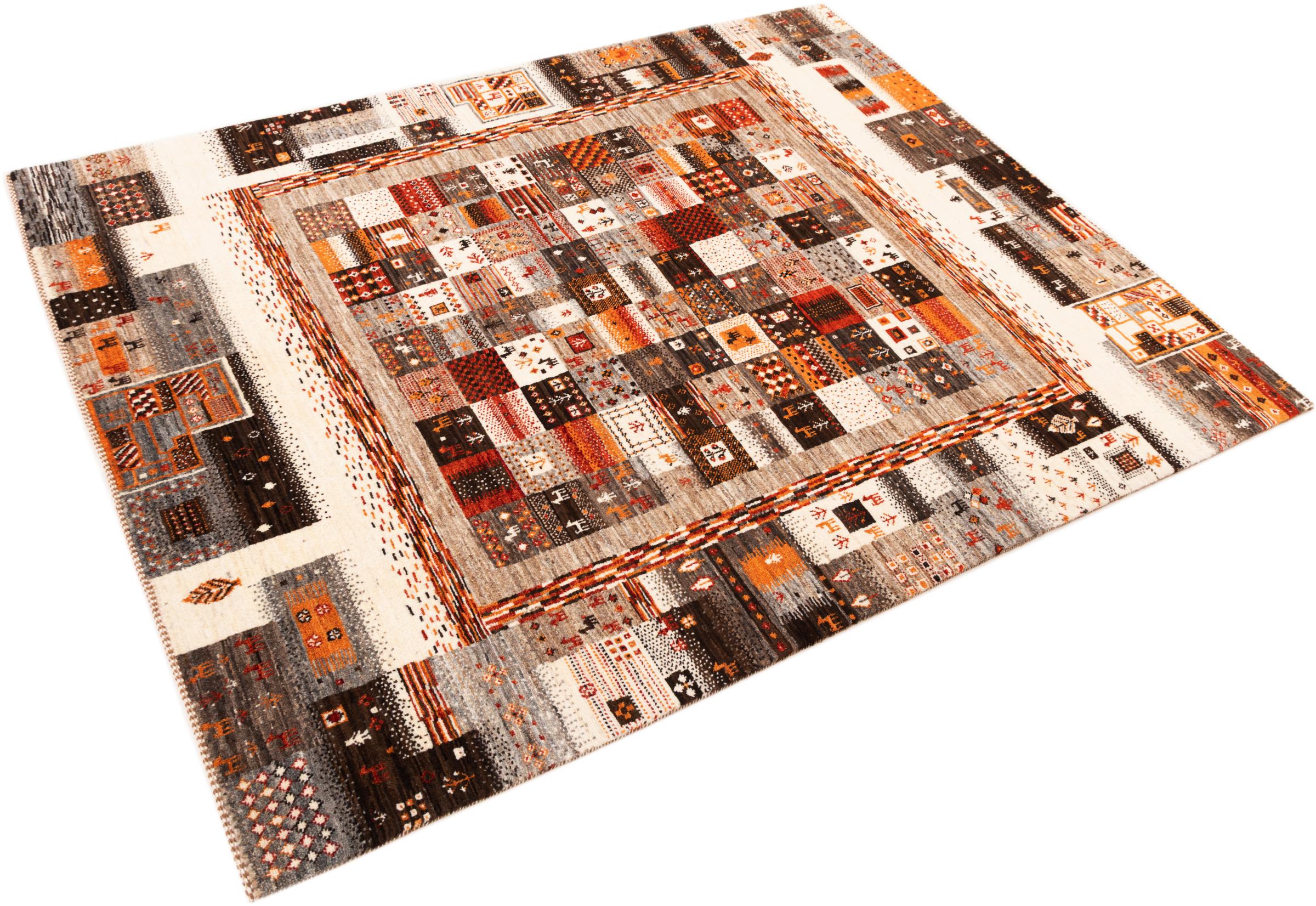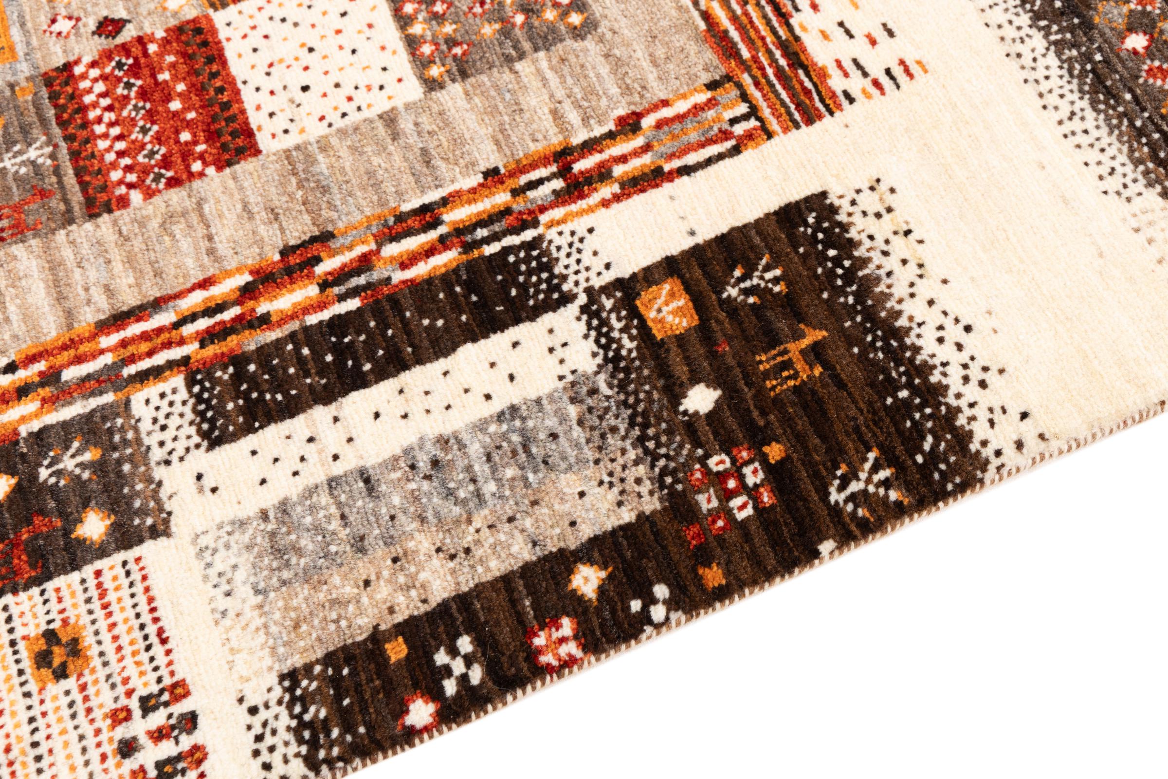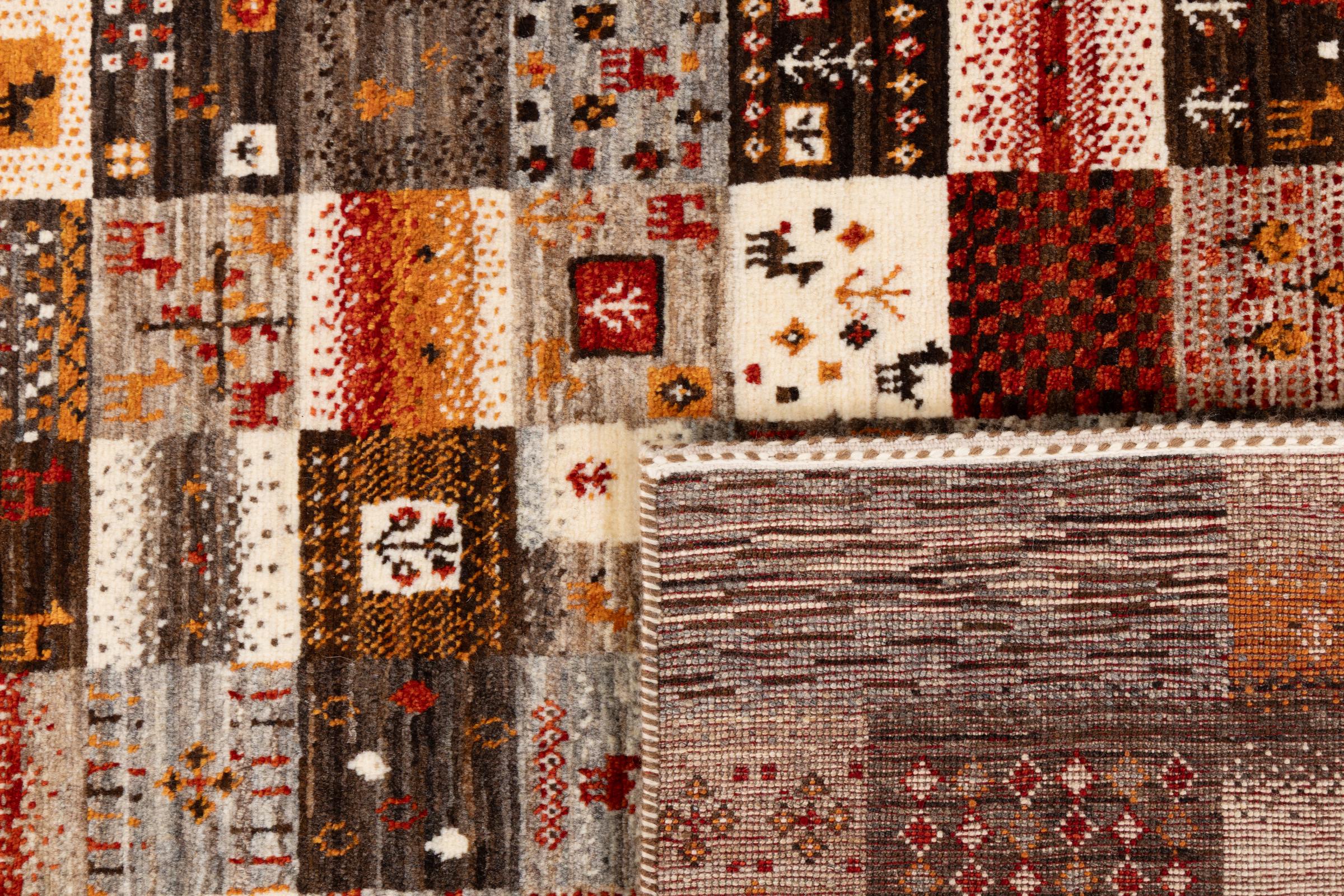 Ce magnifique tapis est un Gabbeh persan et fait donc partie des tapis Gabbeh de la plus haute qualité. Les tapis sont noués par des nomades ou des semi-nomades en Iran selon un savoir-faire traditionnel. Les motifs simples sont pour la plupart inspirés par l'environnement local des nomades. Par exemple, on peut trouver des chameaux, des arbres ou des buissons sur les tapis traditionnels. Les tapis de Gabbeh persan sont faits de laine provenant de troupeaux de moutons élevés localement. La laine est donc encore en grande partie filée à la main. Ainsi, chacun de ces tapis orientaux incarne un caractère unique de culture ancienne.