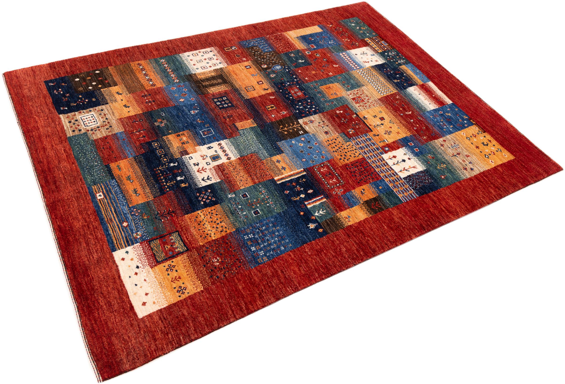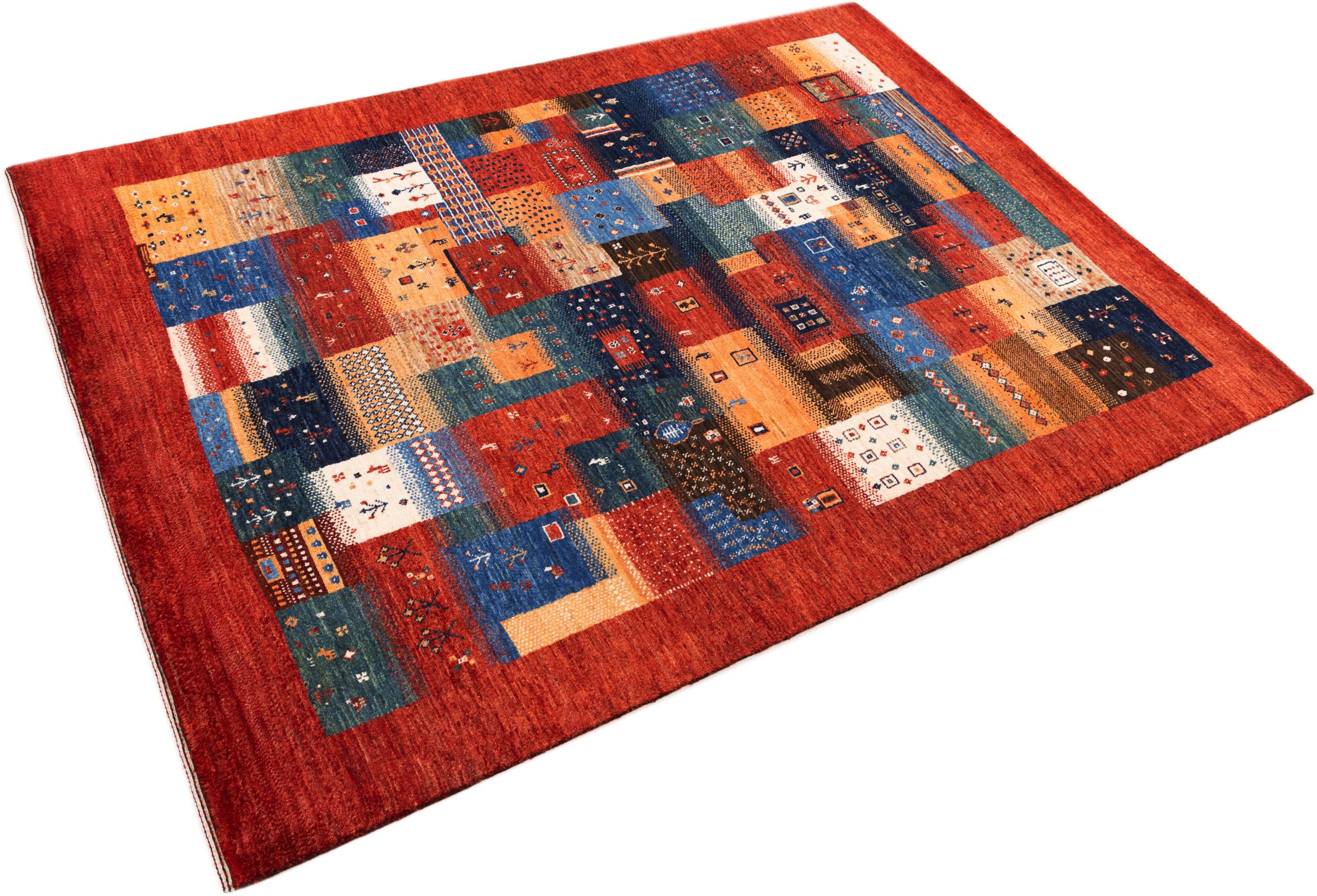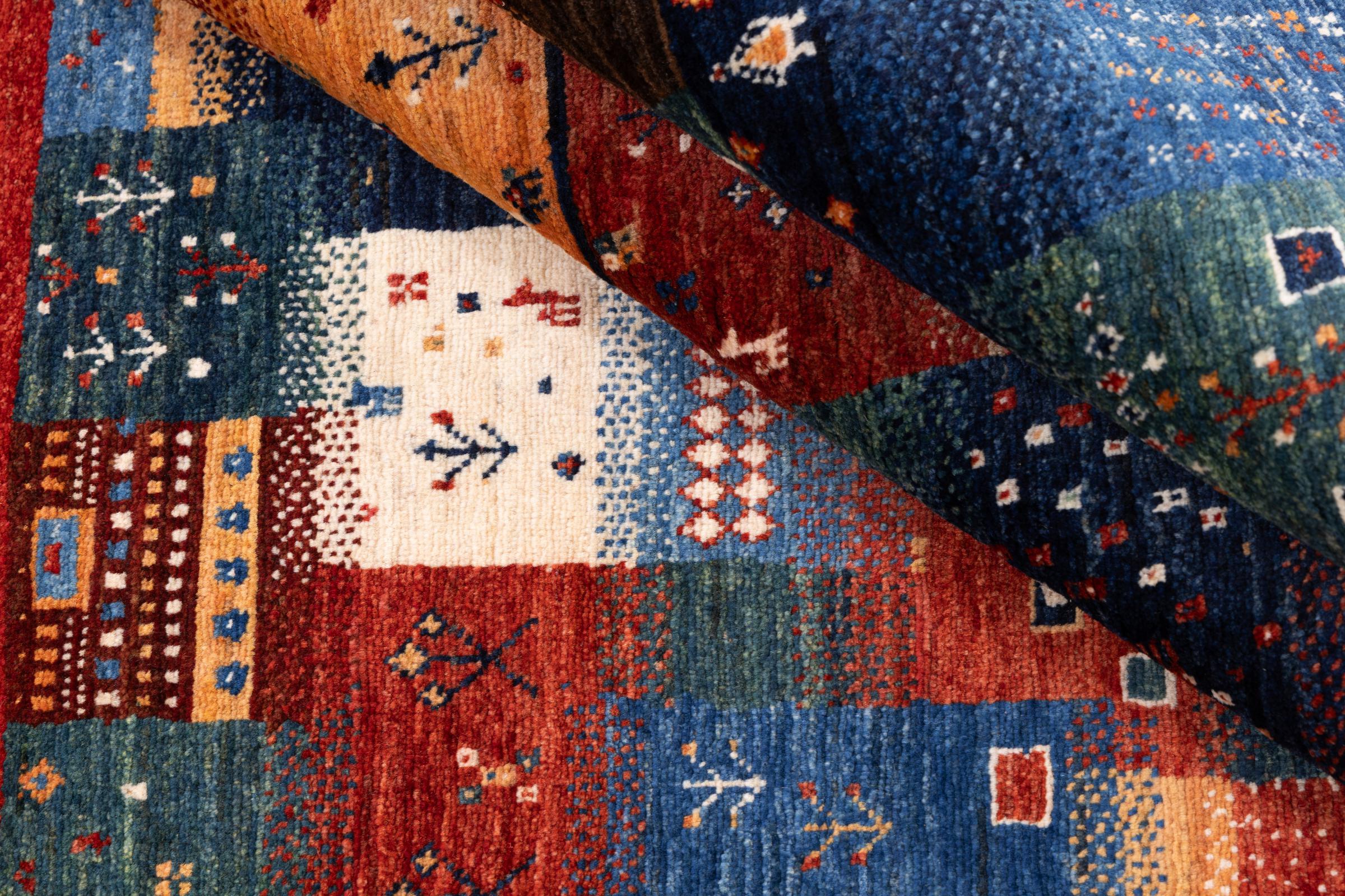 Ce magnifique tapis est un Gabbeh persan et fait donc partie des tapis Gabbeh de la plus haute qualité. Les tapis sont noués par des nomades ou des semi-nomades en Iran selon un savoir-faire traditionnel. Les motifs simples sont pour la plupart inspirés par l'environnement local des nomades. Par exemple, on peut trouver des chameaux, des arbres ou des buissons sur les tapis traditionnels. Les tapis de Gabbeh persan sont faits de laine provenant de troupeaux de moutons élevés localement. La laine est donc encore en grande partie filée à la main. Ainsi, chacun de ces tapis orientaux incarne un caractère unique de culture ancienne.