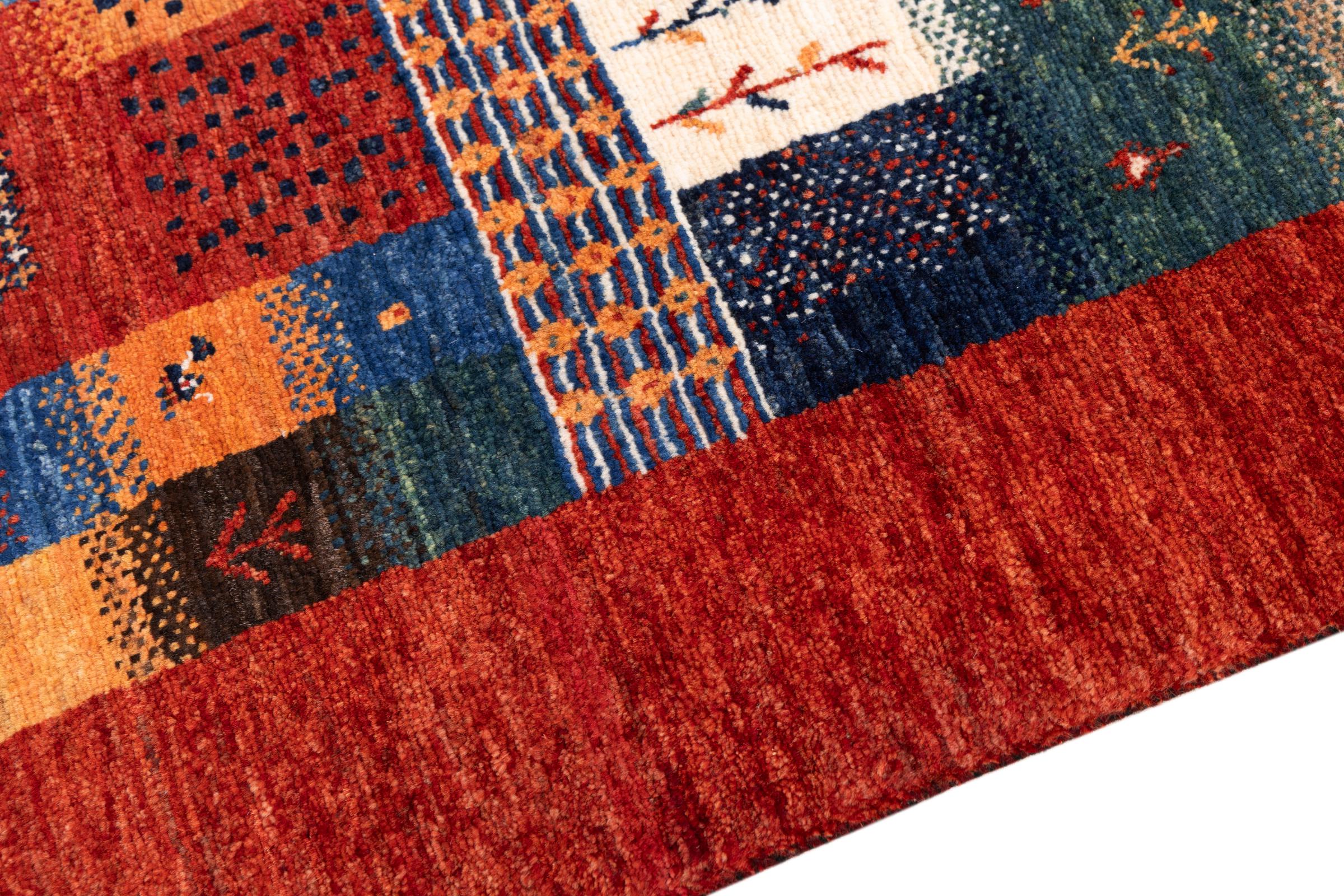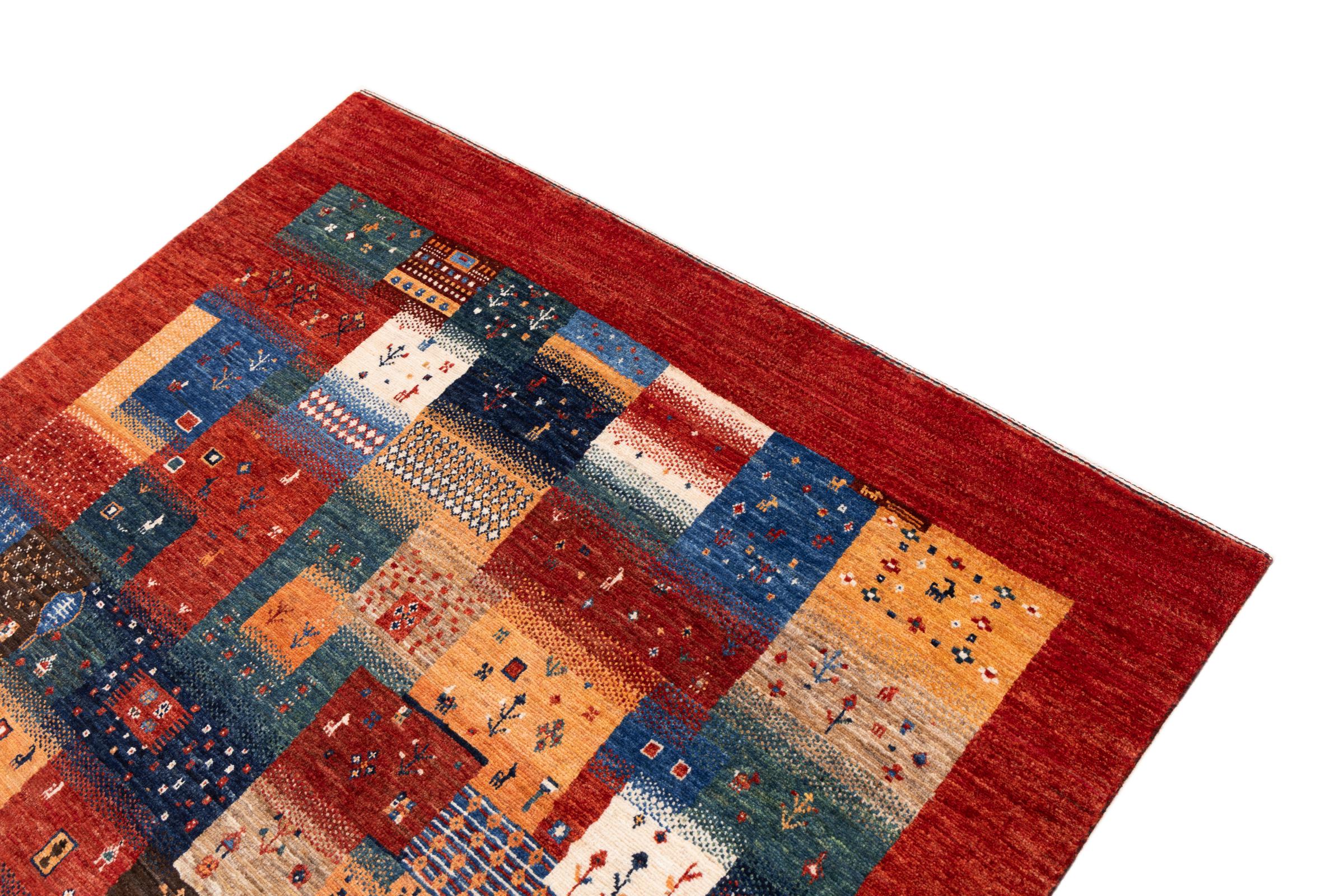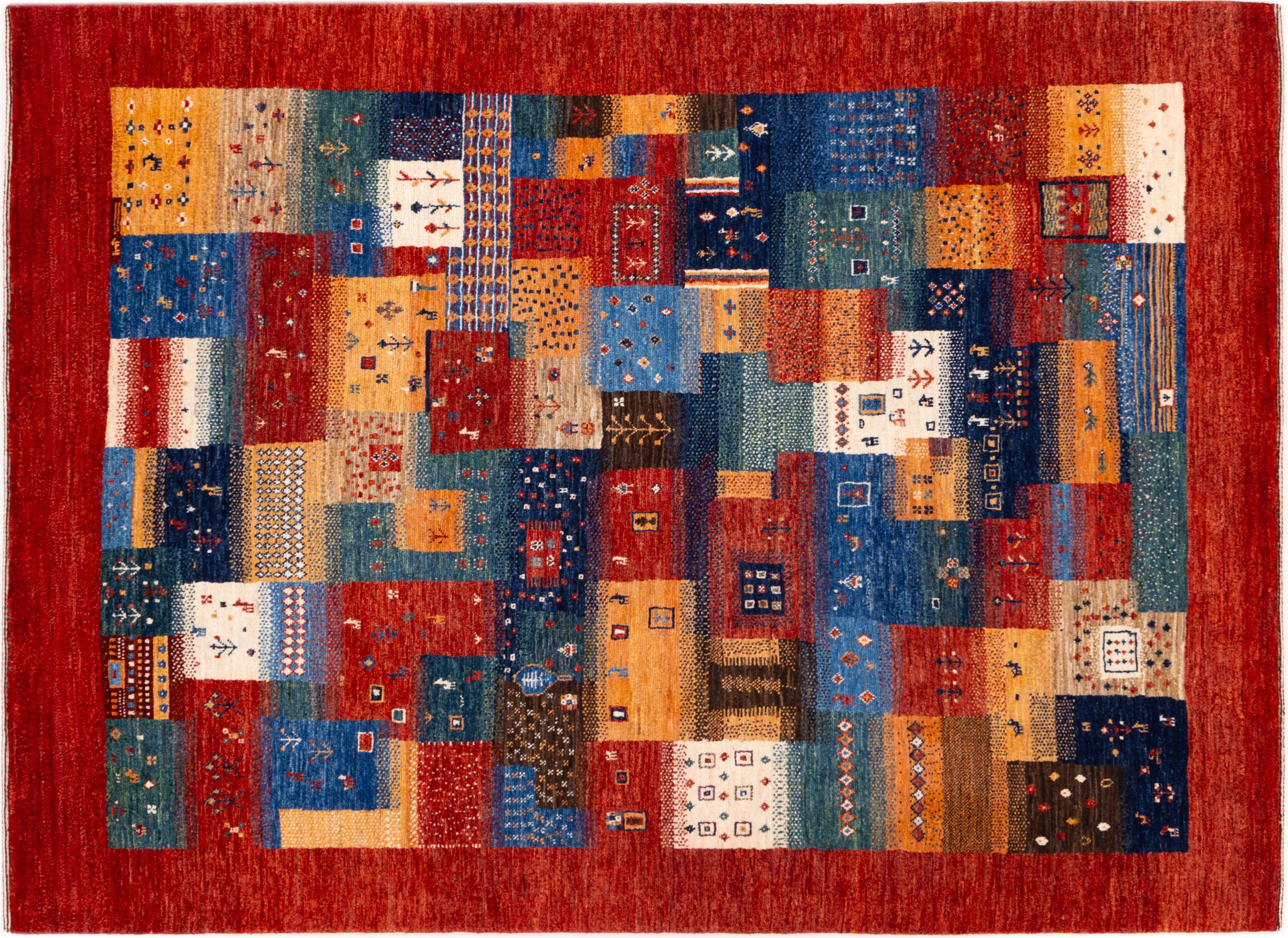 Ce magnifique tapis est un Gabbeh persan et fait donc partie des tapis Gabbeh de la plus haute qualité. Les tapis sont noués par des nomades ou des semi-nomades en Iran selon un savoir-faire traditionnel. Les motifs simples sont pour la plupart inspirés par l'environnement local des nomades. Par exemple, on peut trouver des chameaux, des arbres ou des buissons sur les tapis traditionnels. Les tapis de Gabbeh persan sont faits de laine provenant de troupeaux de moutons élevés localement. La laine est donc encore en grande partie filée à la main. Ainsi, chacun de ces tapis orientaux incarne un caractère unique de culture ancienne.